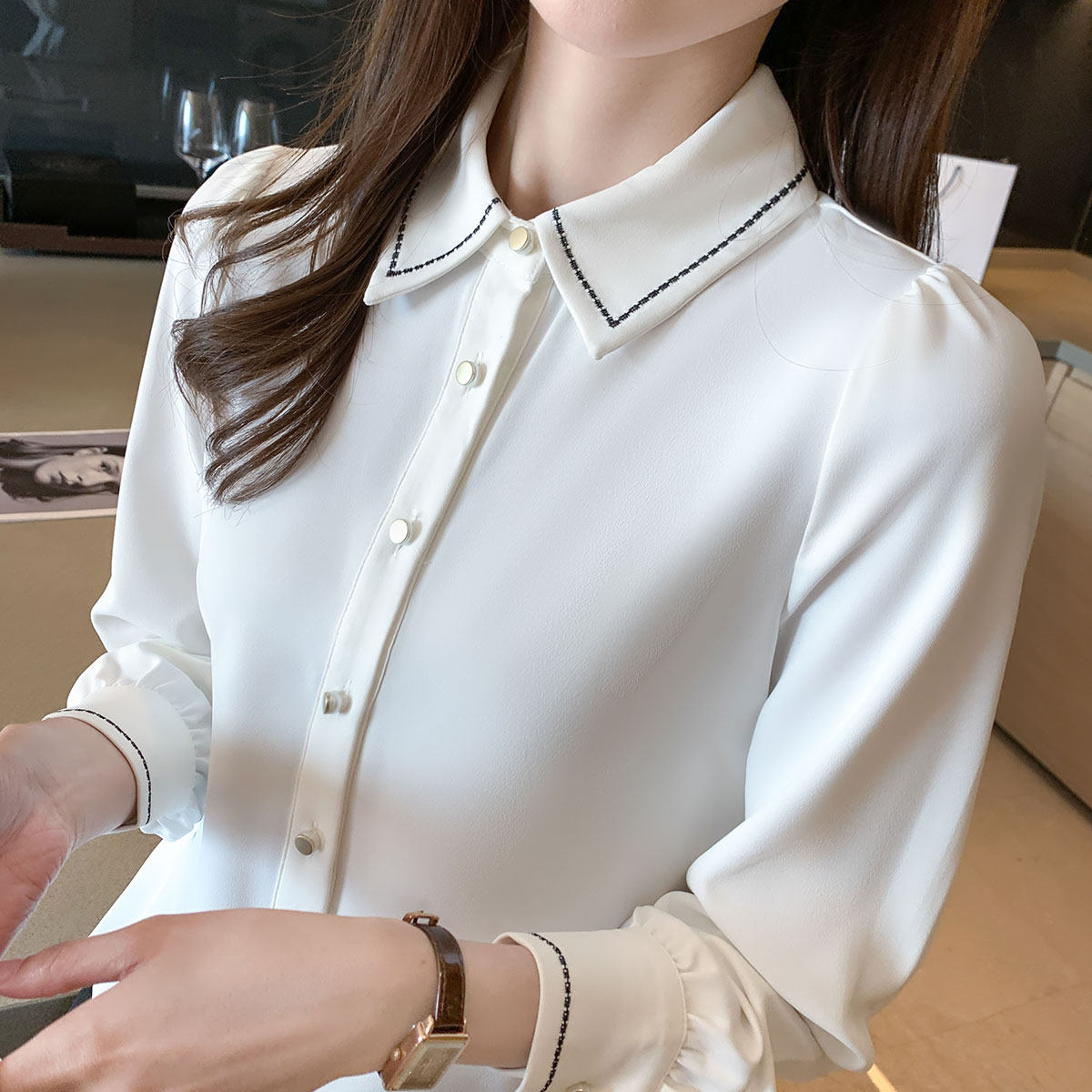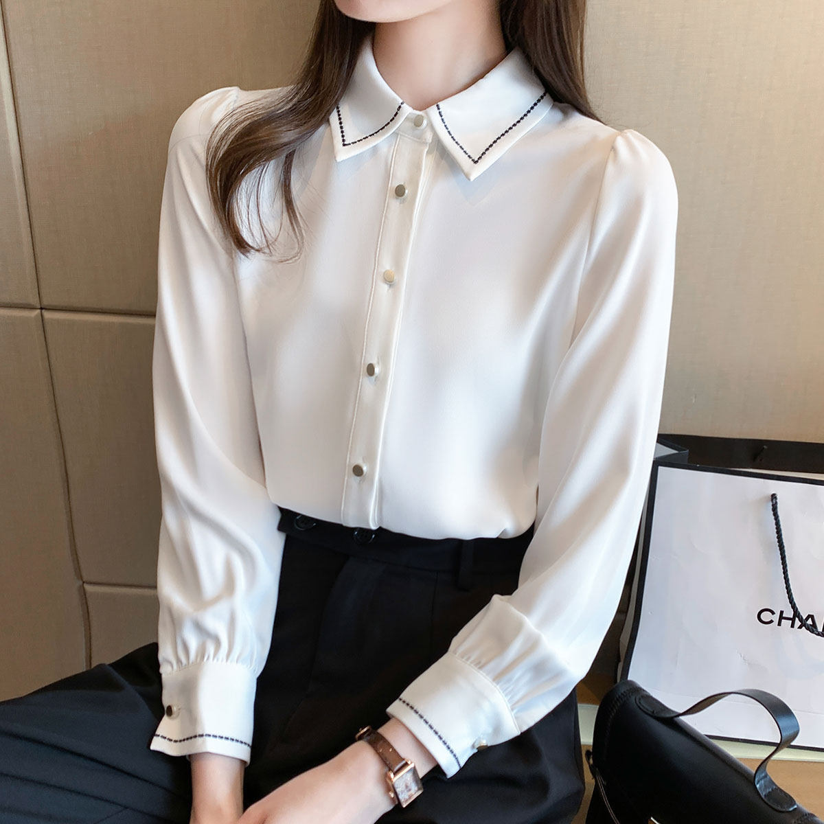 Весенняя белая трендовая модная рубашка, коллекция 2022, в западном стиле