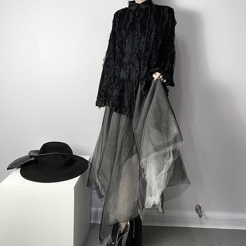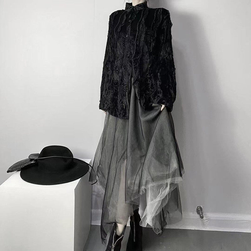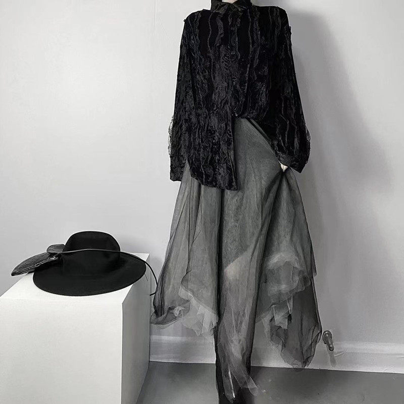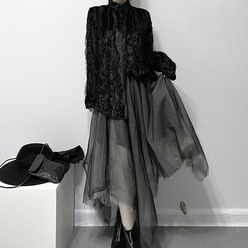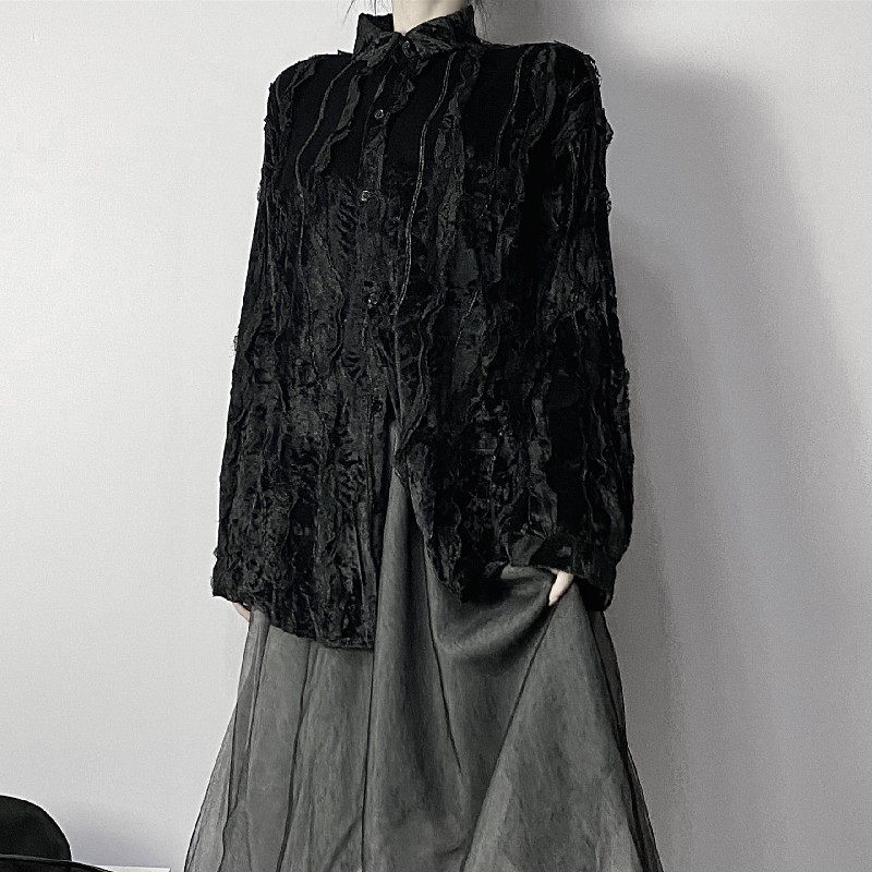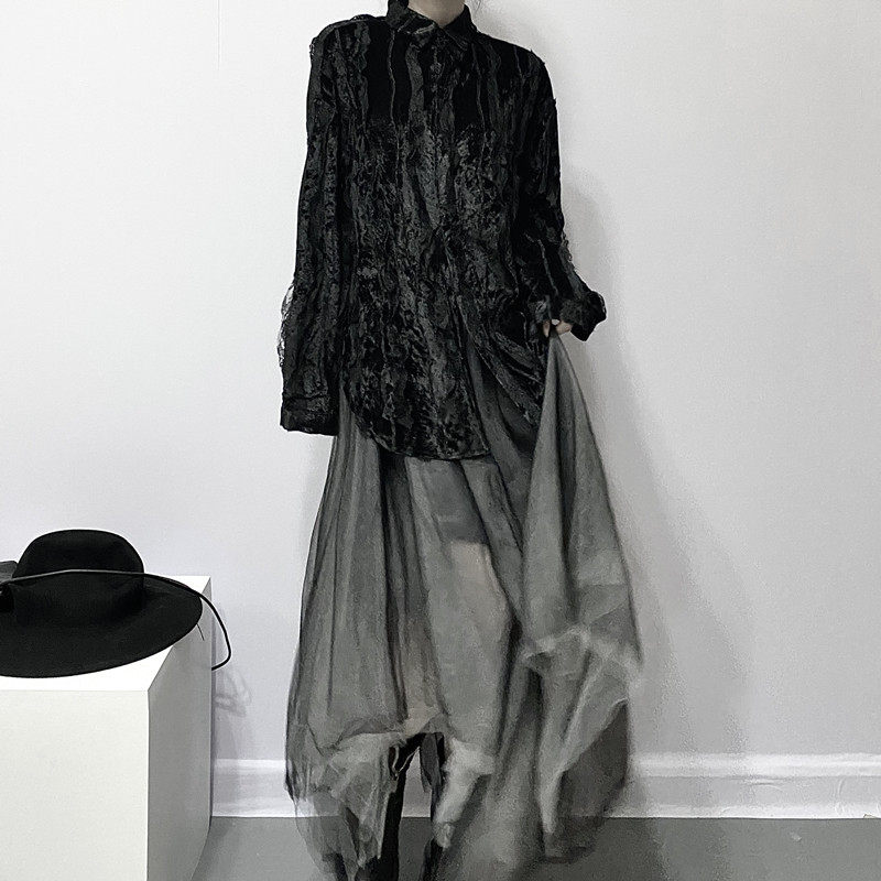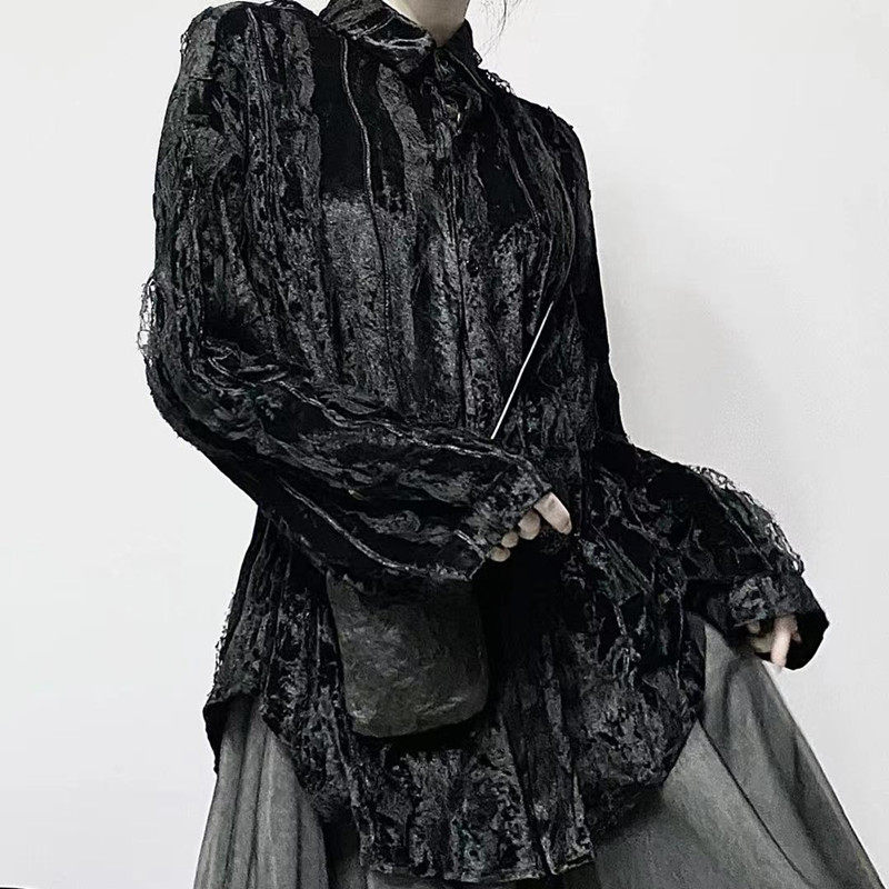 Осенняя кружевная дизайнерская бархатная утеплённая рубашка, кружевное платье