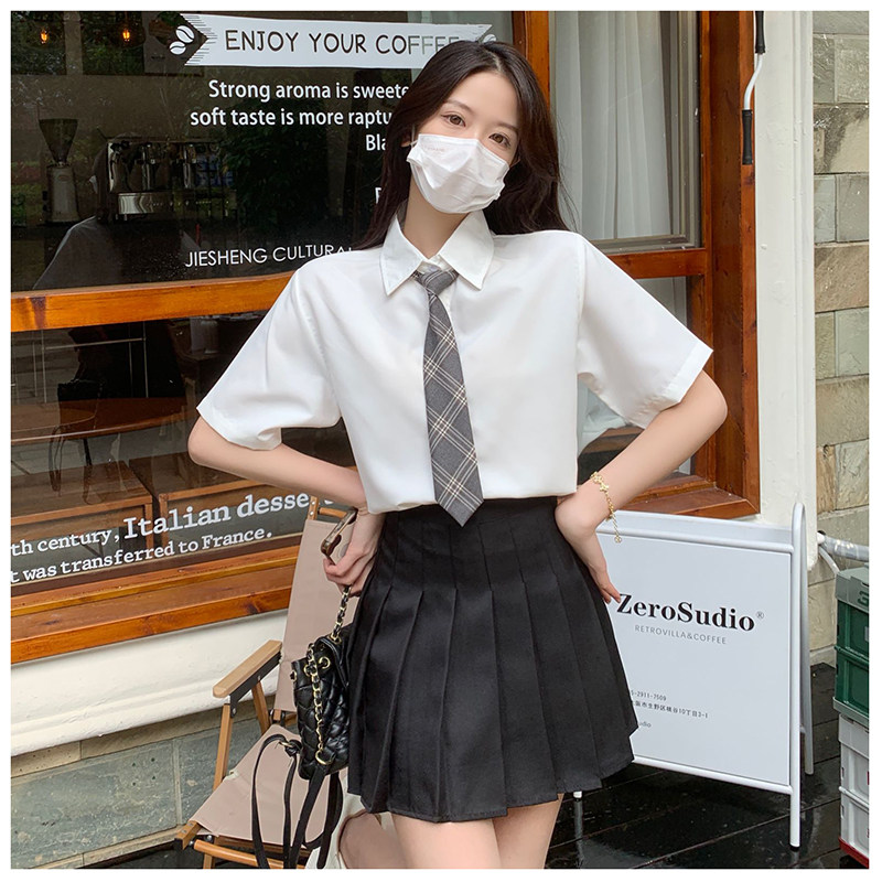 Студенческая юбка в складку, летняя дизайнерская рубашка, галстук, мини-юбка, комплект, тренд сезона