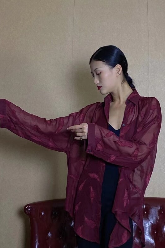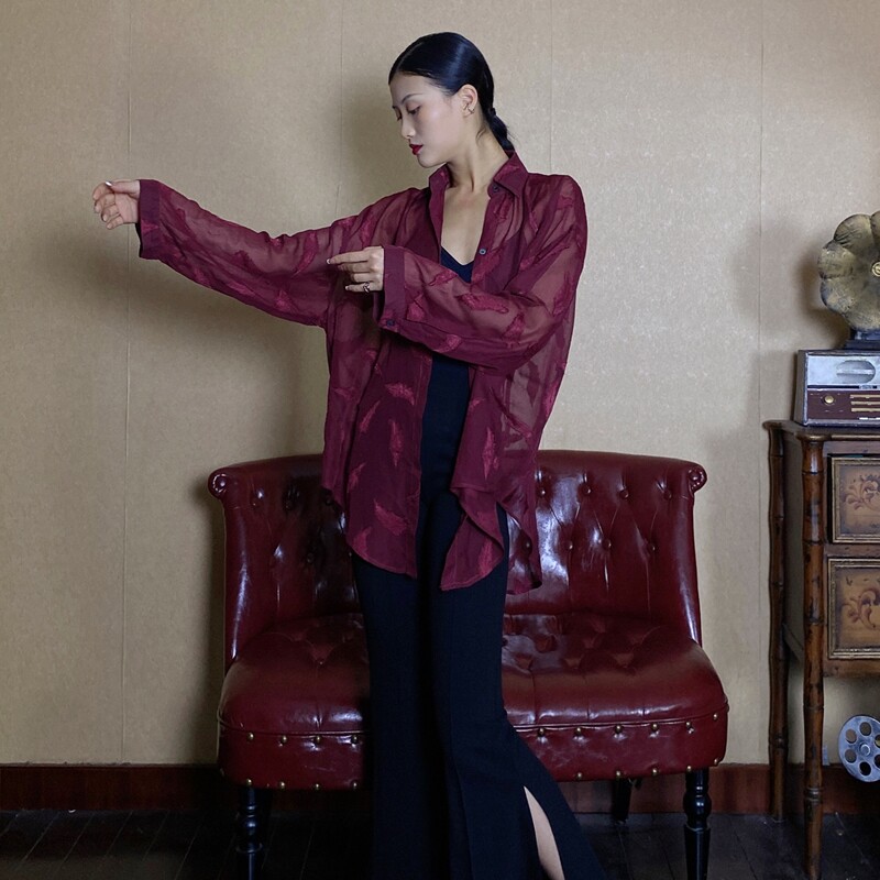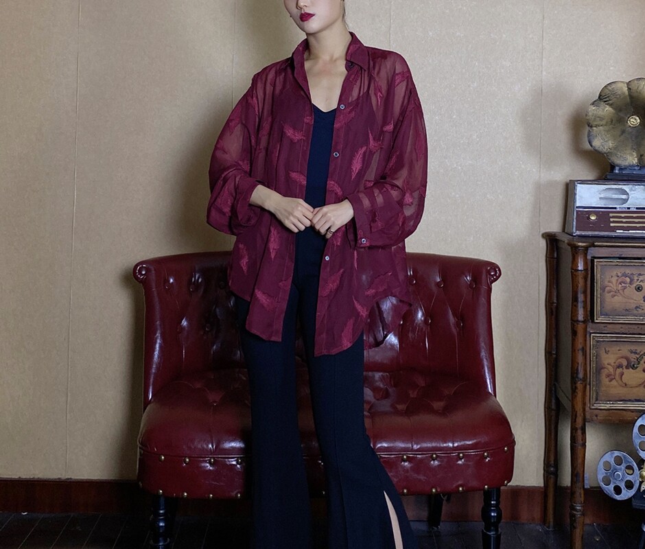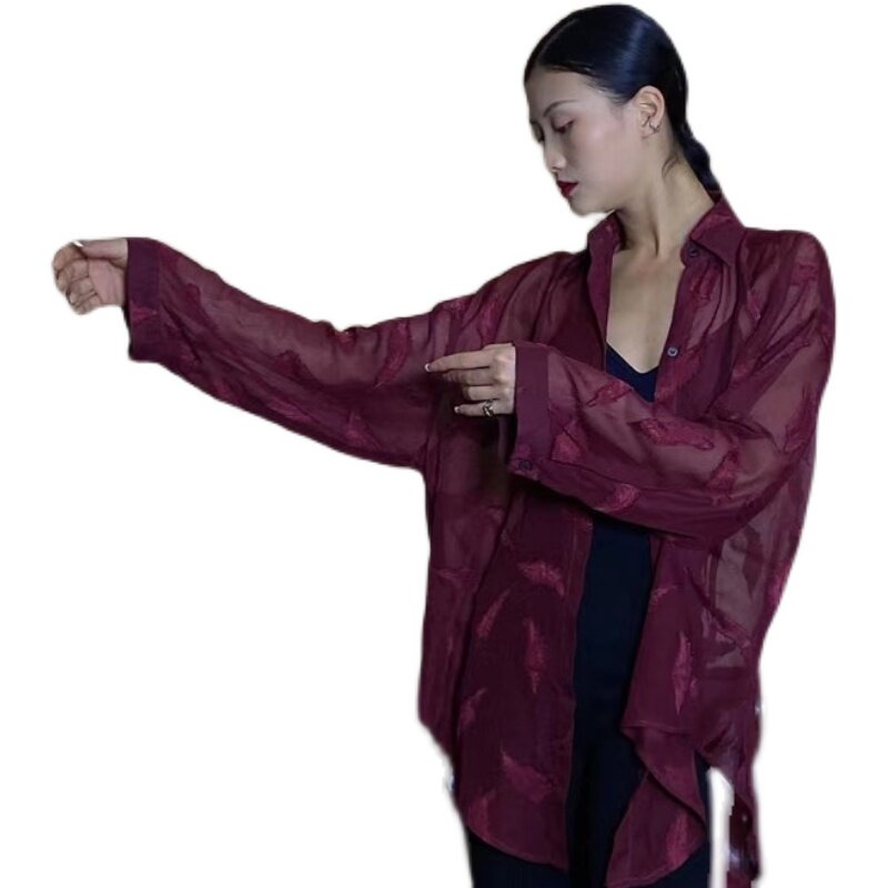 Темно-бордовая дизайнерская рубашка, защита от солнца