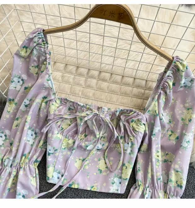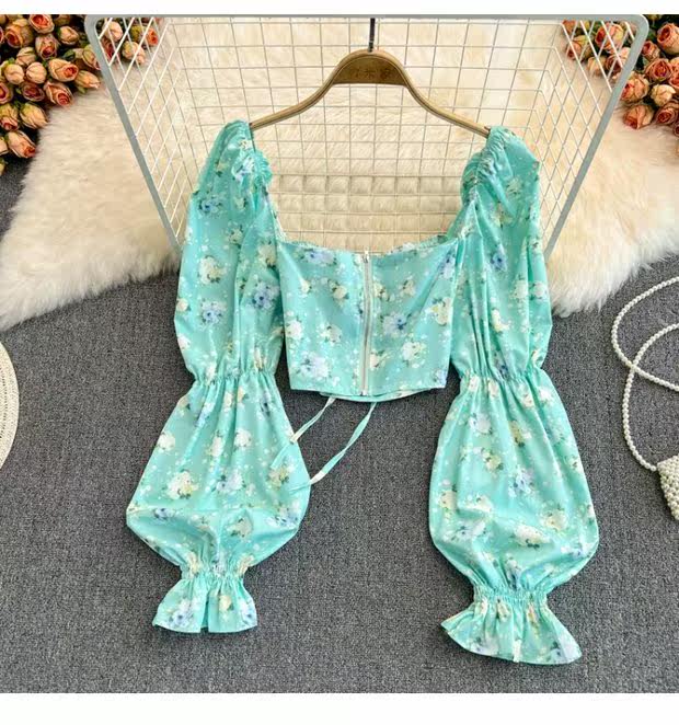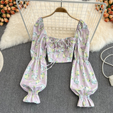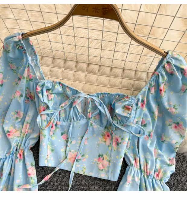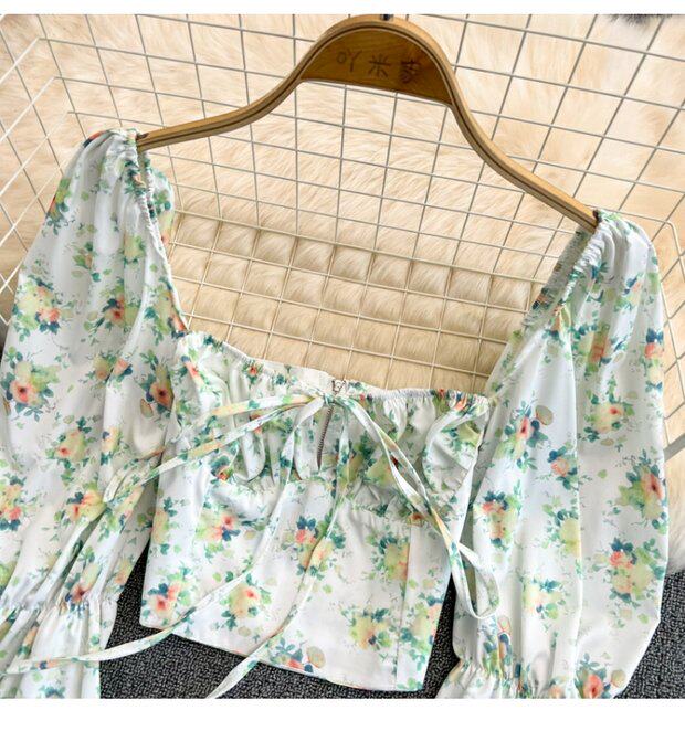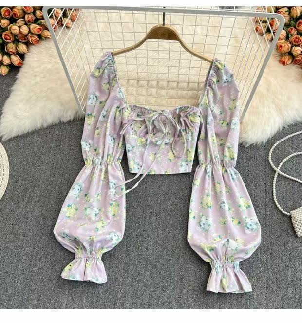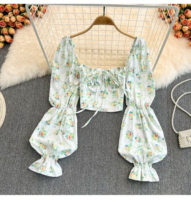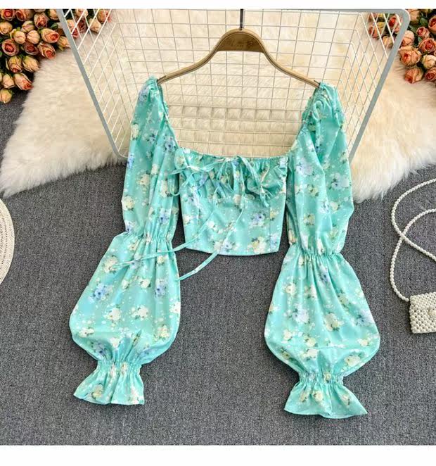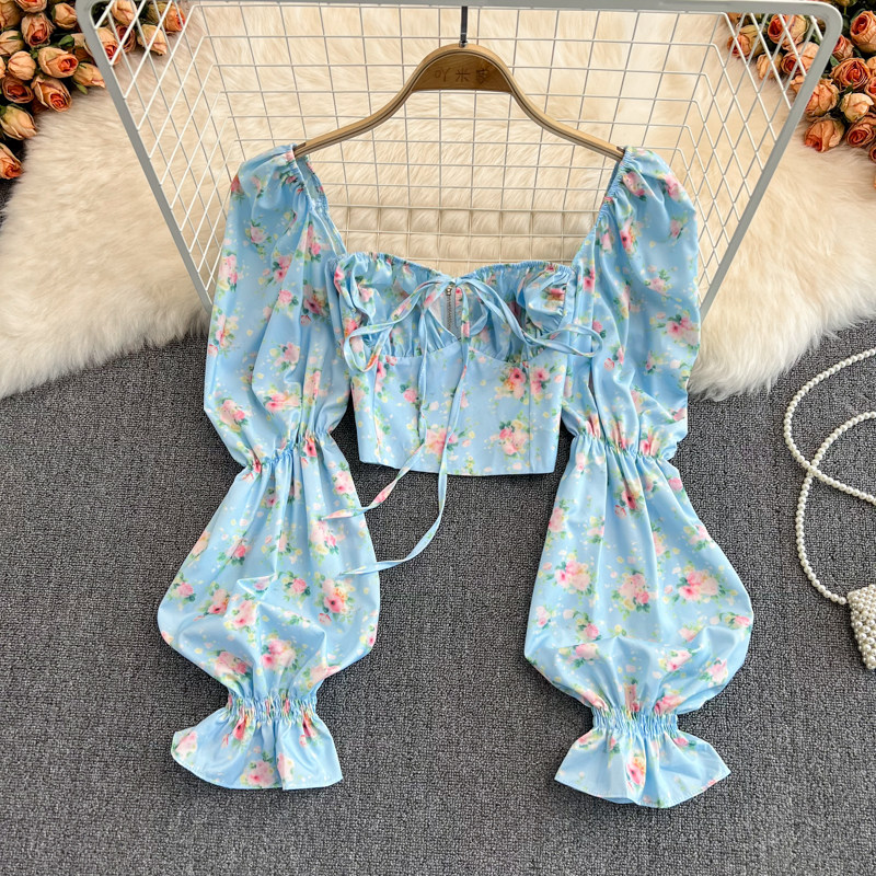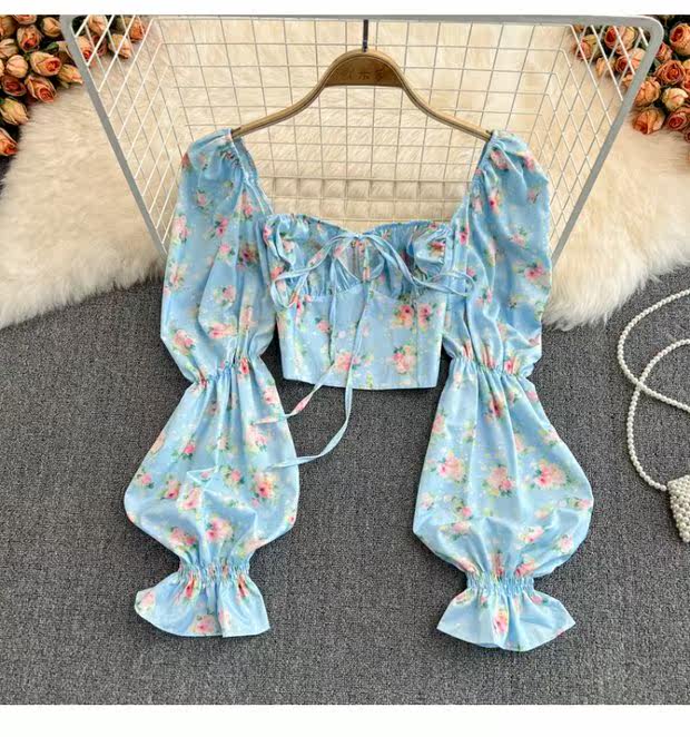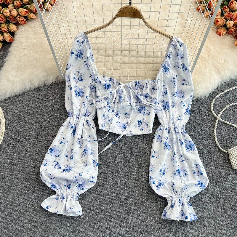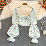 Летняя дизайнерская рубашка, короткий корсет, рукава фонарики, с открытой спиной, тренд сезона, на шнурках