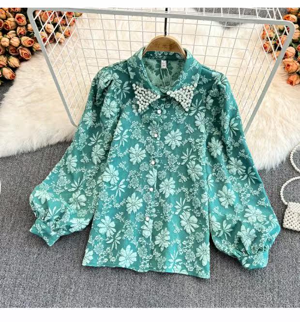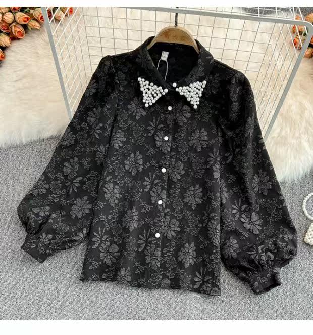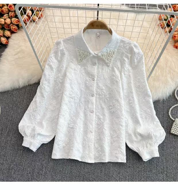 Осенняя ретро элитная рубашка, в корейском стиле, французский стиль, рукава фонарики, в западном стиле