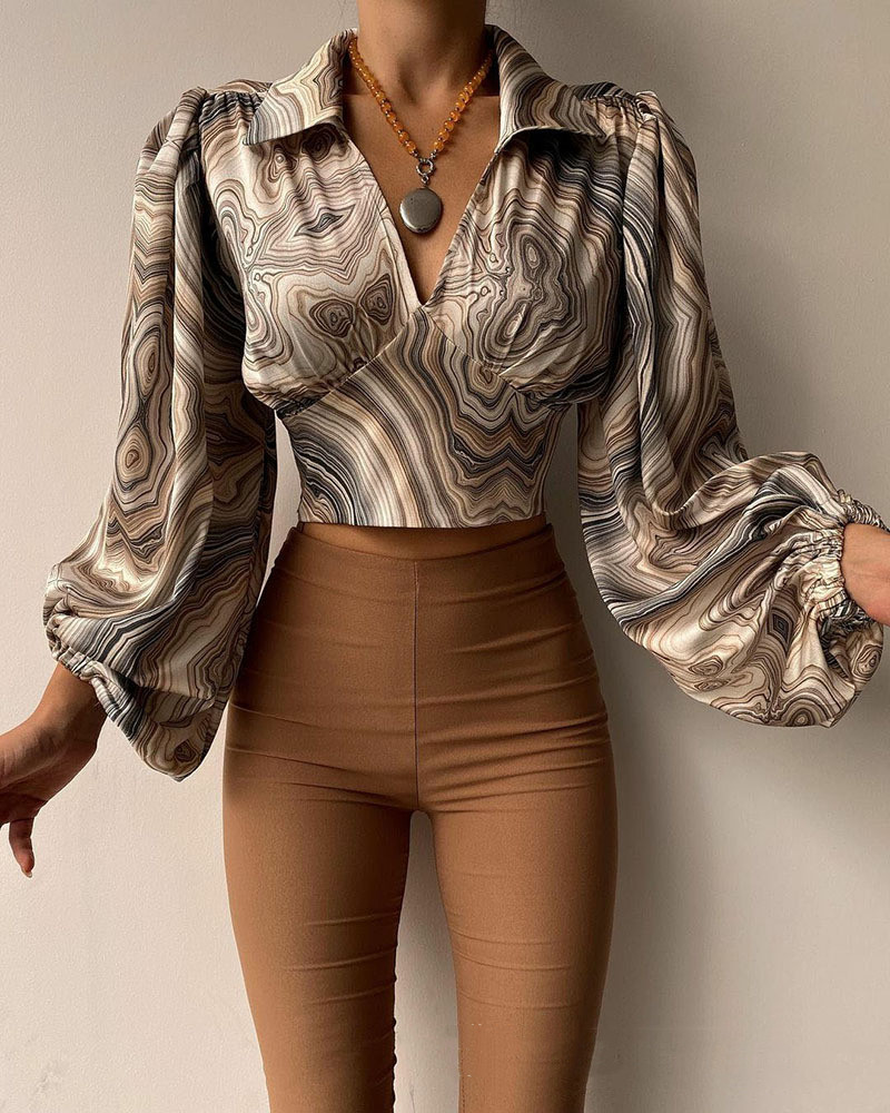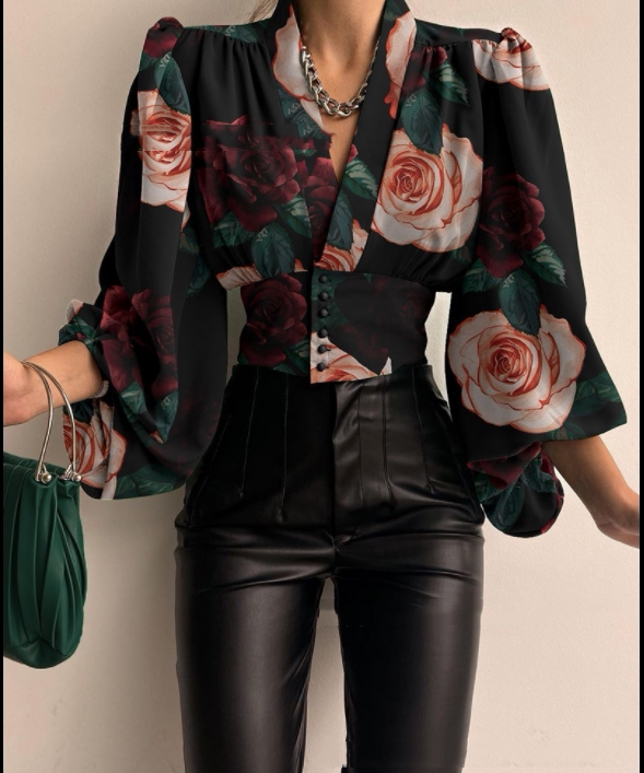 Рубашка, сексуальный короткий фонарь, французский стиль, V-образный вырез, высокая талия