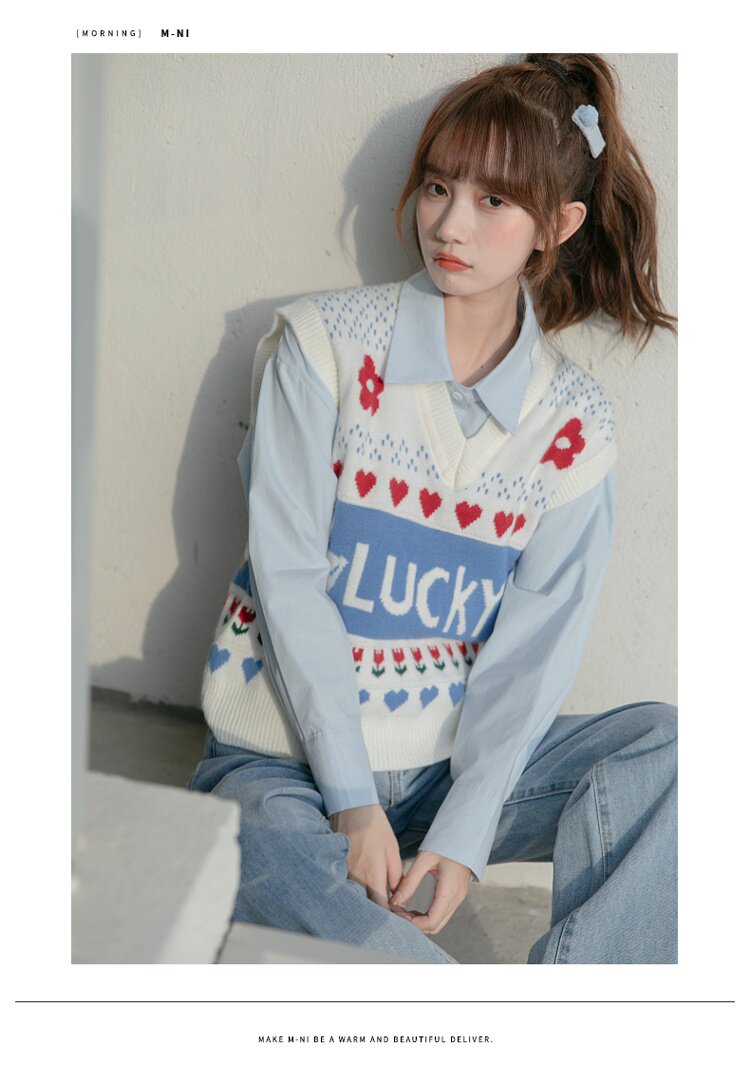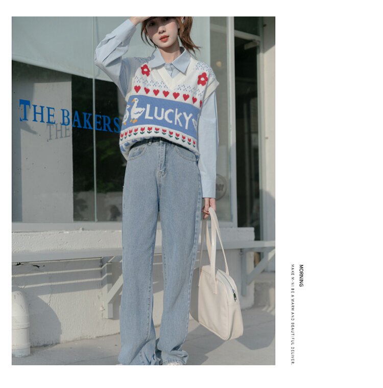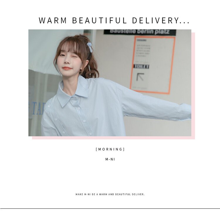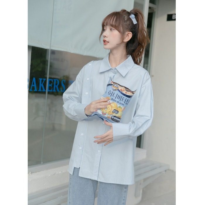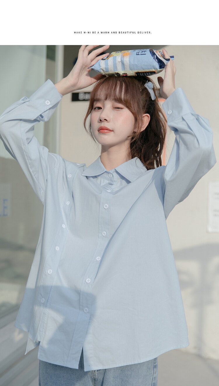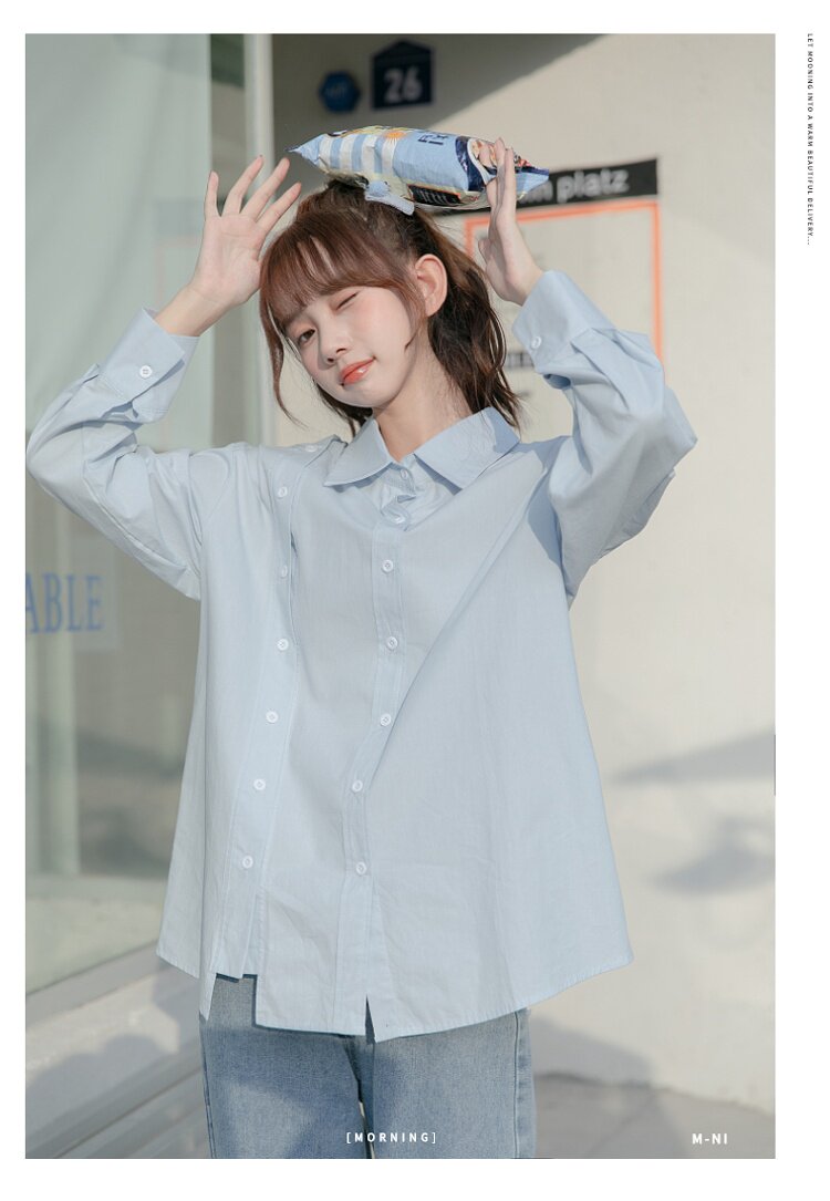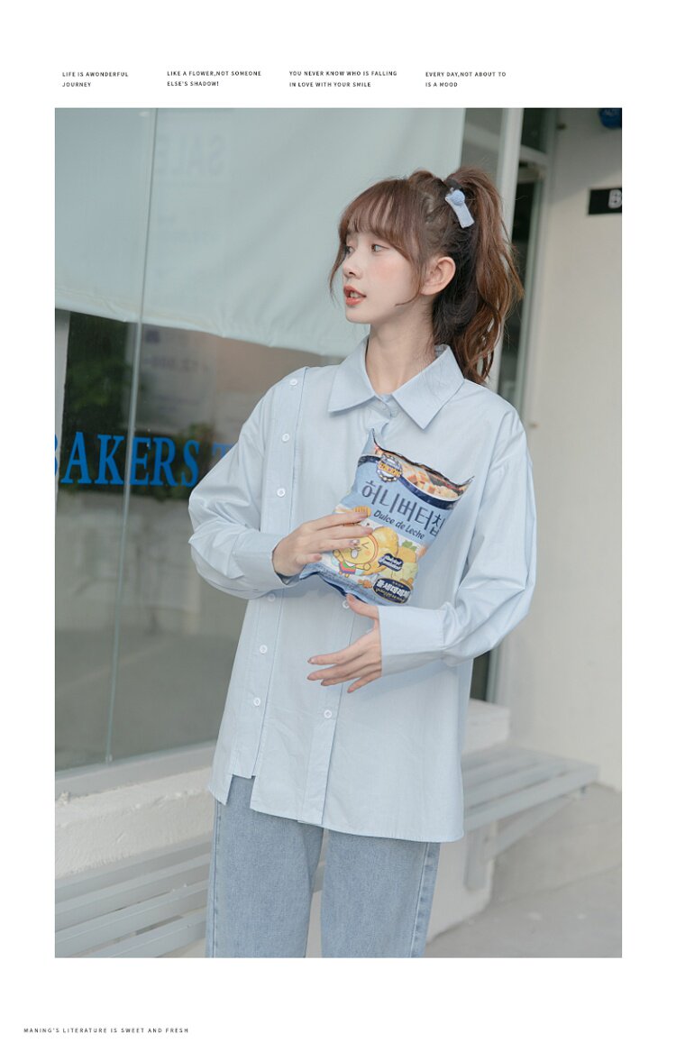 Синяя весенняя ретро рубашка, дизайнерский свежий комплект, свободный крой, воротник поло, тренд сезона