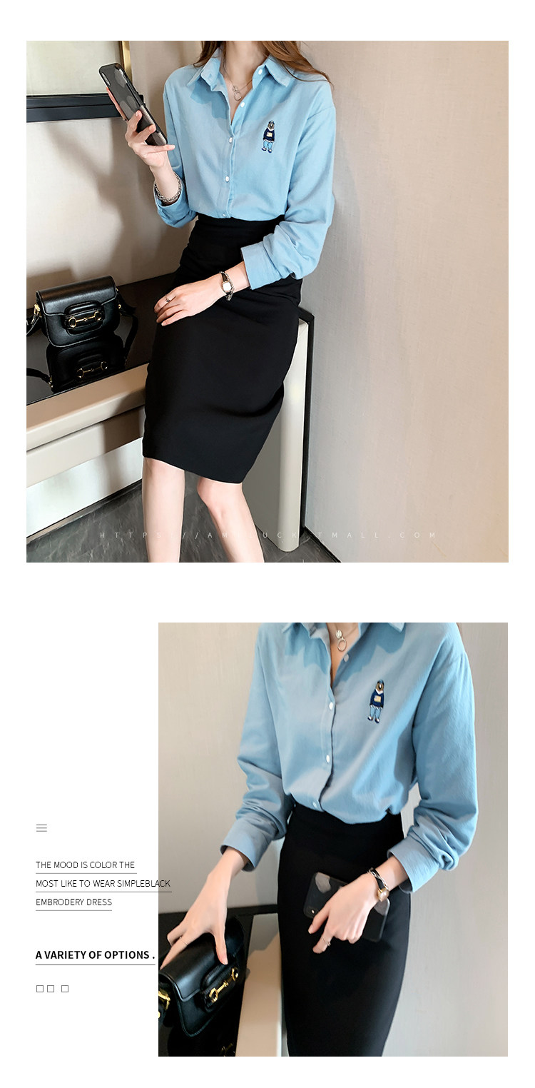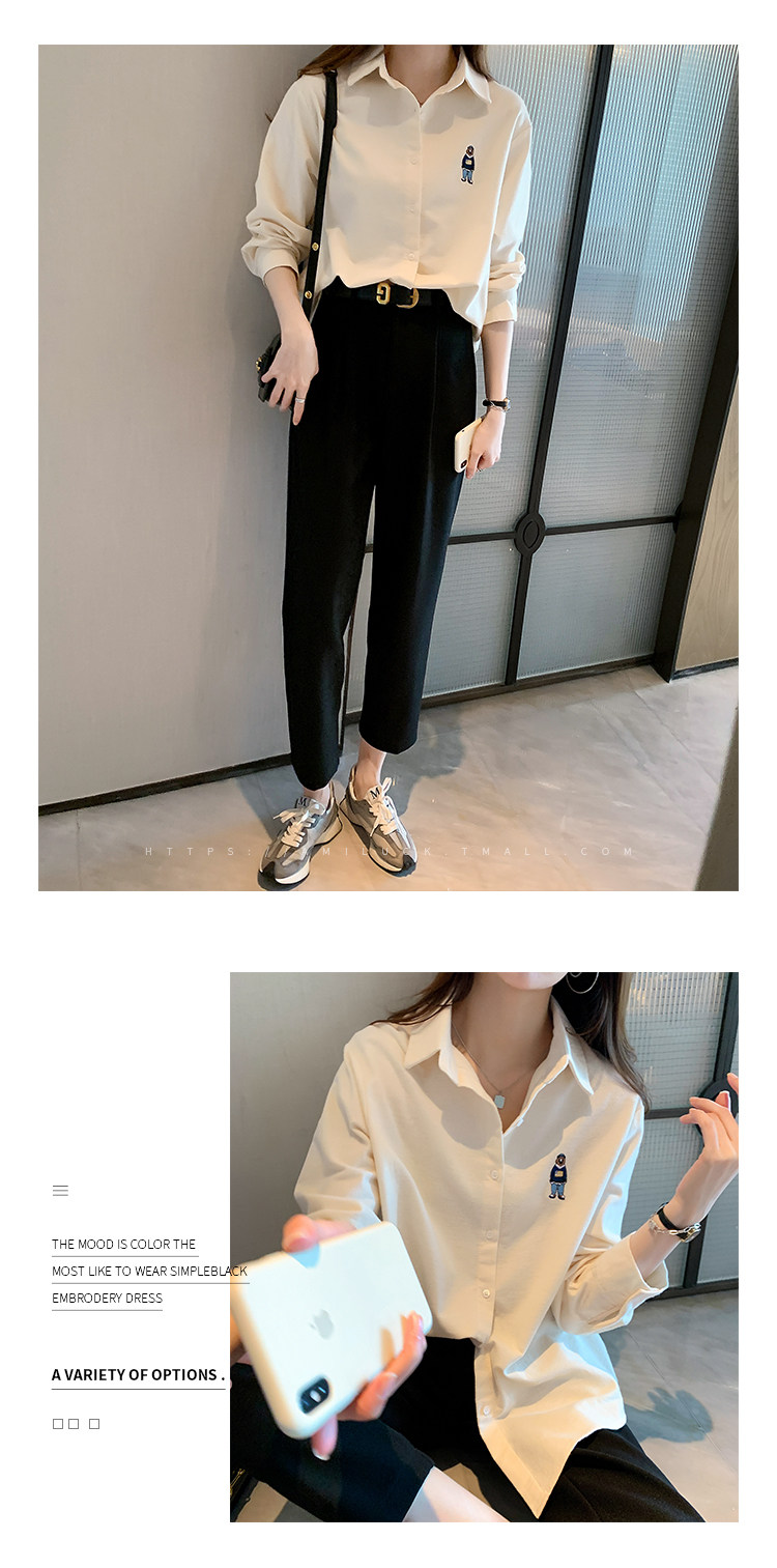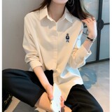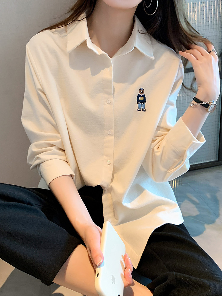 Весенняя дизайнерская базовая приятная телу рубашка, с вышивкой, коллекция 2023, тренд сезона