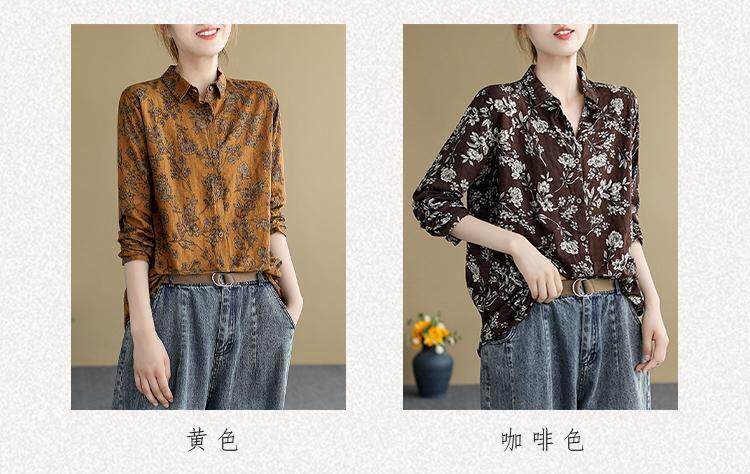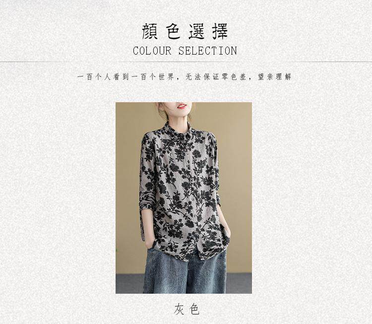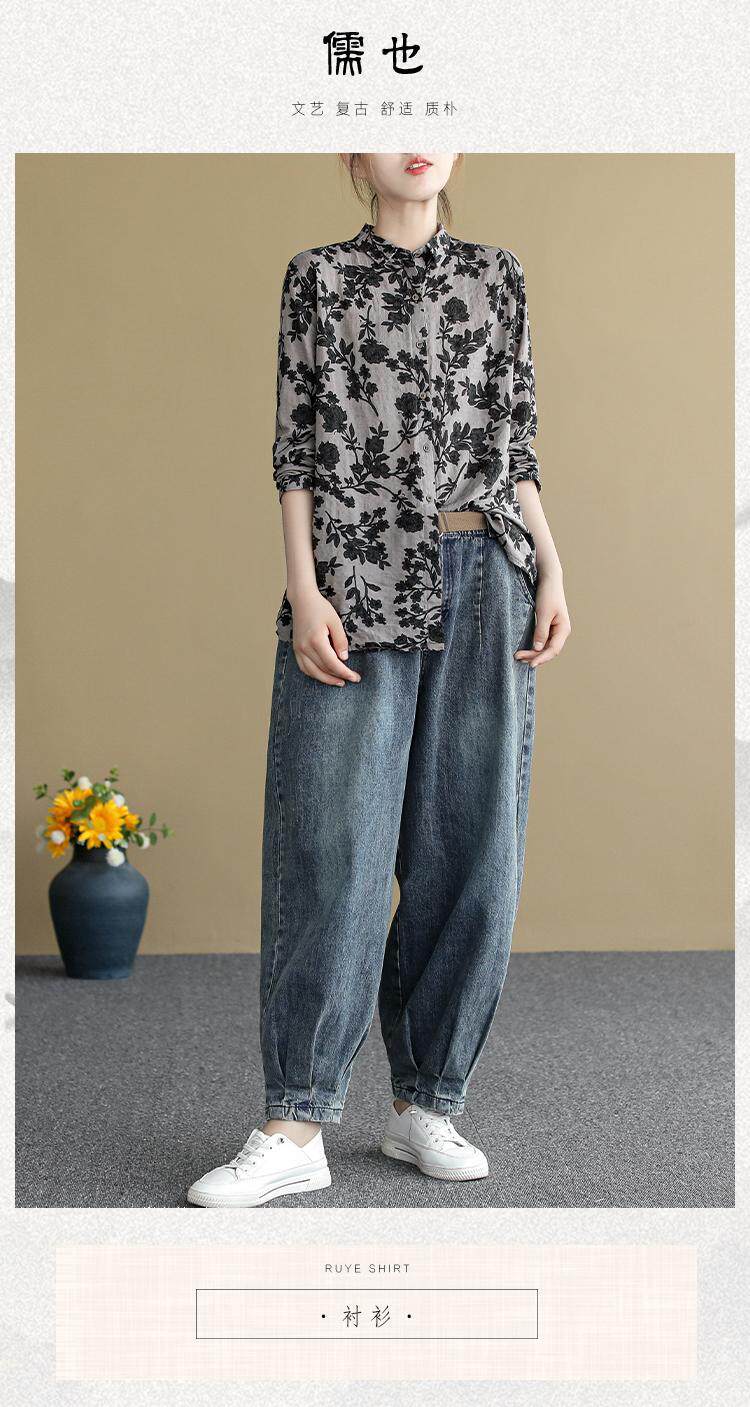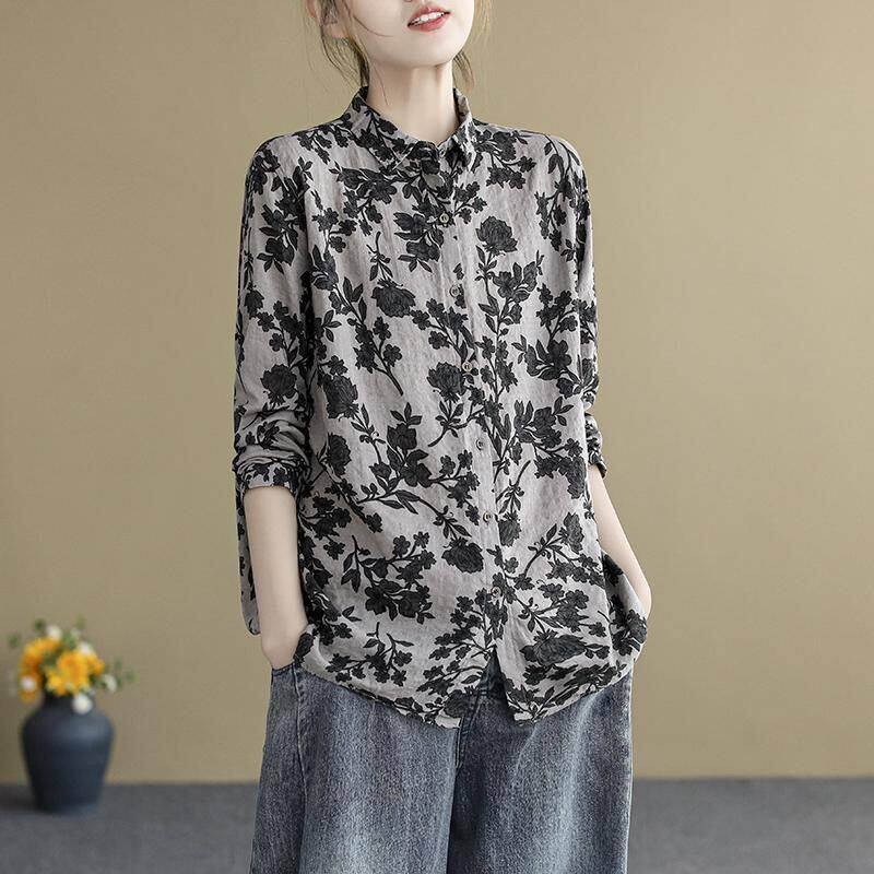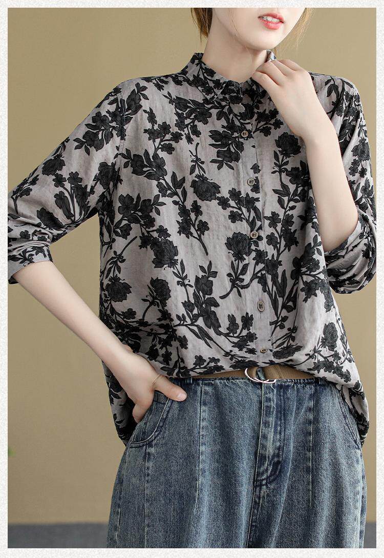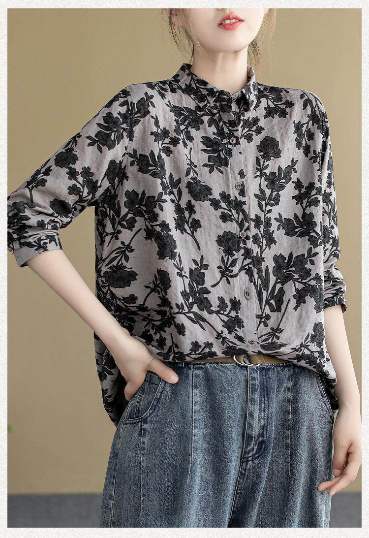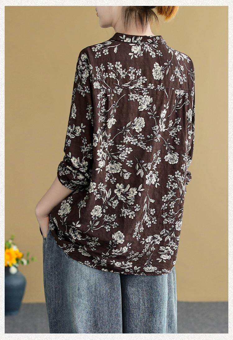 (Трансграничная торговля), ретро рубашка, цветочный принт, из хлопка и льна