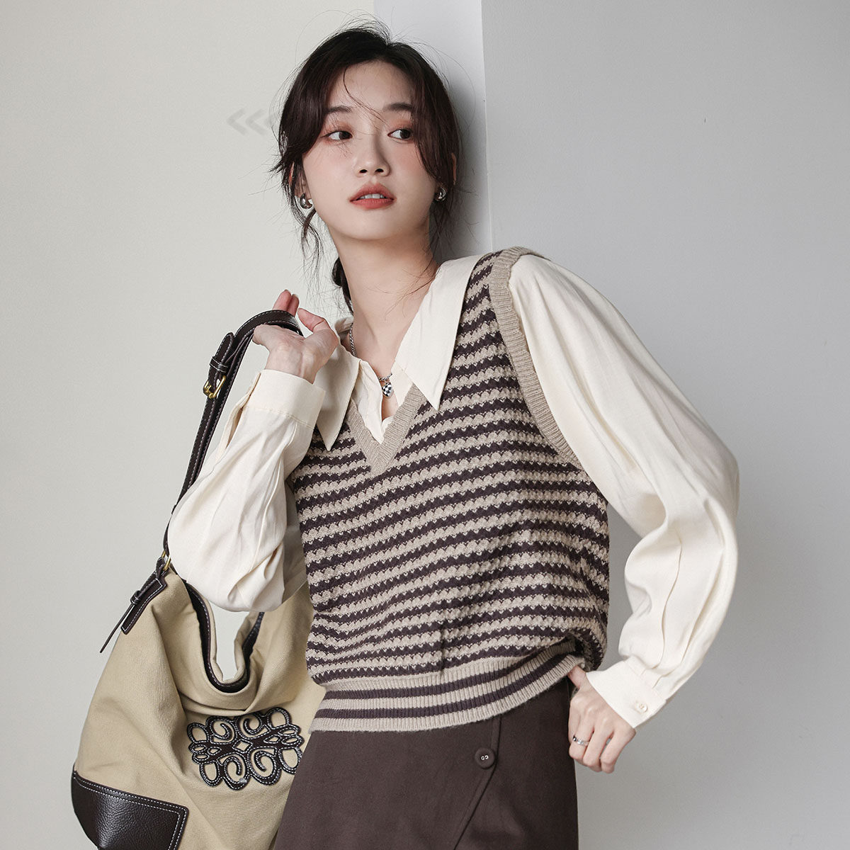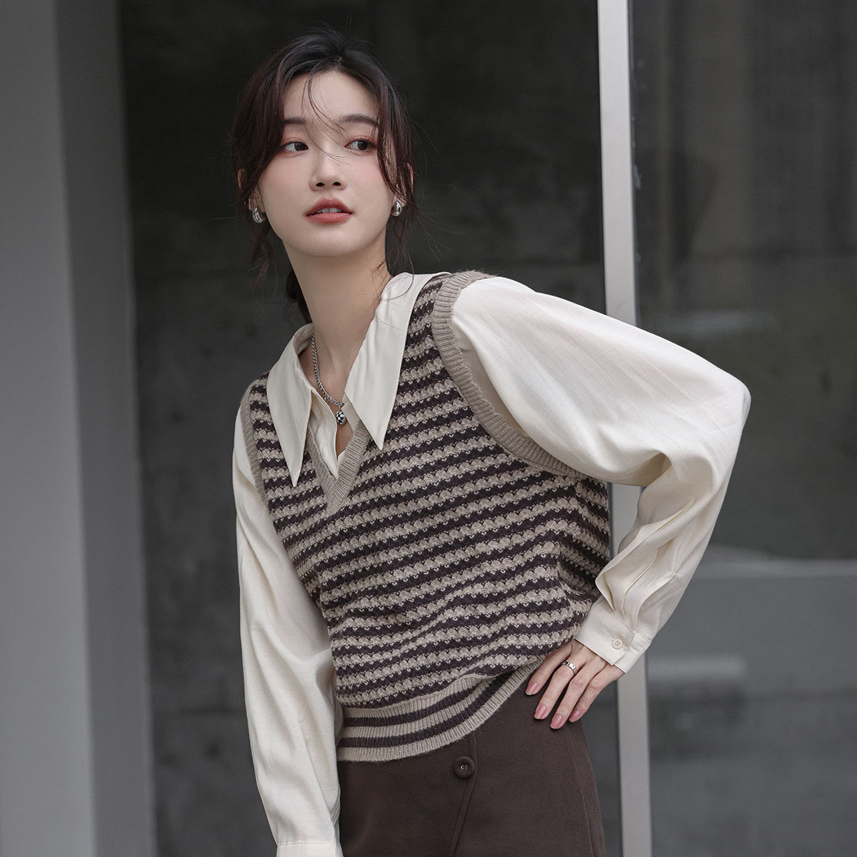 Дизайнерский трикотажный весенний комплект, рубашка, тренд сезона, воротник поло, городской стиль