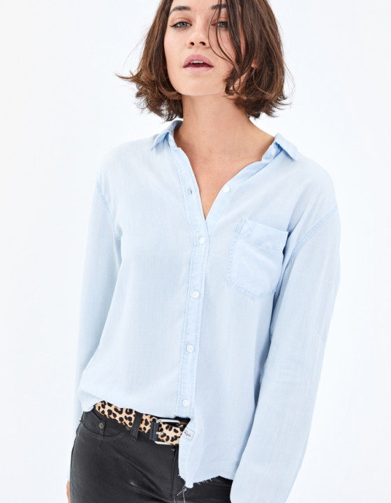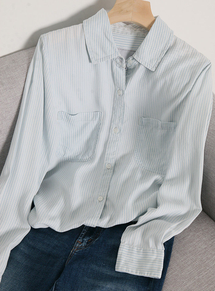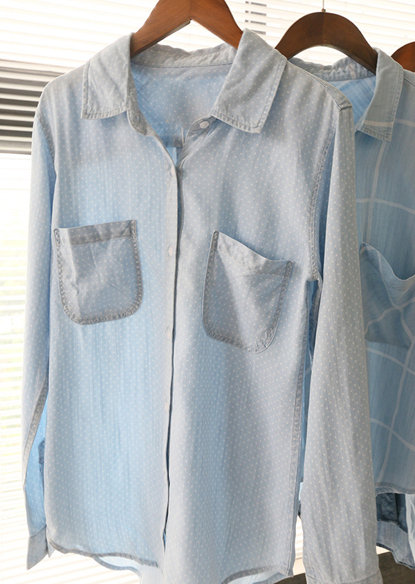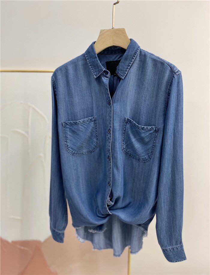 Поднимите специальные предложения, экспортируемые в нишевую высокую женскую женскую воду, небо шелковое джинсовая коллекция рубашки 1