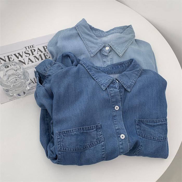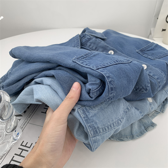 Хлопковая темно-синяя джинсовая демисезонная рубашка, цветной кардиган, свободный прямой крой