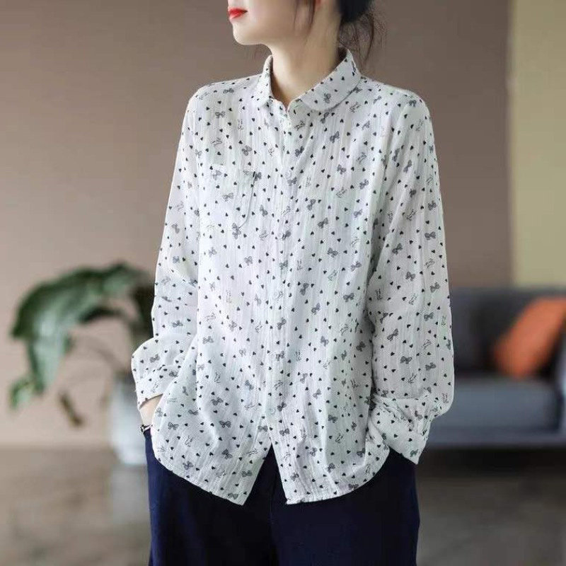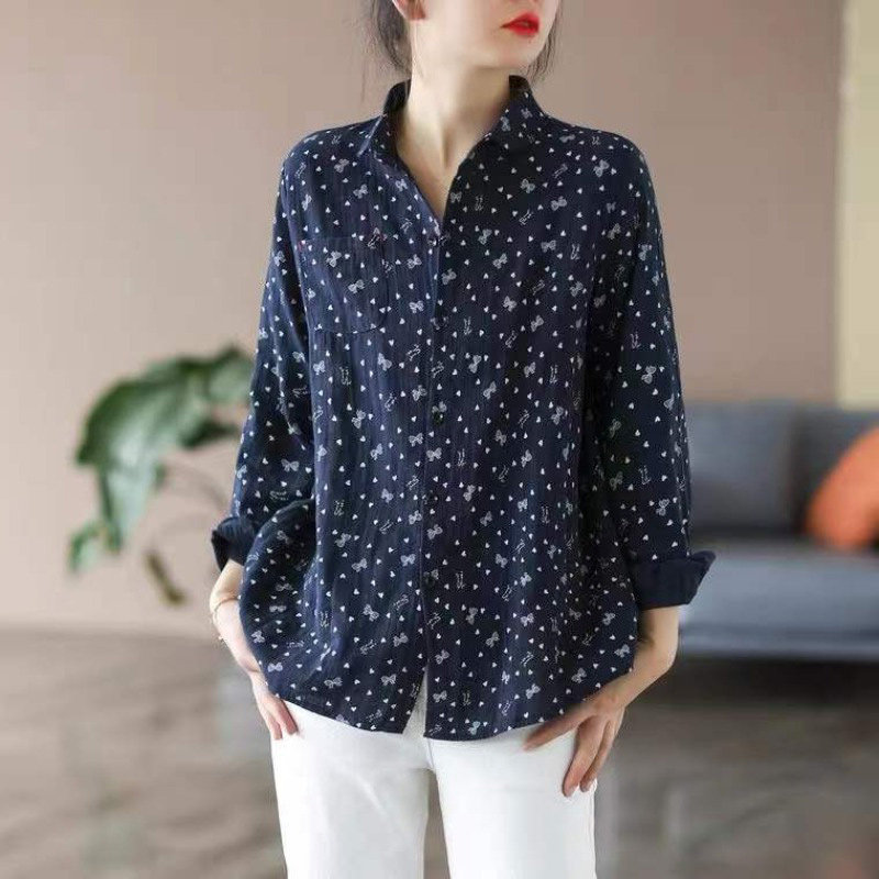 (Трансграничная торговля), брендовая базовая рубашка, цветочный принт, из хлопка и льна