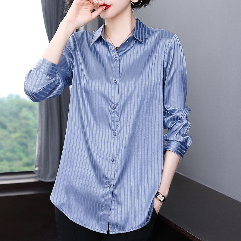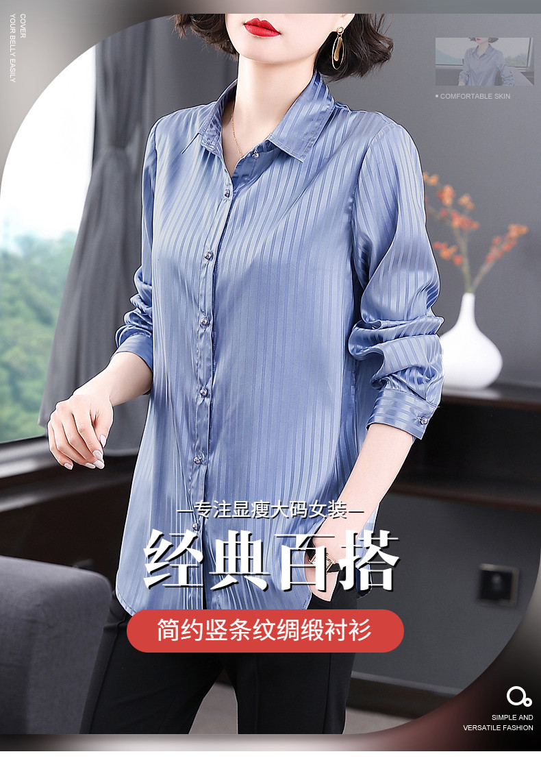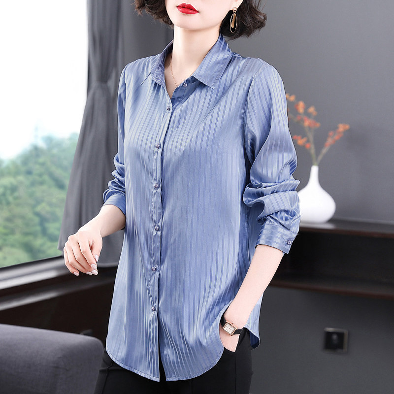 Осенняя рубашка, шелковый длинный лонгслив, коллекция 2023, большой размер, средней длины