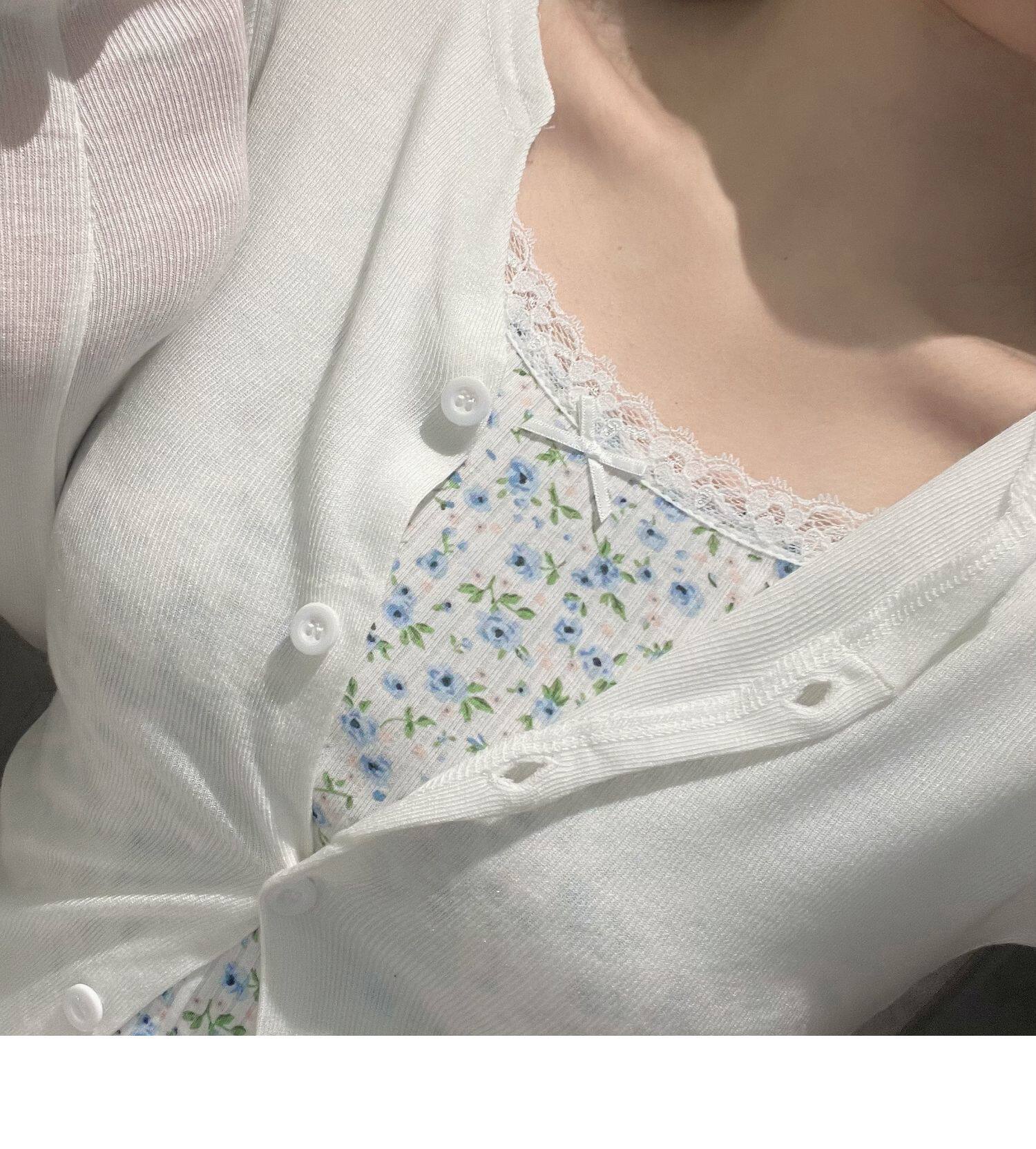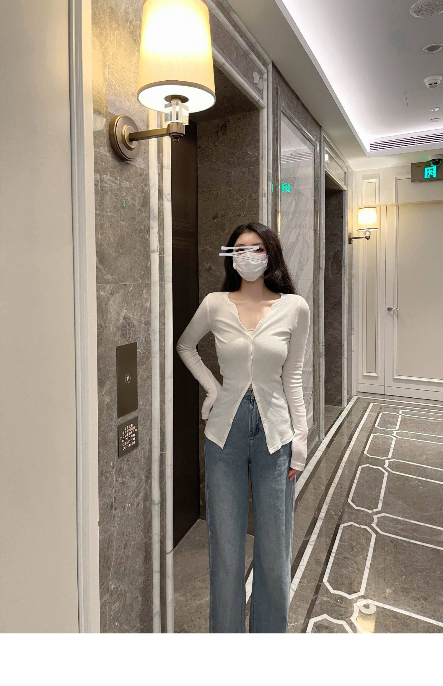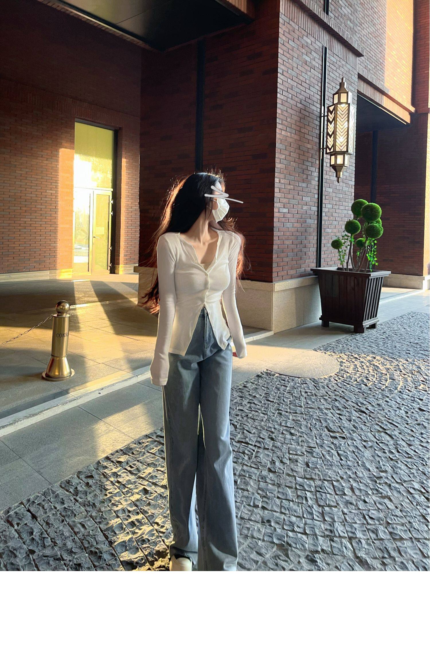 Jamais Vu Homemade Tea Art для обработки ~ частные мягкие мягкие кнопки, маленькие V -Neck Top Top Jacket