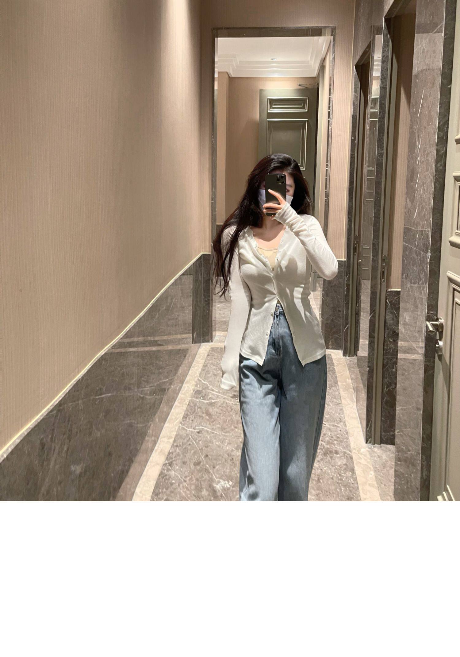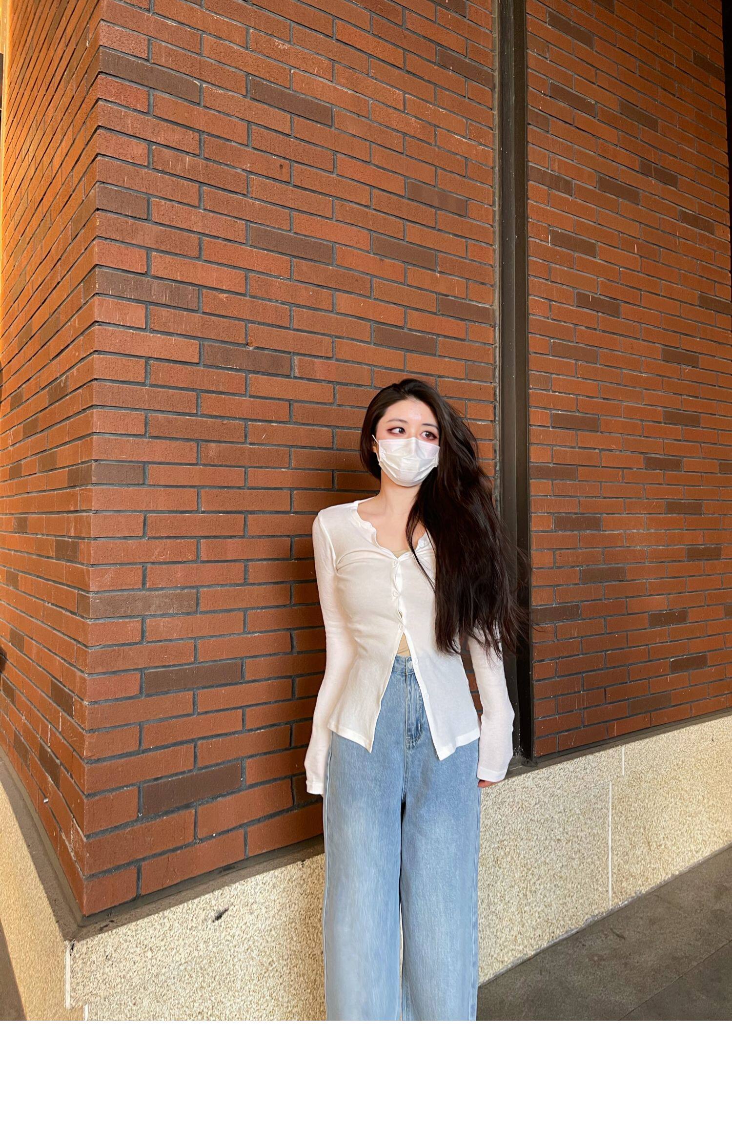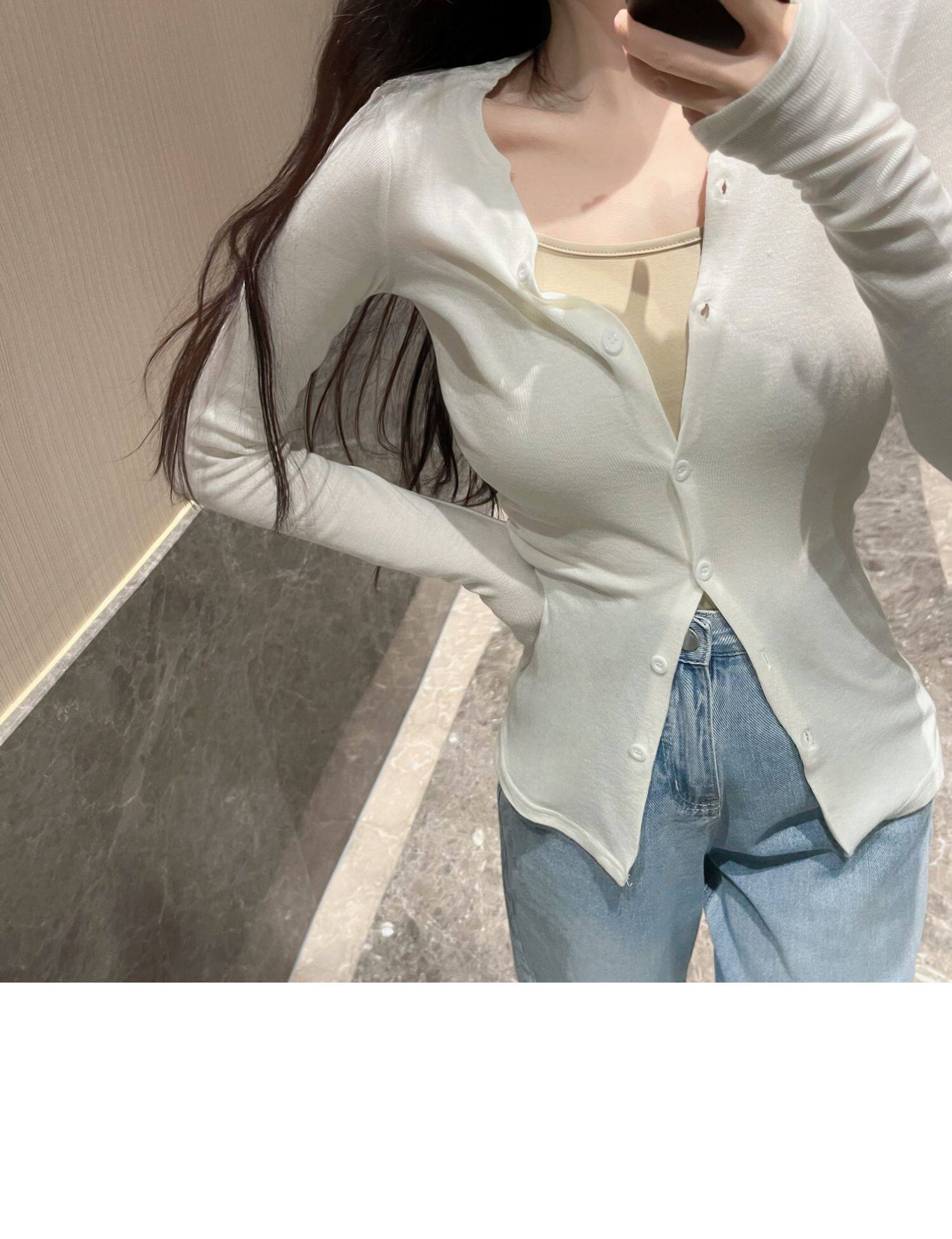 Jamais Vu Homemade Tea Art для обработки ~ частные мягкие мягкие кнопки, маленькие V -Neck Top Top Jacket