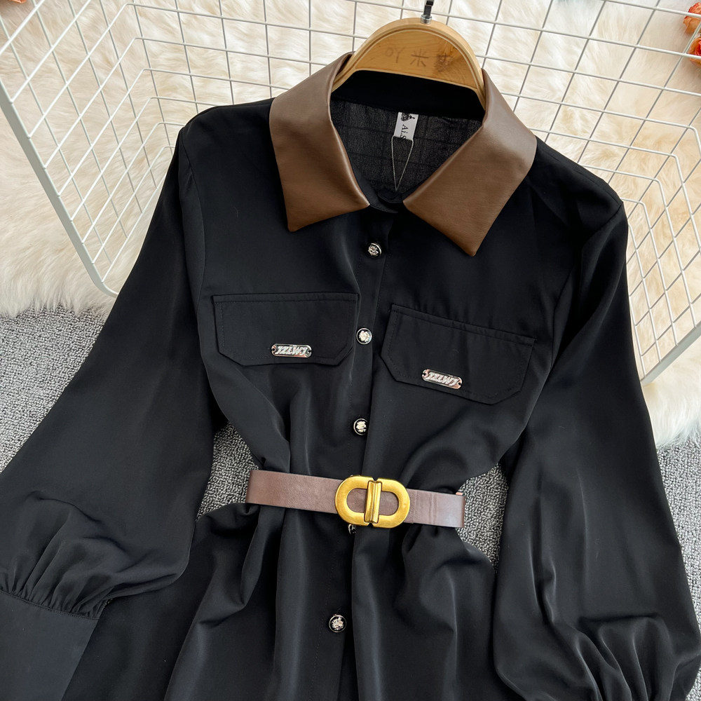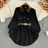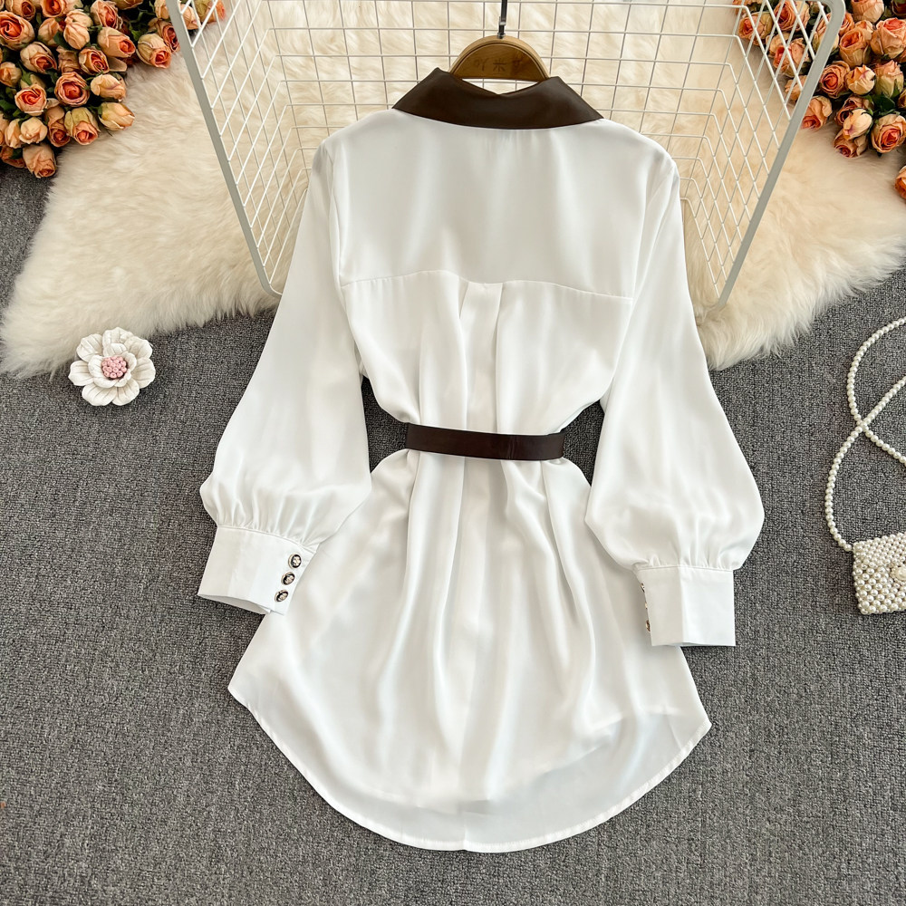 Весенний длинный корсет, рубашка, лонгслив, 2023, французский стиль, средней длины, воротник поло, свободный крой