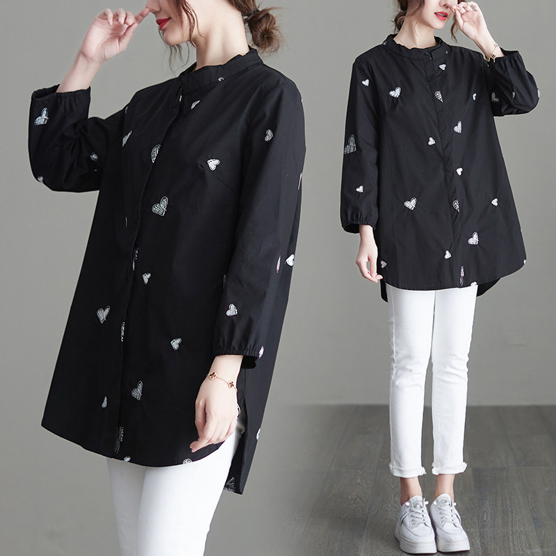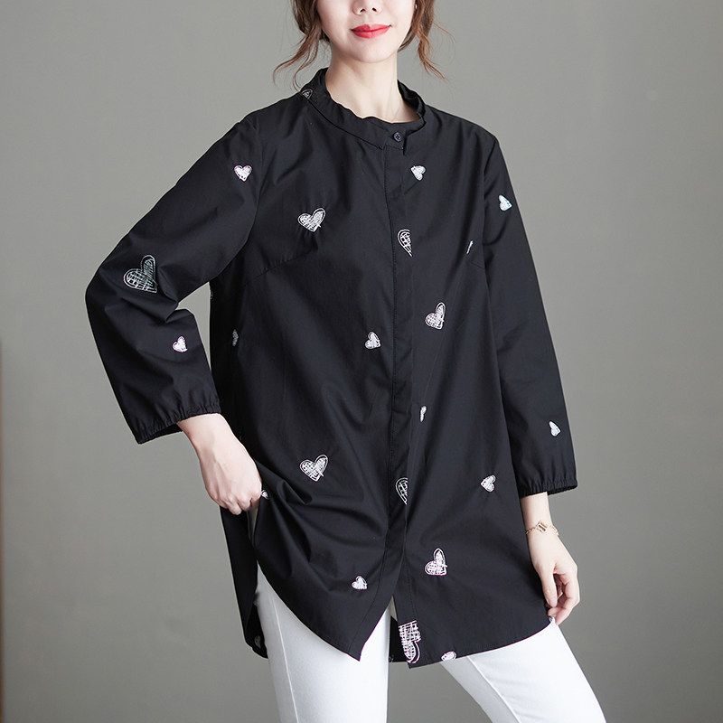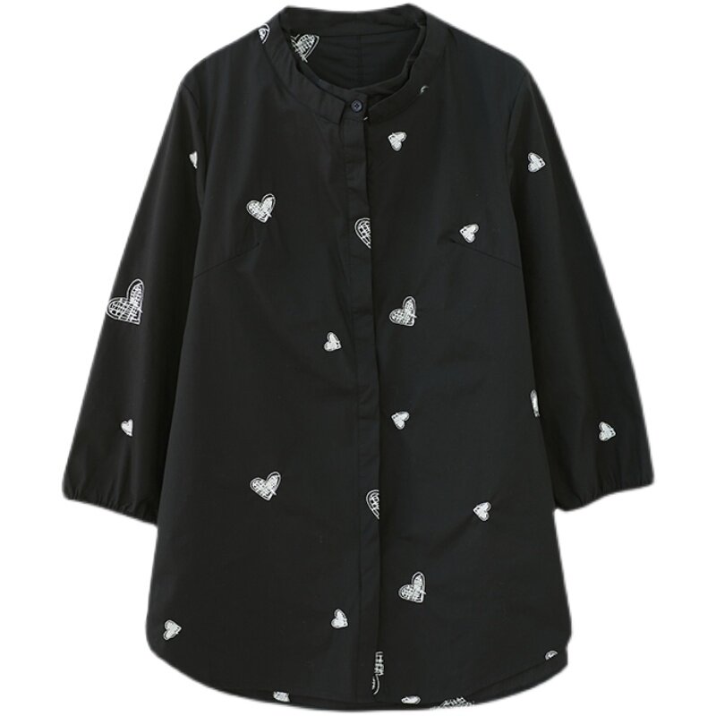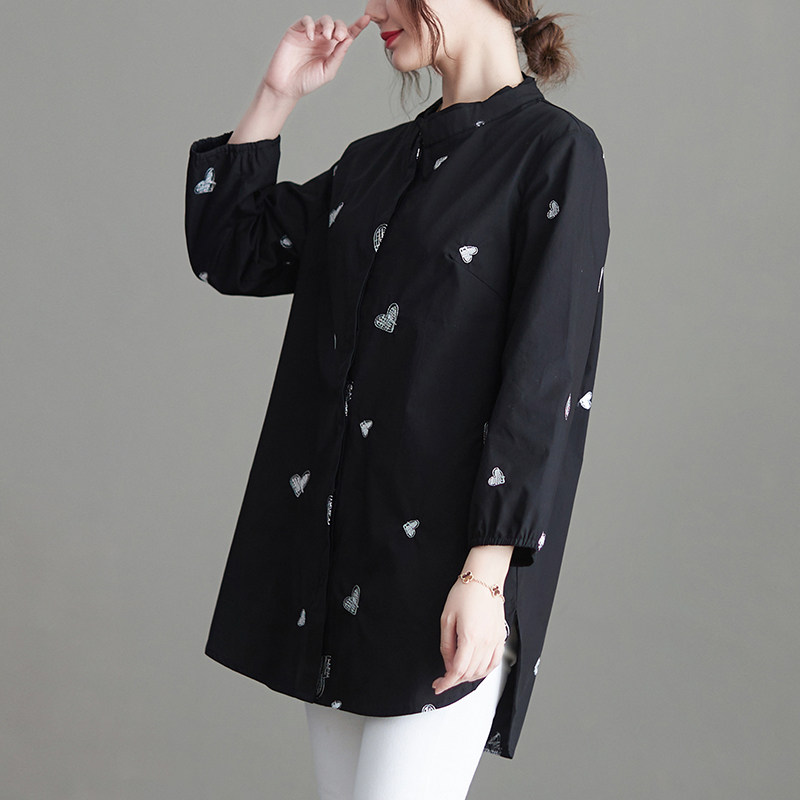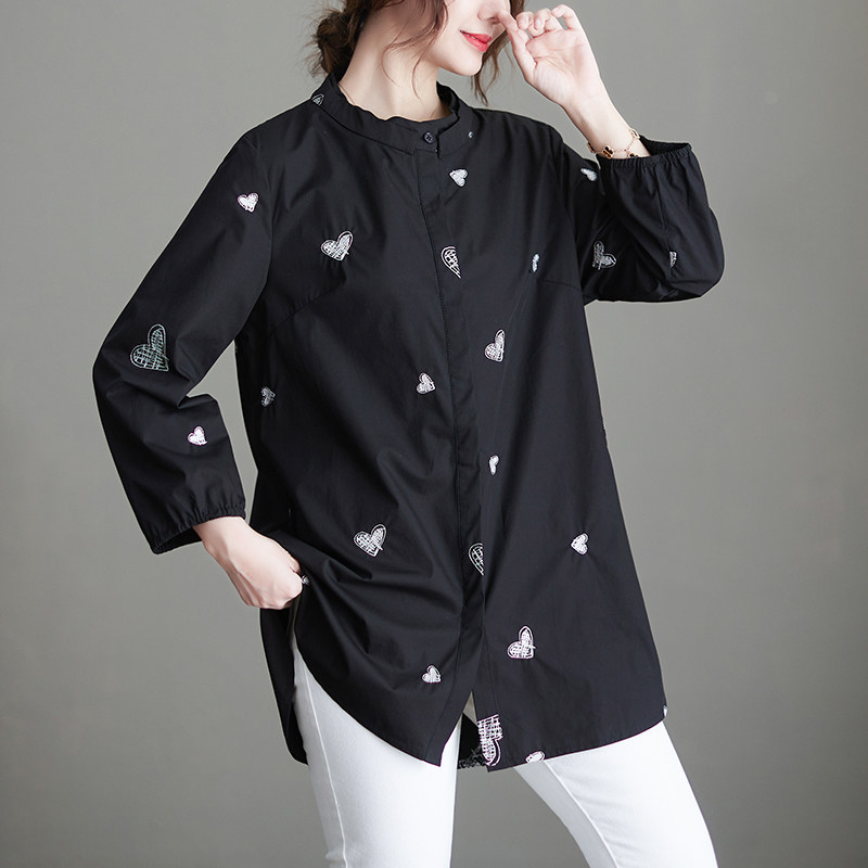 Черная весенняя рубашка, большой размер, с вышивкой, коллекция 2023, в корейском стиле