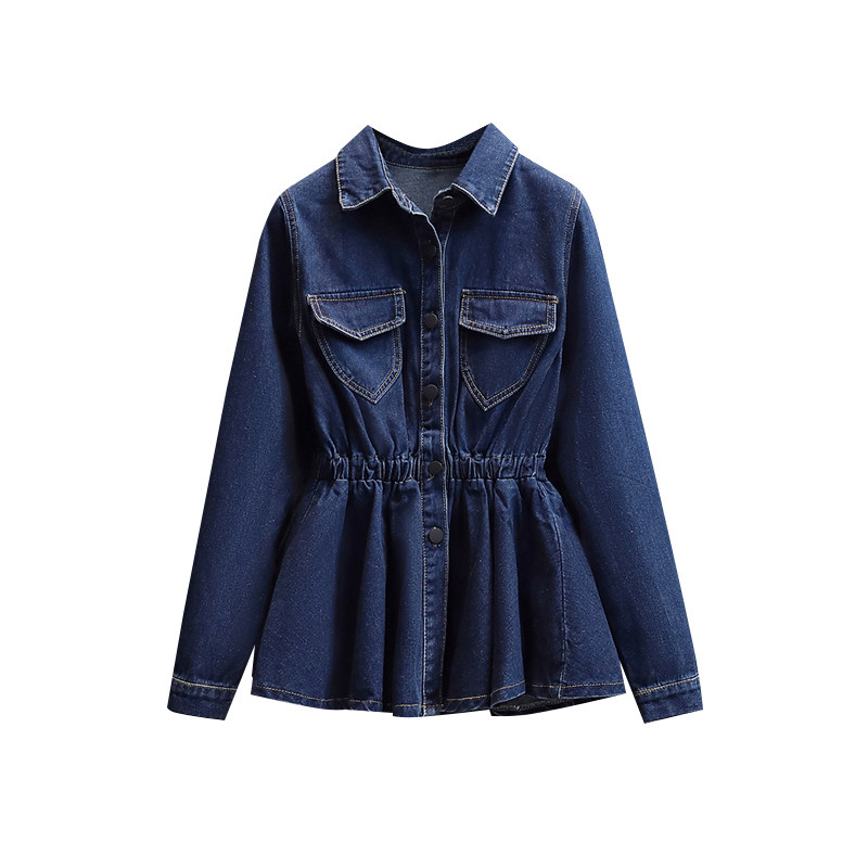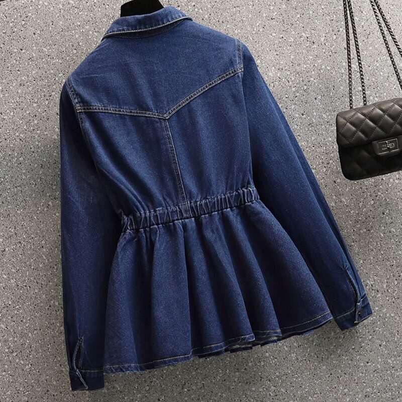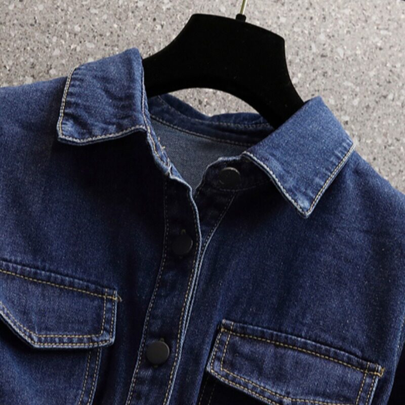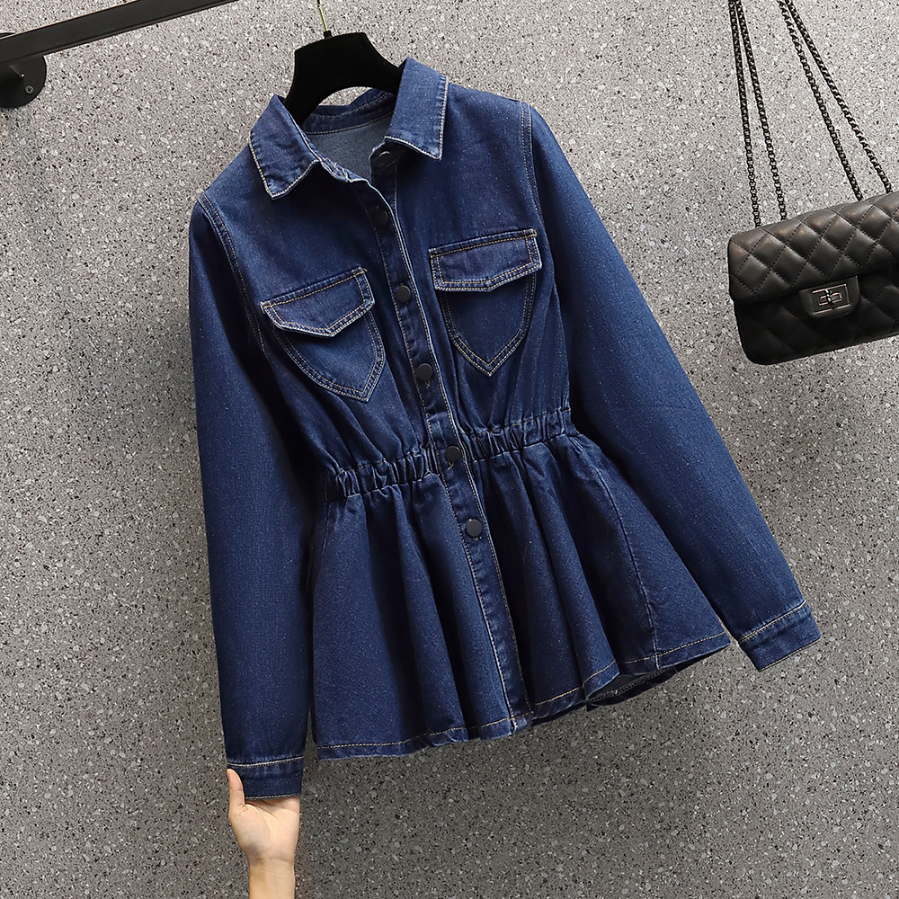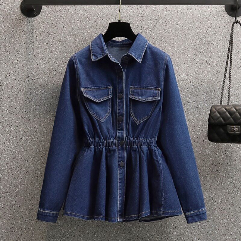 Демисезонная осенняя рубашка, приталенный корсет, длинная куртка, большой размер, воротник поло, подходит для полных девушек, средней длины