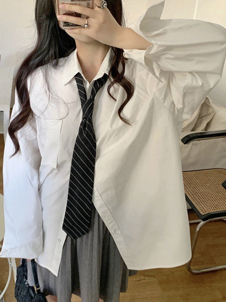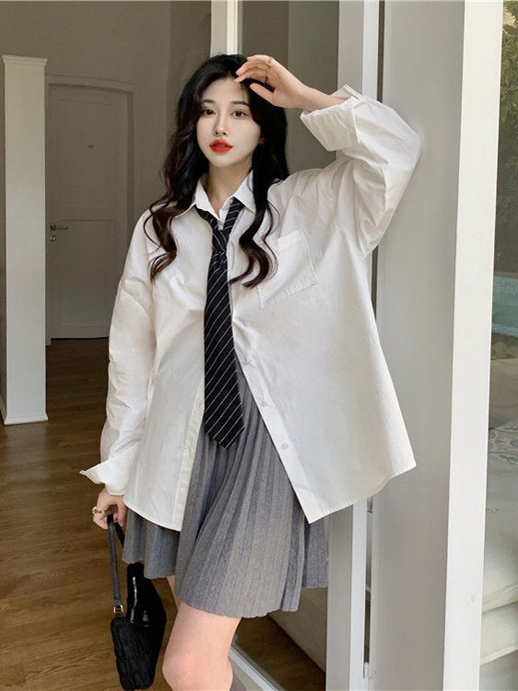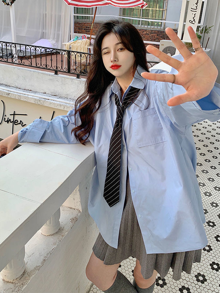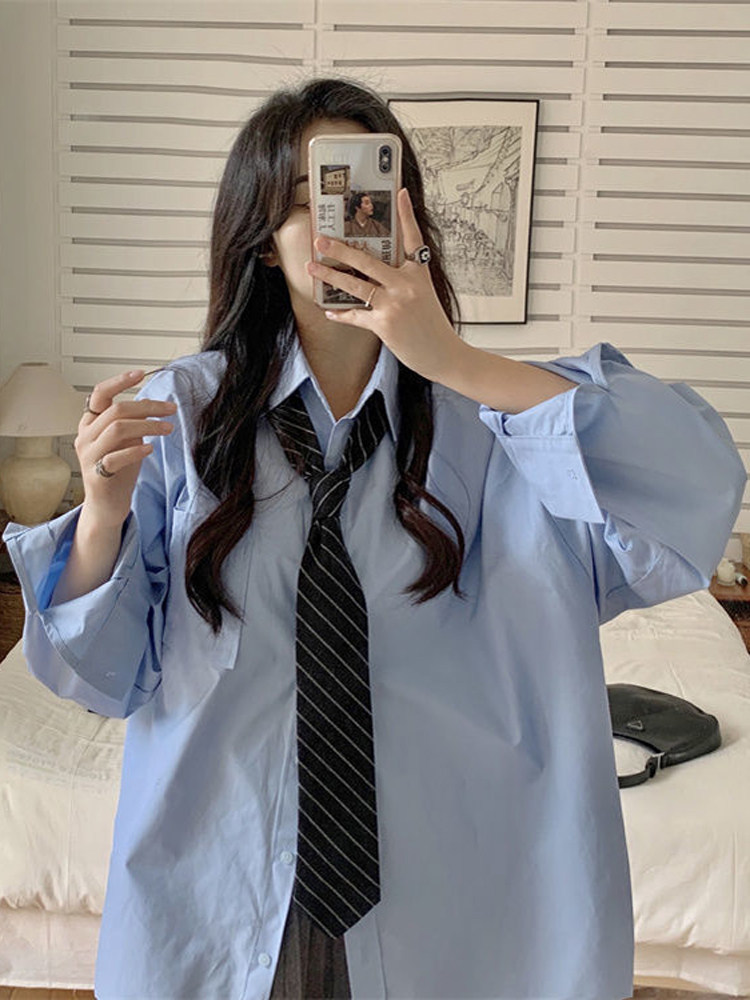 Рубашка для школьников и студентов, дизайнерский весенний галстук, коллекция 2023, свободный крой, тренд сезона