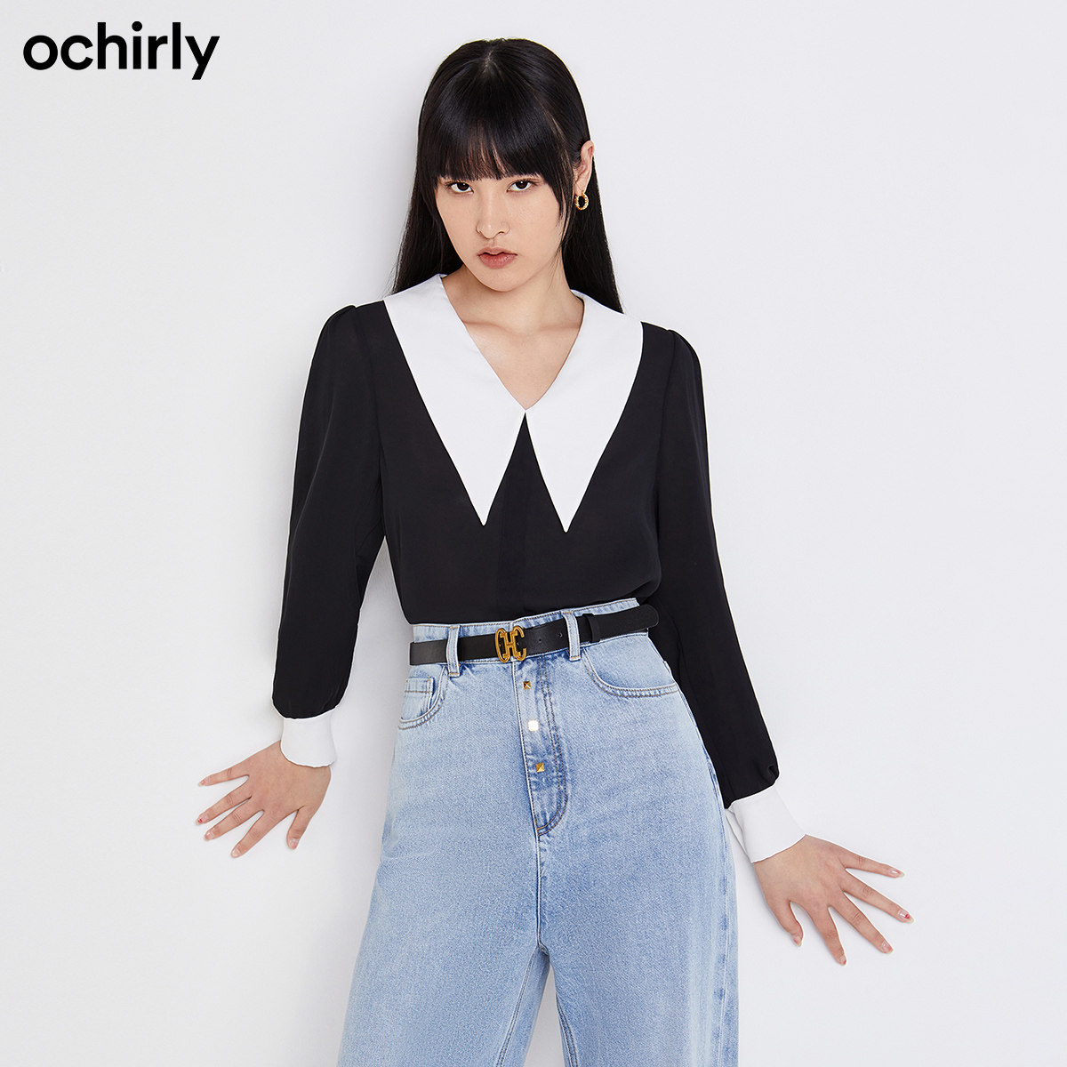 Воротник в ретро -куклах снова стал акцентом в этом сезоне. Слегка преувеличенная форма воротника игривая и сладкая, сталкивается с нежным шифоном, полностью освобождая рубашку от формального случая и легко адаптируясь к различным модным нарядам.