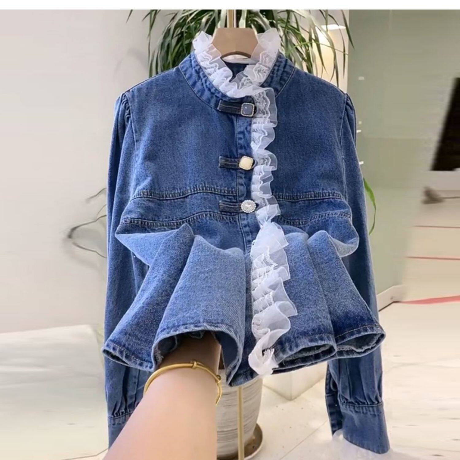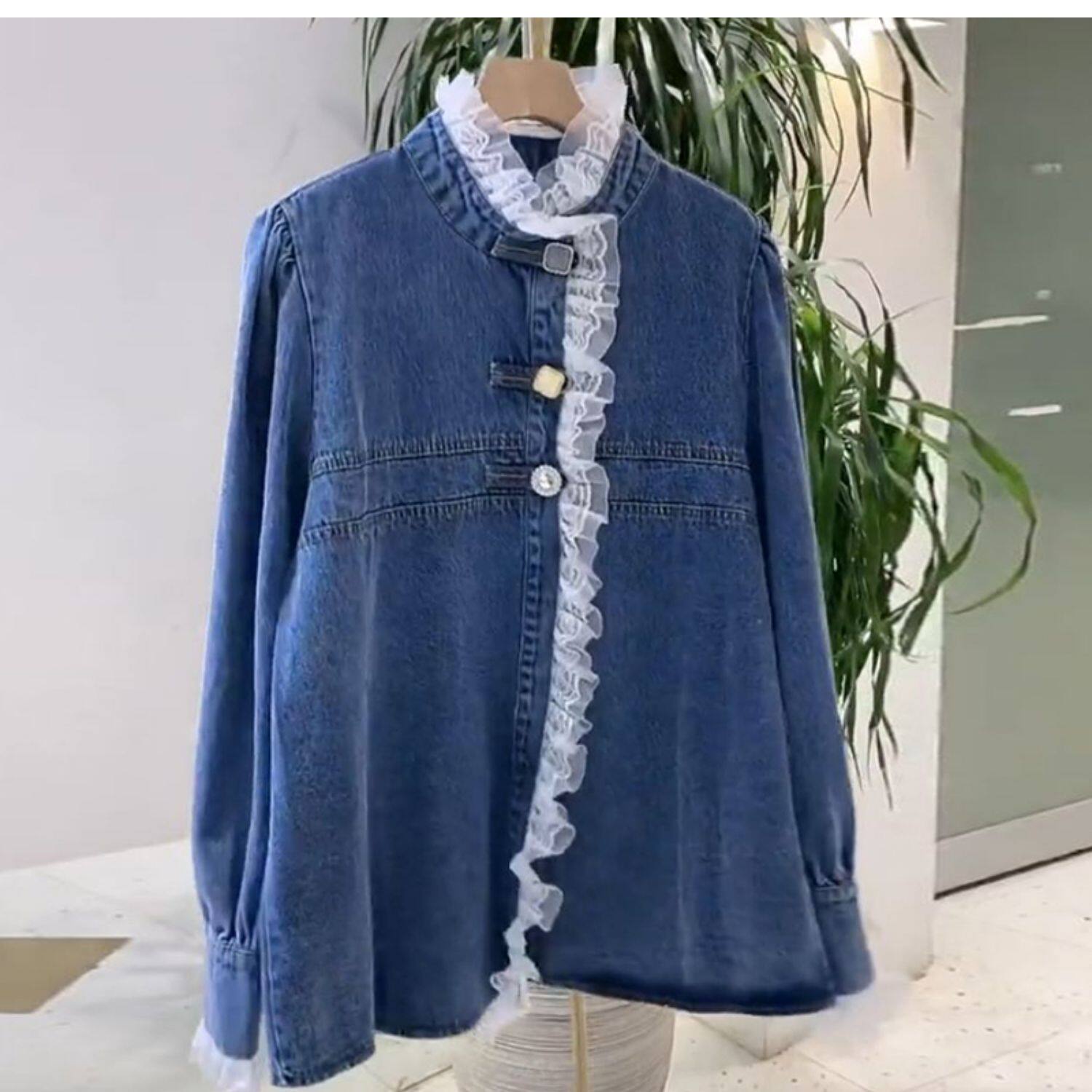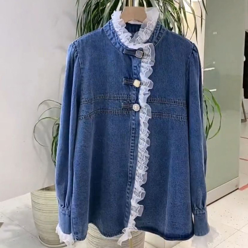 Дизайнерская весенняя кружевная рубашка, тренд сезона, 2022, в корейском стиле, в западном стиле, кружевное платье