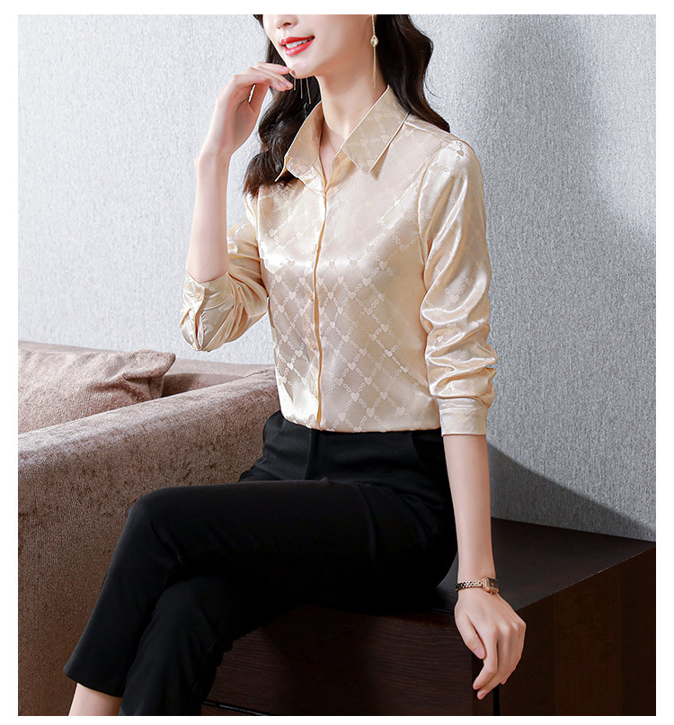 Шелковая осенняя рубашка, вместительный и большой пуховик, элитный базовый шелковый лонгслив, в западном стиле