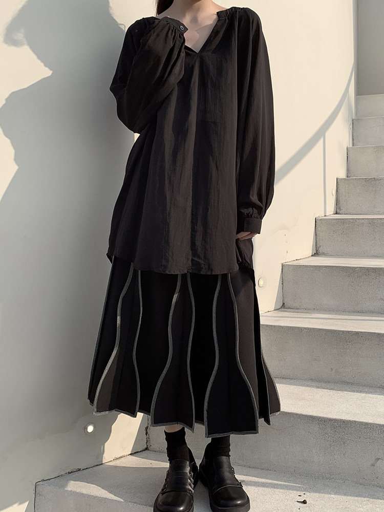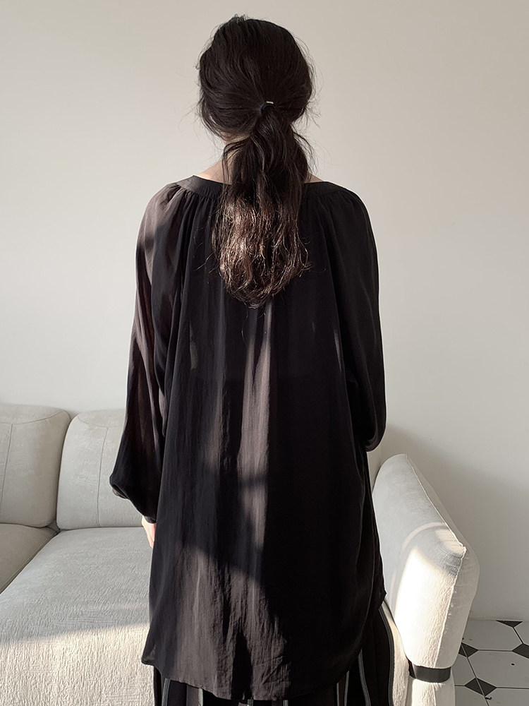 陆与山屿 Весенняя минималистичная черная рубашка, 2025 года, V-образный вырез