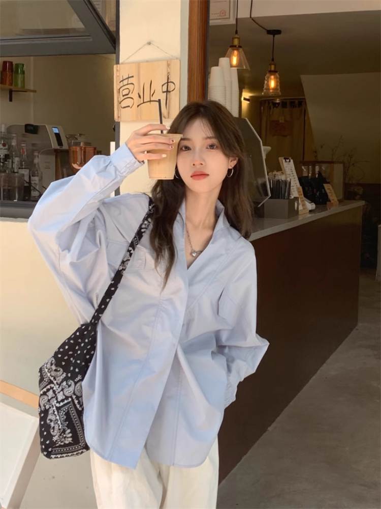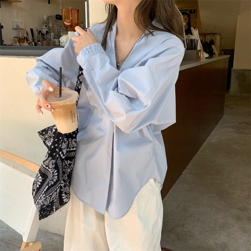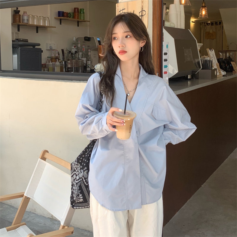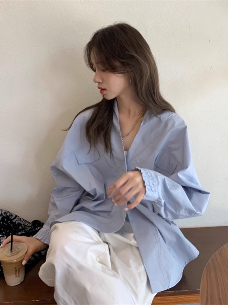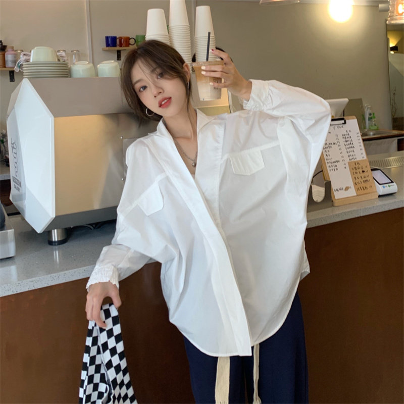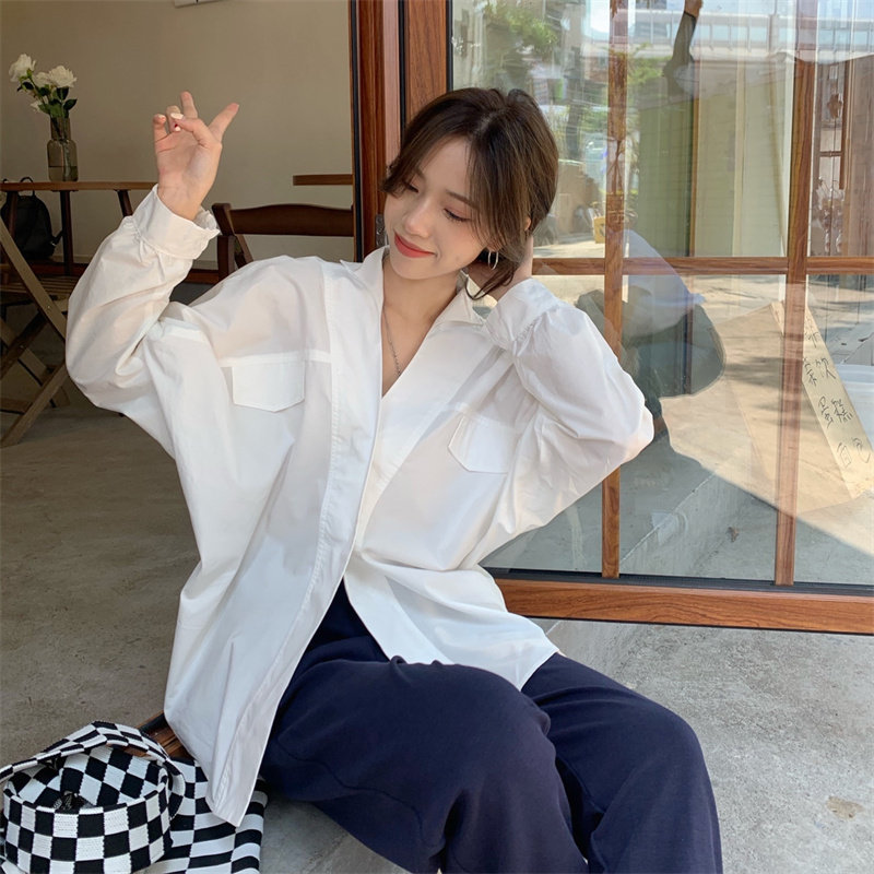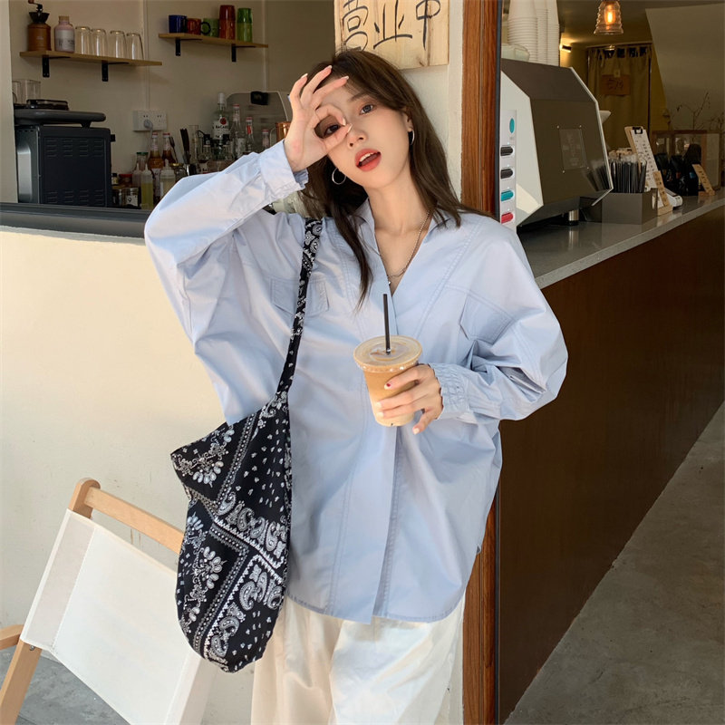 Белая дизайнерская осенняя рубашка для отдыха, V-образный вырез, свободный крой, стиль