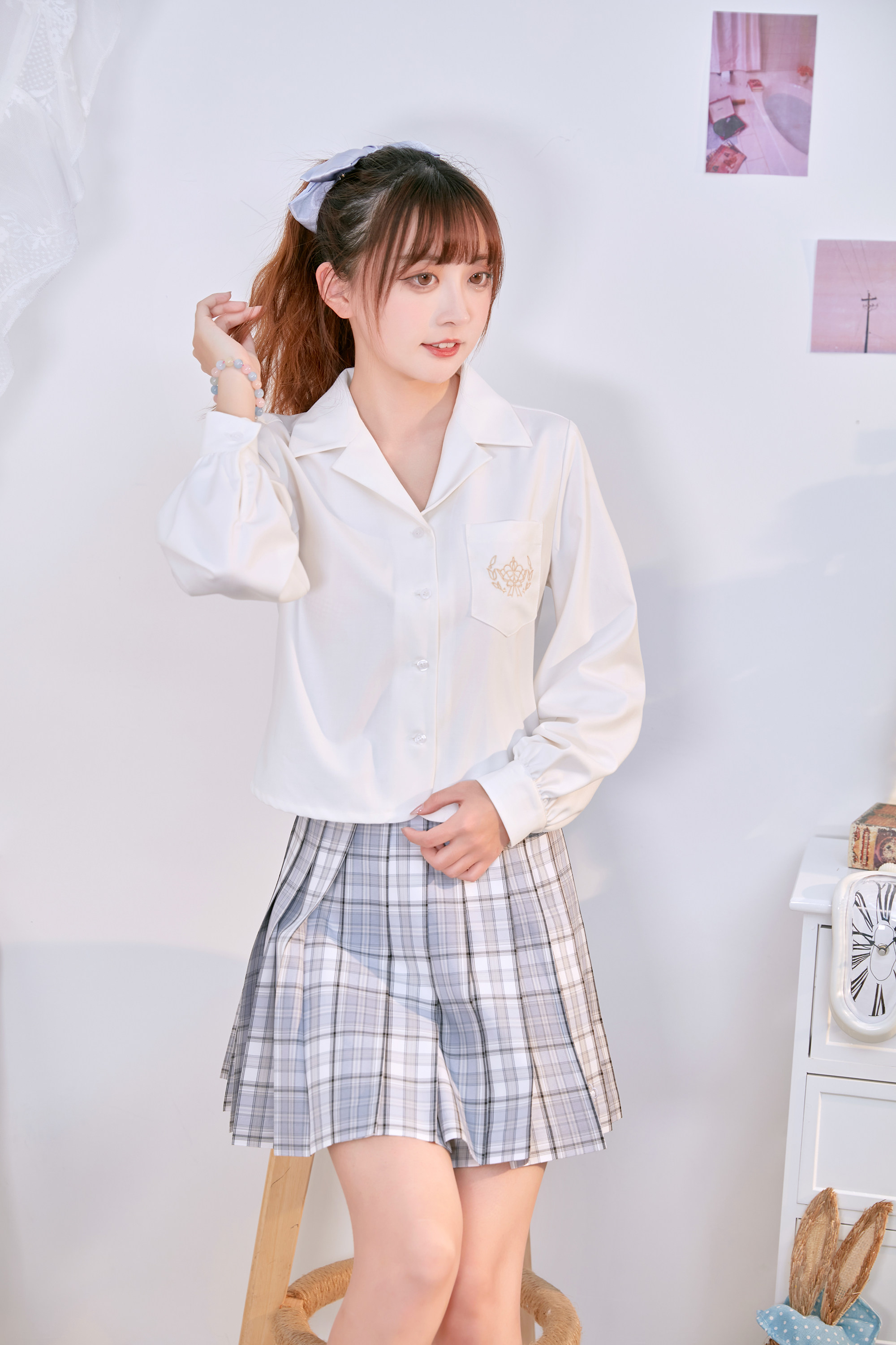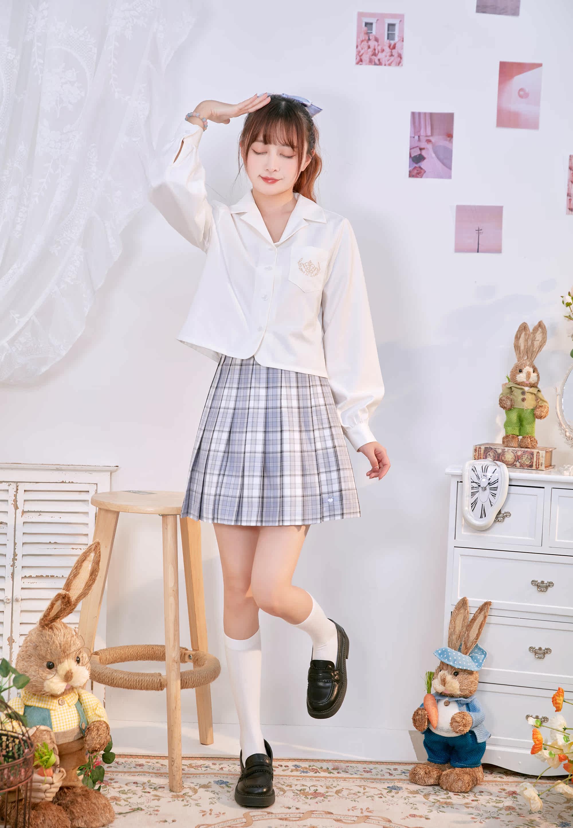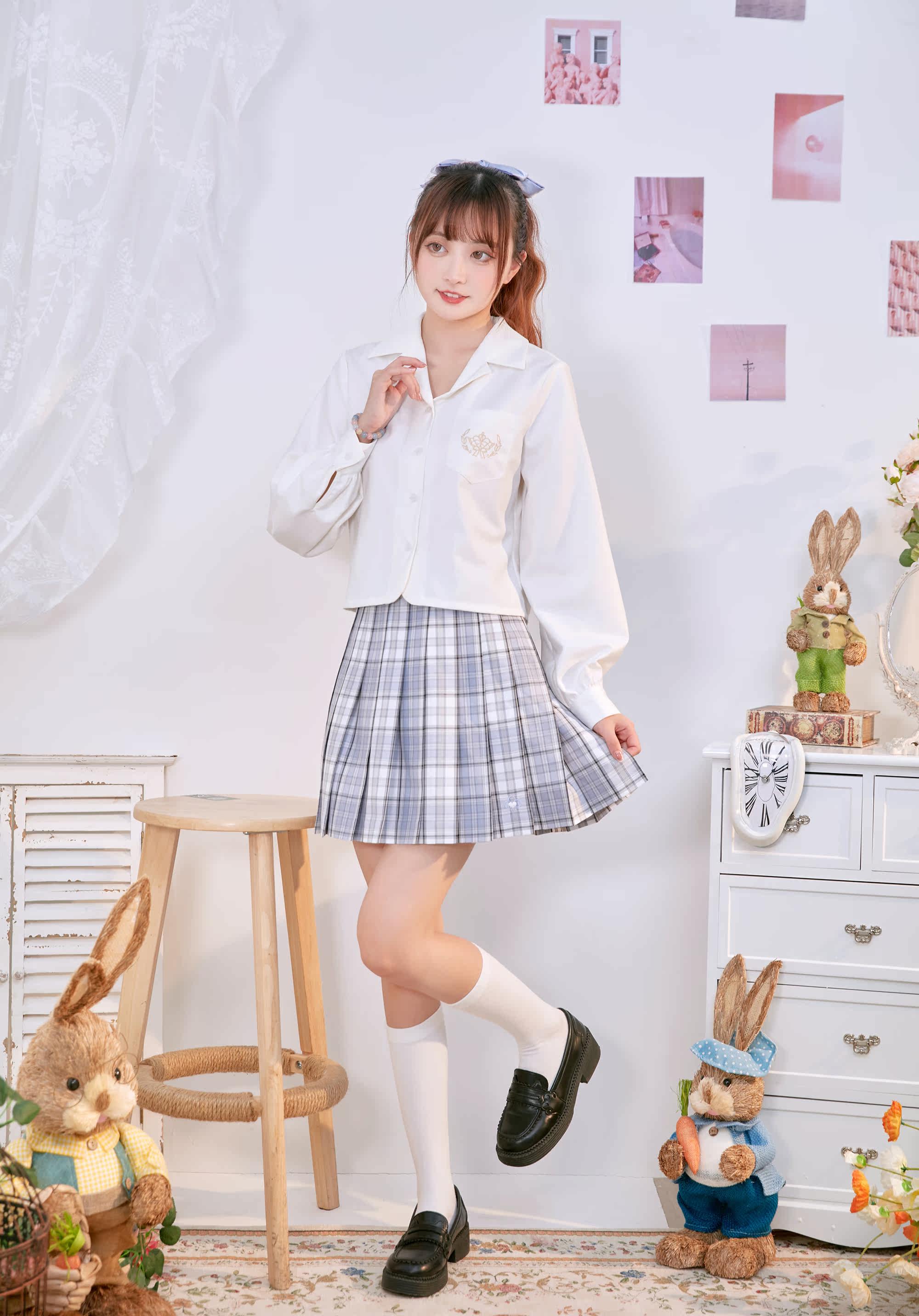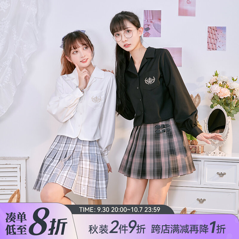 Рубашка, студенческая юбка в складку, осенняя форма