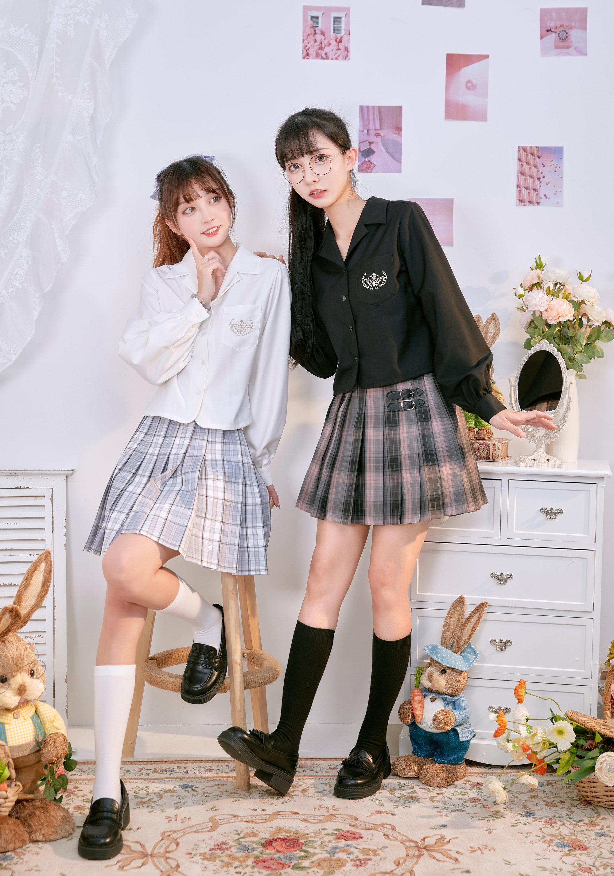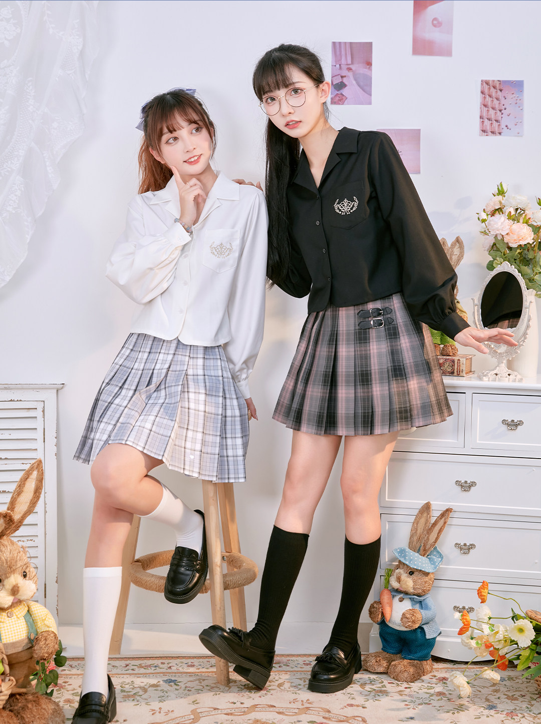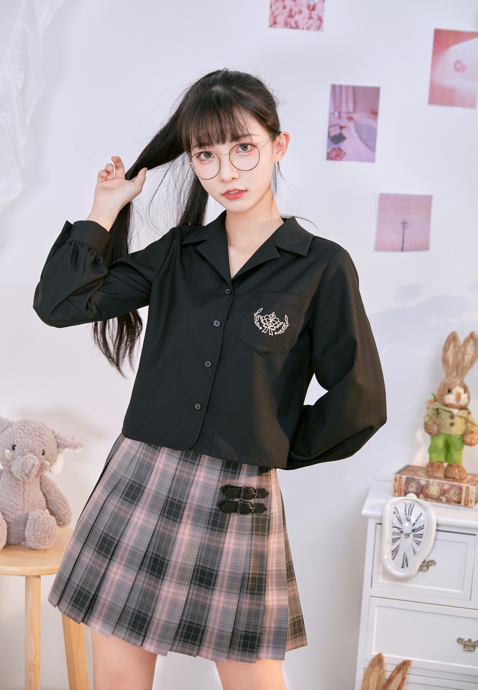 Рубашка, студенческая юбка в складку, осенняя форма