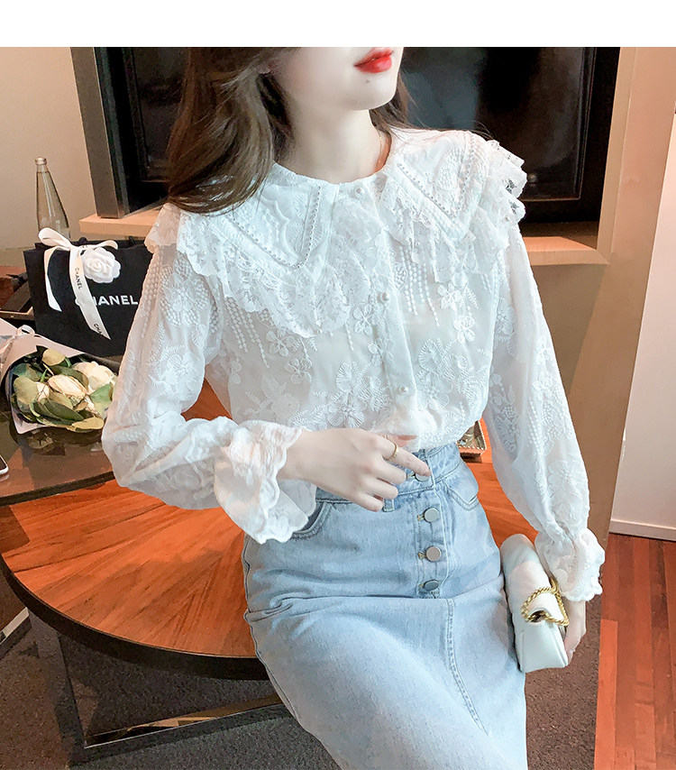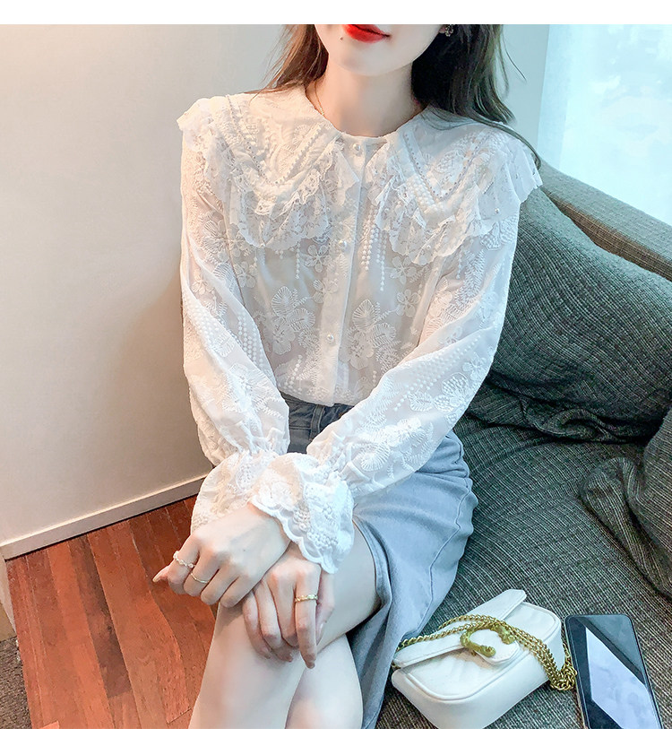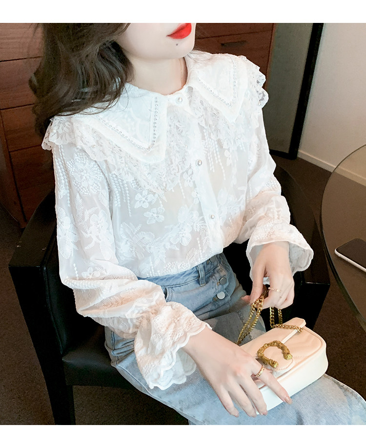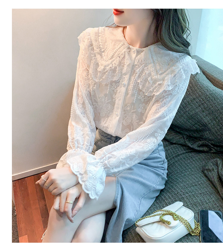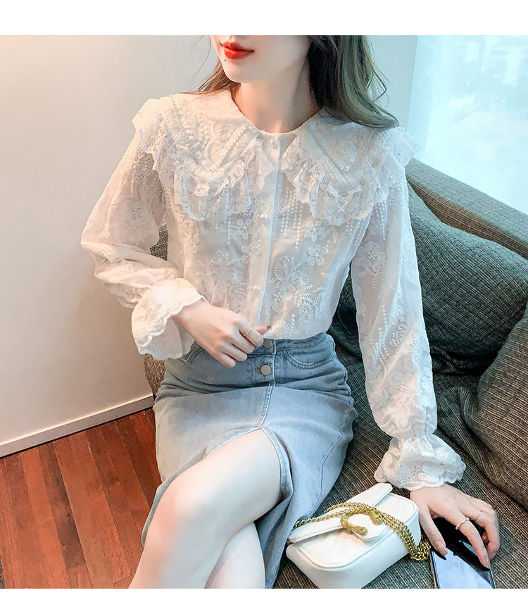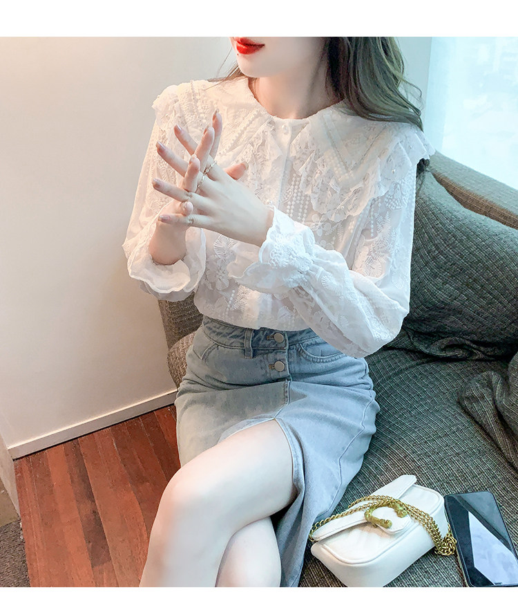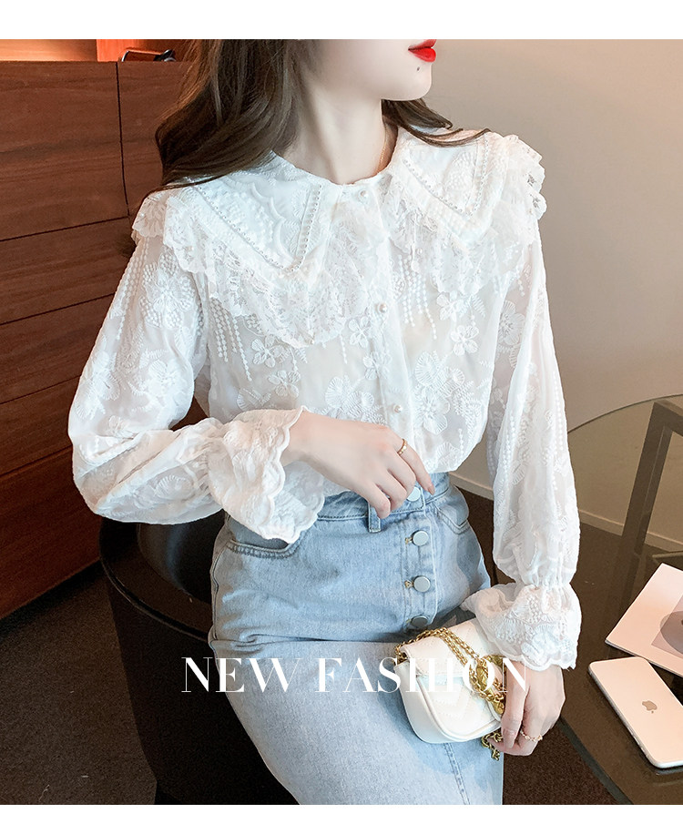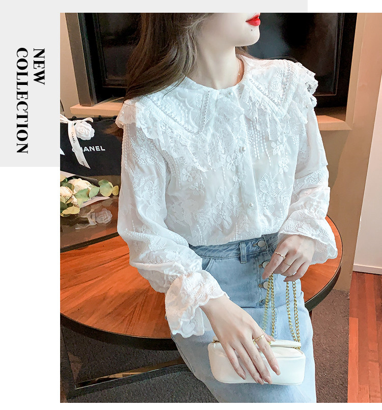 Кукла, осенняя рубашка, кружевной шелковый приятный телу лонгслив, кукольный воротник, коллекция 2023, новая коллекция