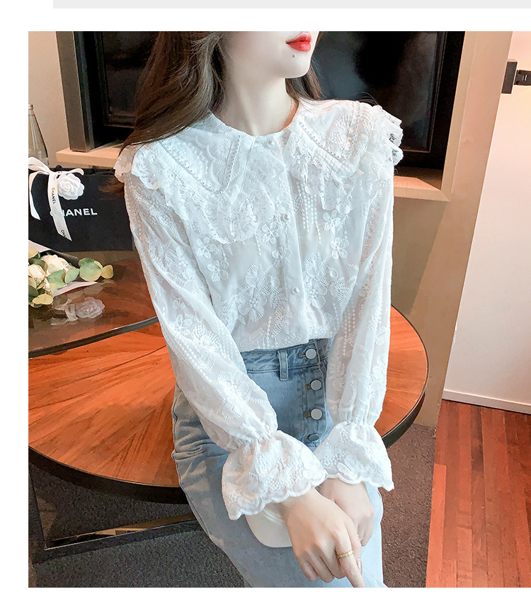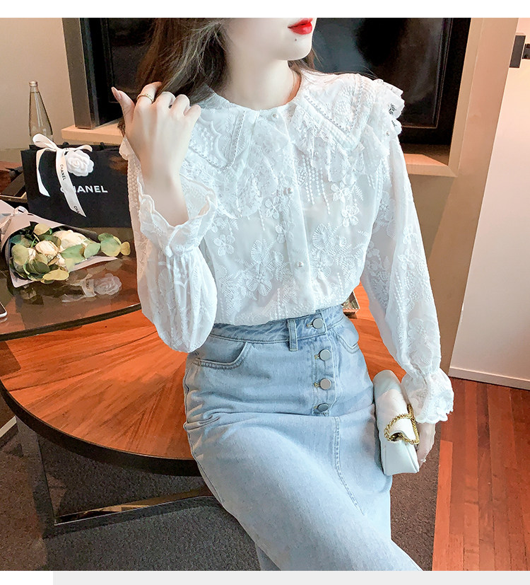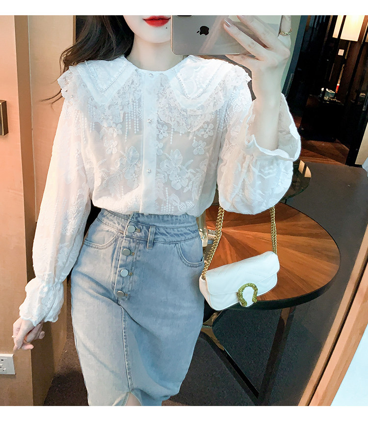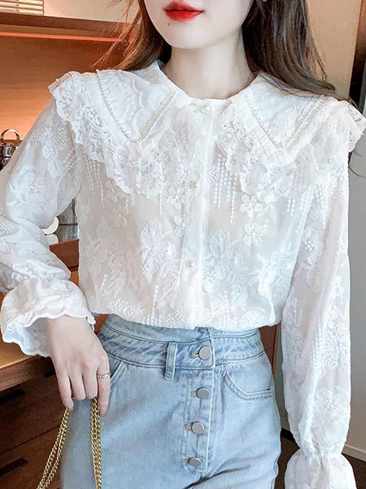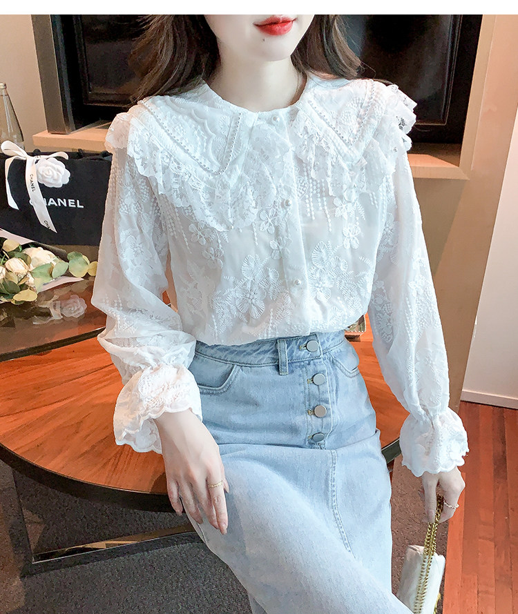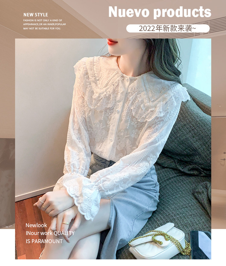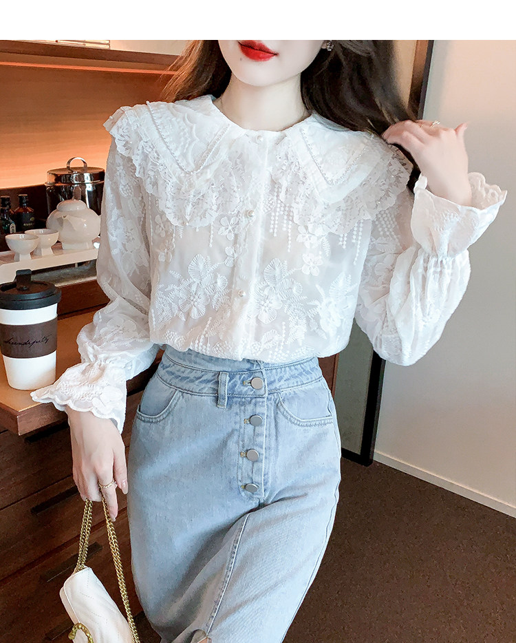 Кукла, осенняя рубашка, кружевной шелковый приятный телу лонгслив, кукольный воротник, коллекция 2023, новая коллекция