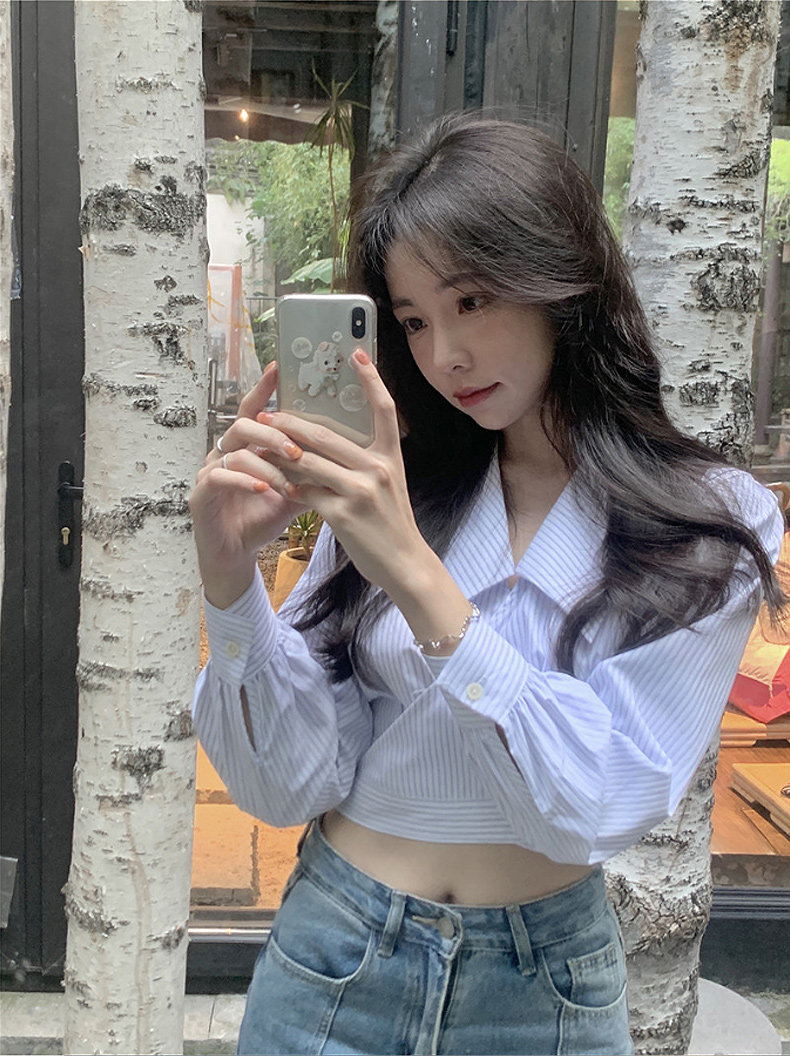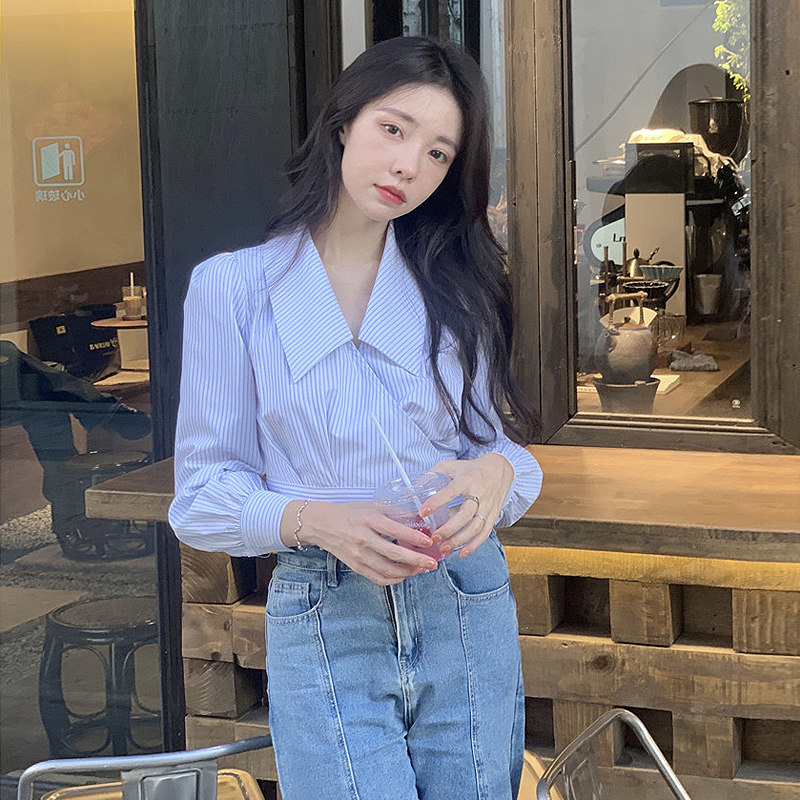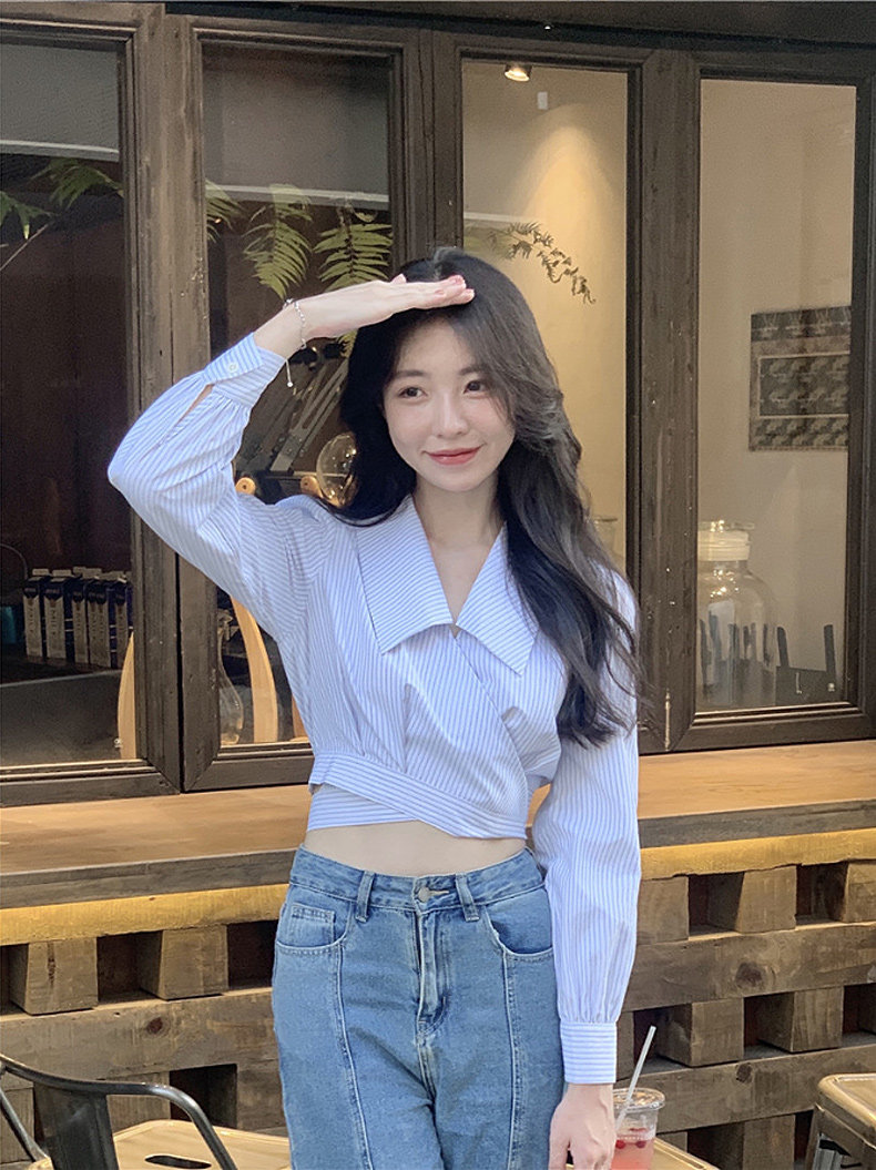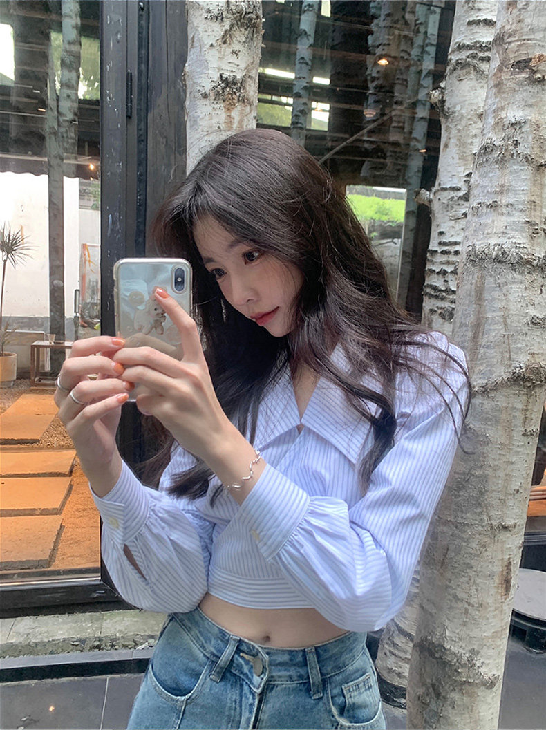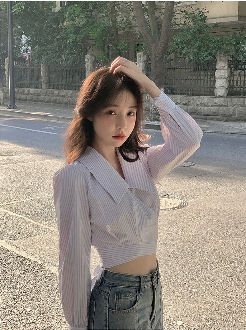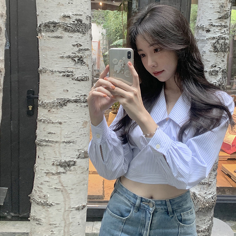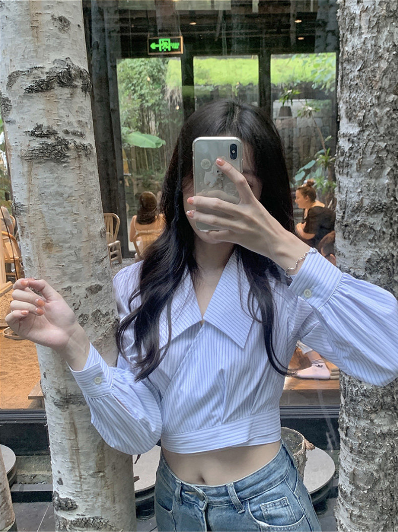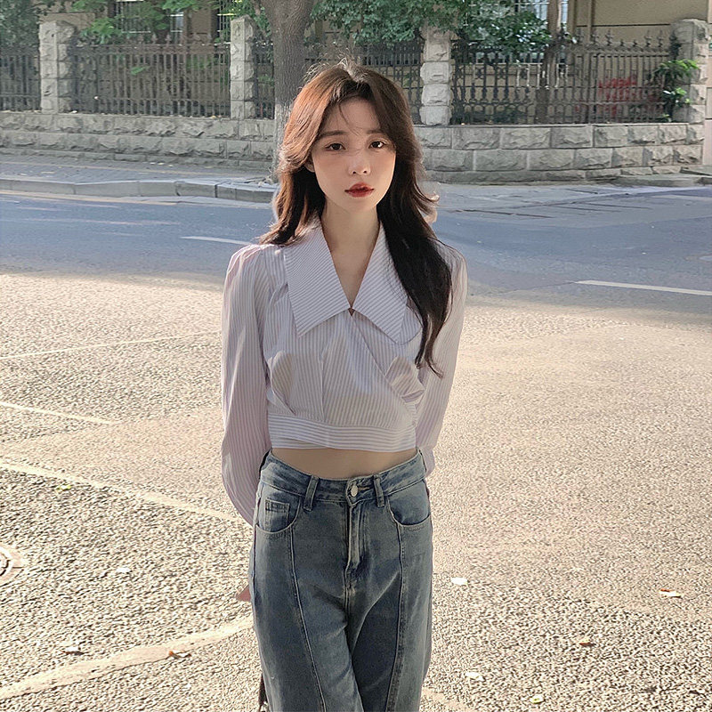 Дизайнерская весенняя короткая рубашка, высокая талия, тренд сезона, подходит для подростков, коллекция 2022
