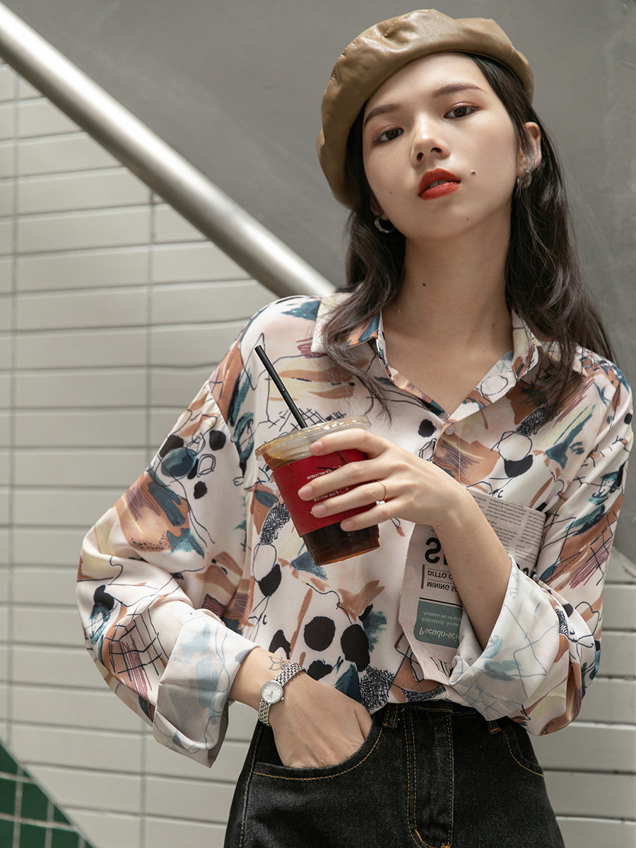 Рубашка, ретро демисезонный лонгслив, оверсайз