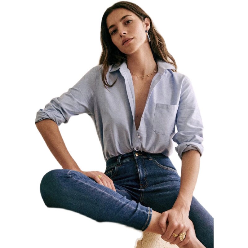 Летний синий хлопковый кардиган, базовый лонгслив, рубашка, французский стиль