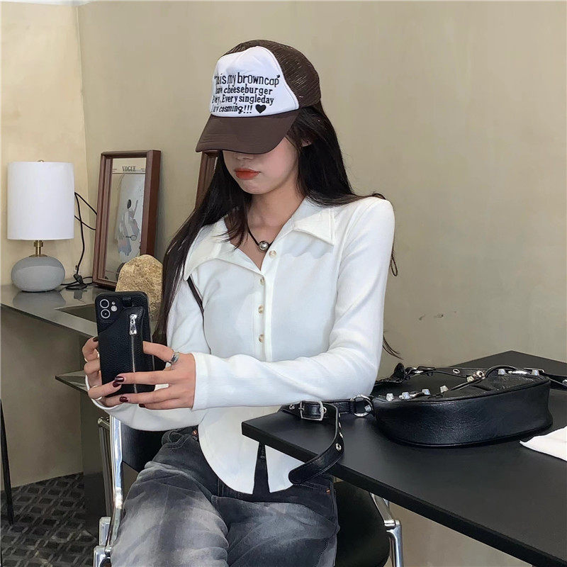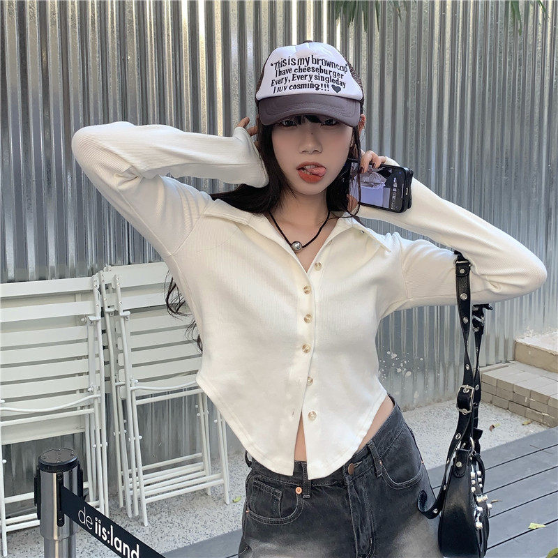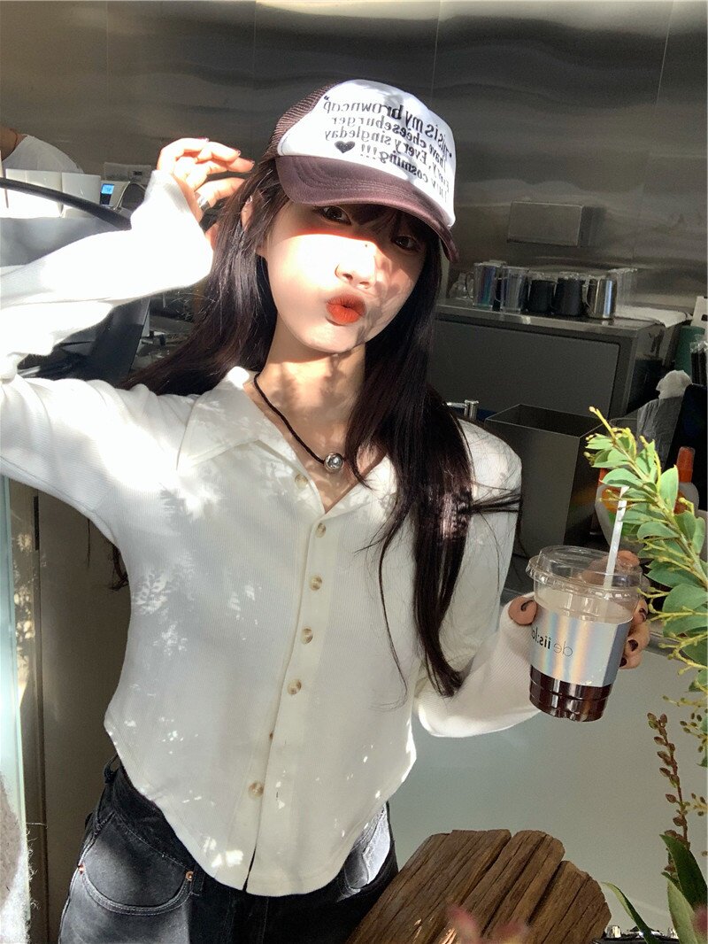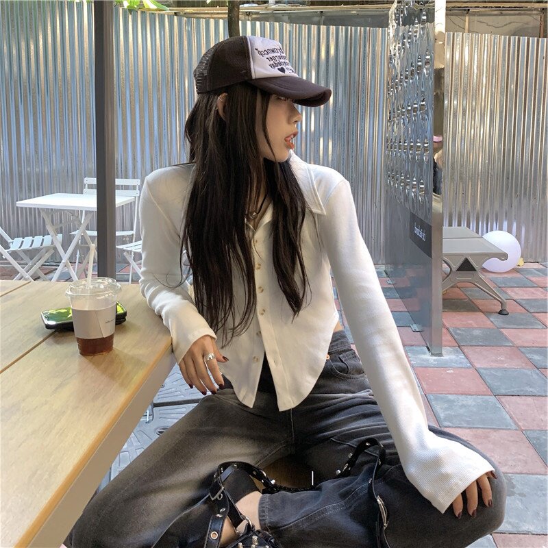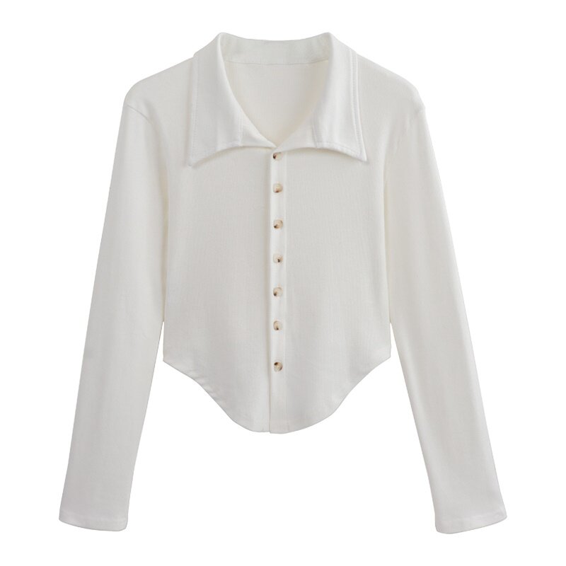 Короткая весенняя базовая приятная телу рубашка, воротник поло, 2025 года, большой размер