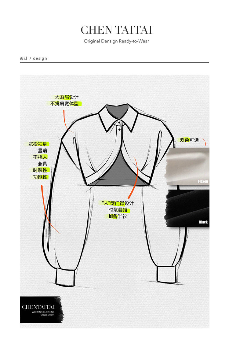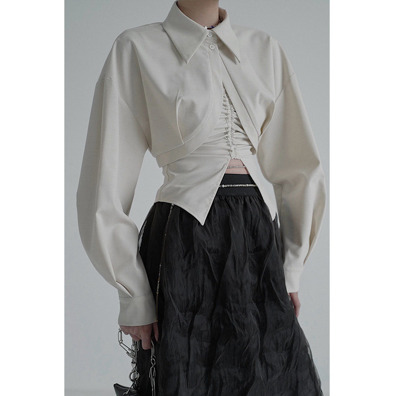 Короткая рубашка с длинными рукавами и изогнутой планкой No Illusion x Mrs. Chen CHENTAITAI