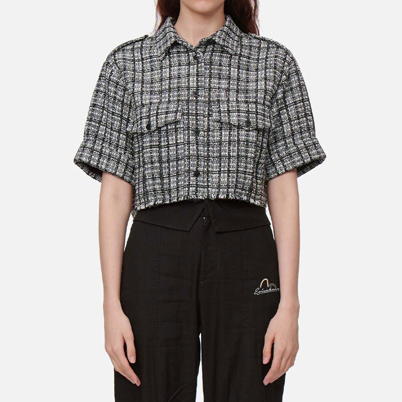 EVISUKURO женская повседневная модная клетчатая рубашка с короткими рукавами по всей поверхности для женщин