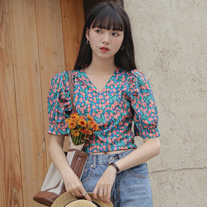 Летняя милая рубашка для отдыха, короткий рукав, цветочный принт