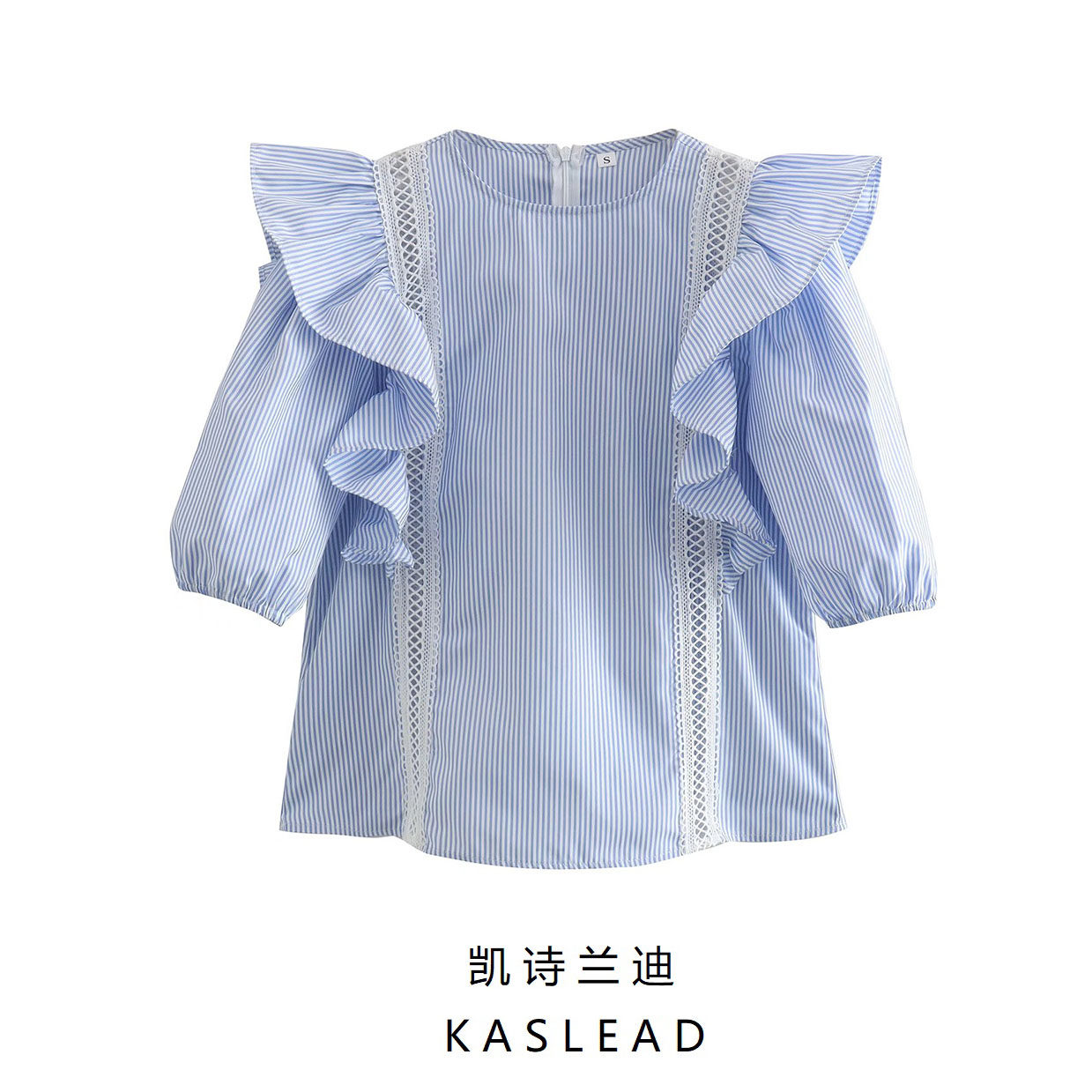 Kaslead Новая женская европейская и американская кружевная сшиваемая шва в полосатом рукаве.