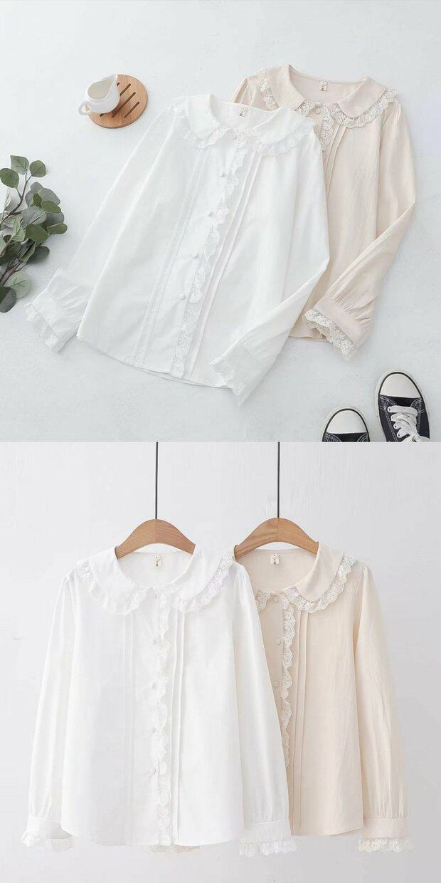 Японская свежая кружевная кукла, лонгслив, рубашка, кружевное платье, кукольный воротник, оверсайз