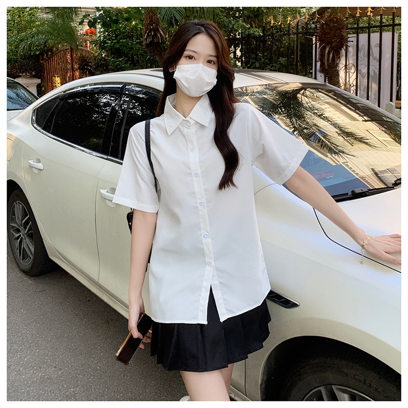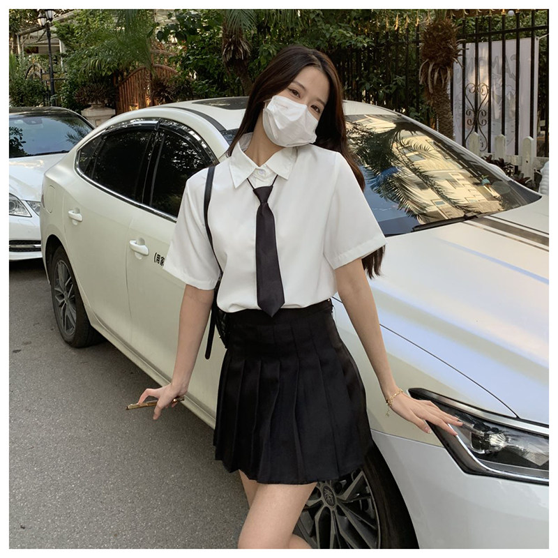 Студенческая юбка в складку, летняя рубашка, мини-юбка, комплект, короткий рукав