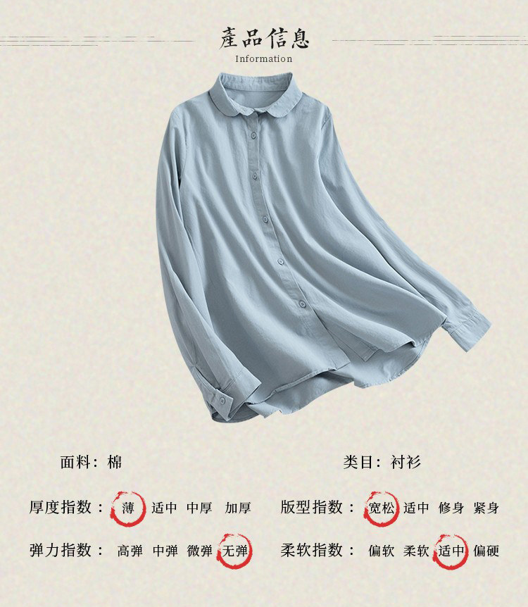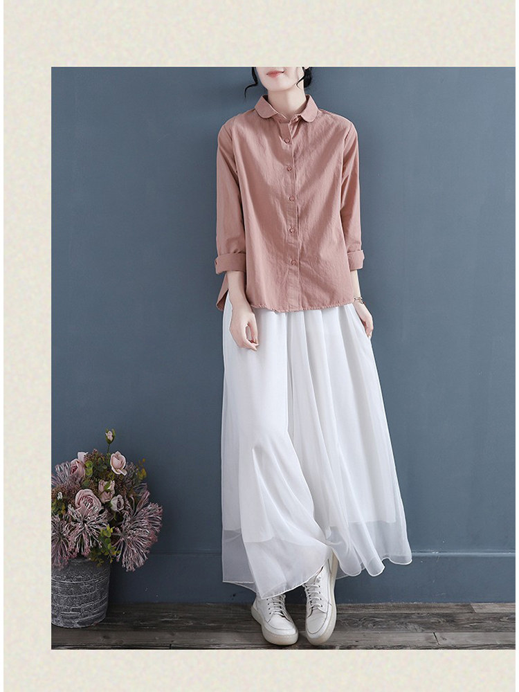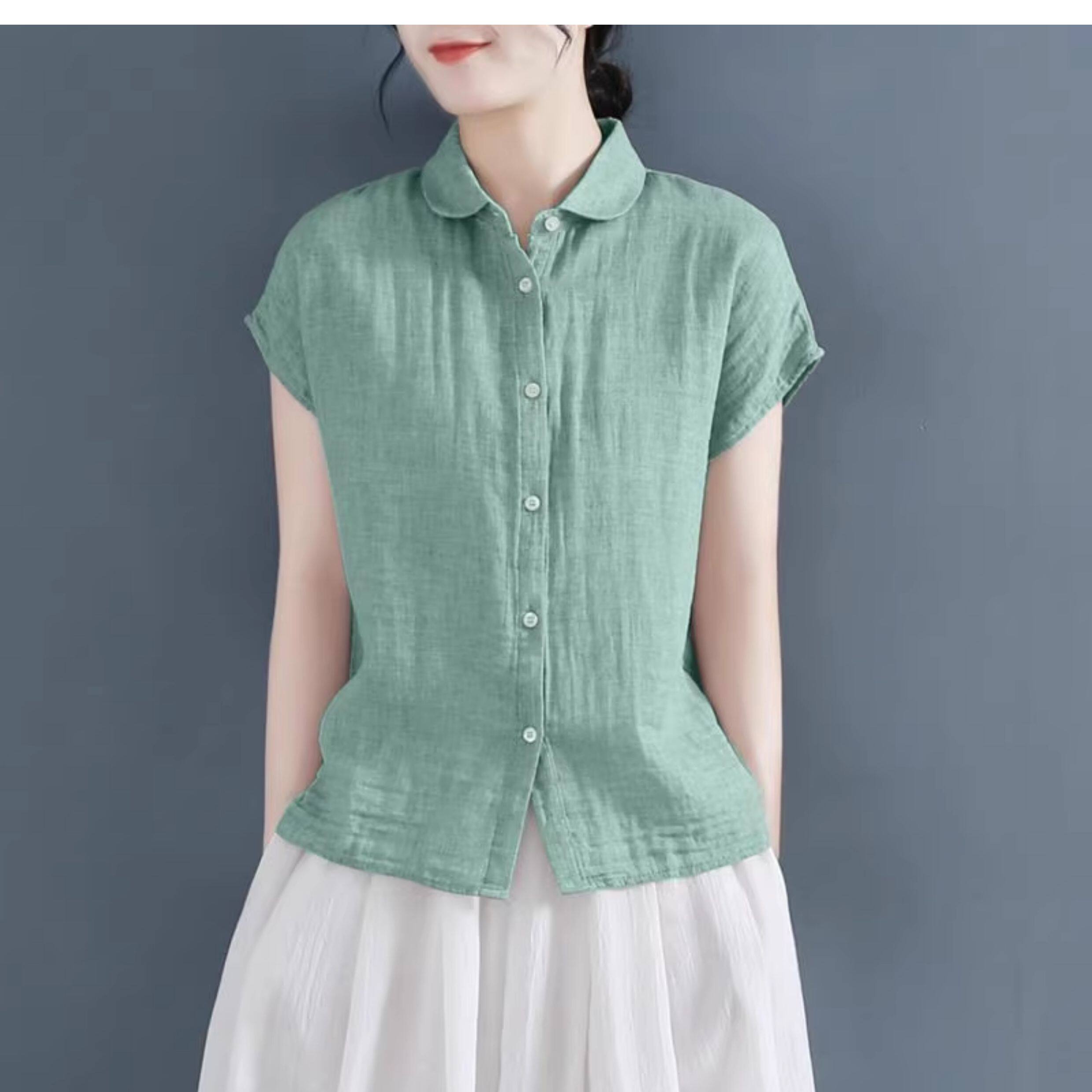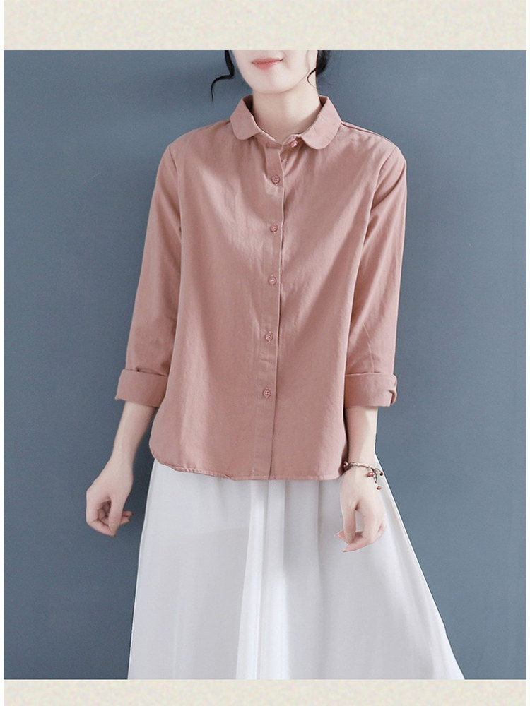 Летняя хлопковая рубашка, лонгслив для отдыха, кукла, кукольный воротник, из хлопка и льна