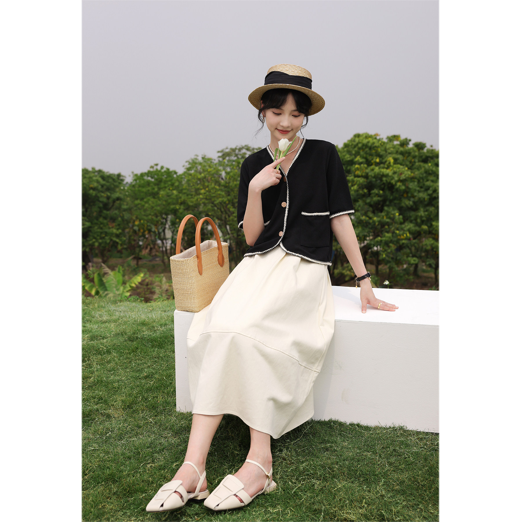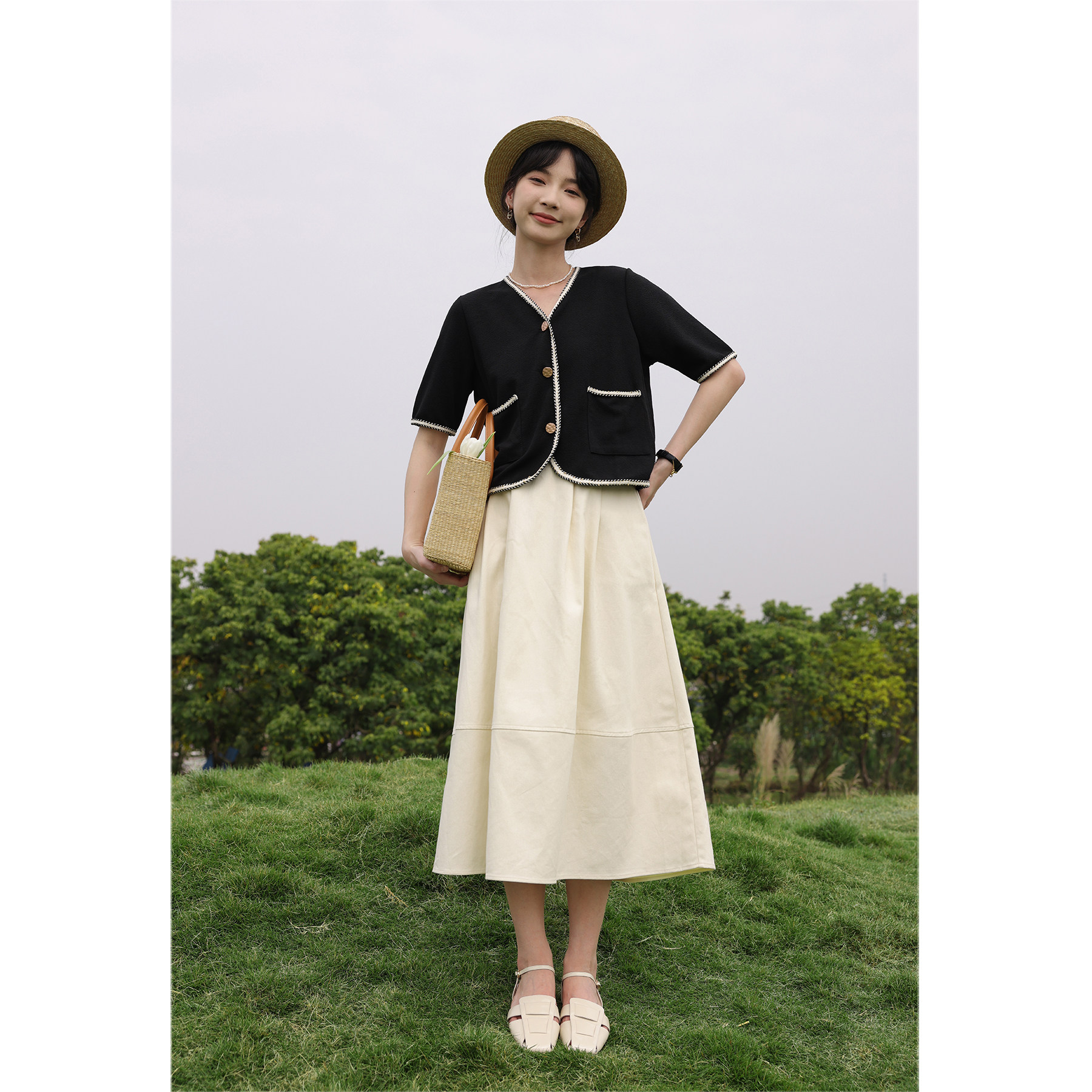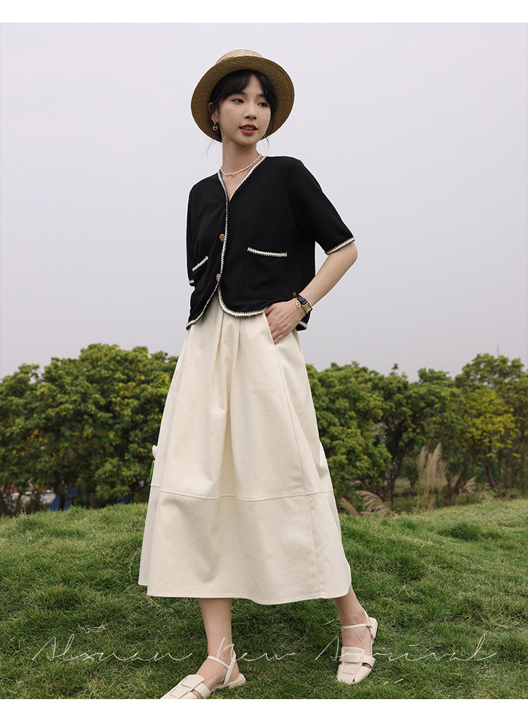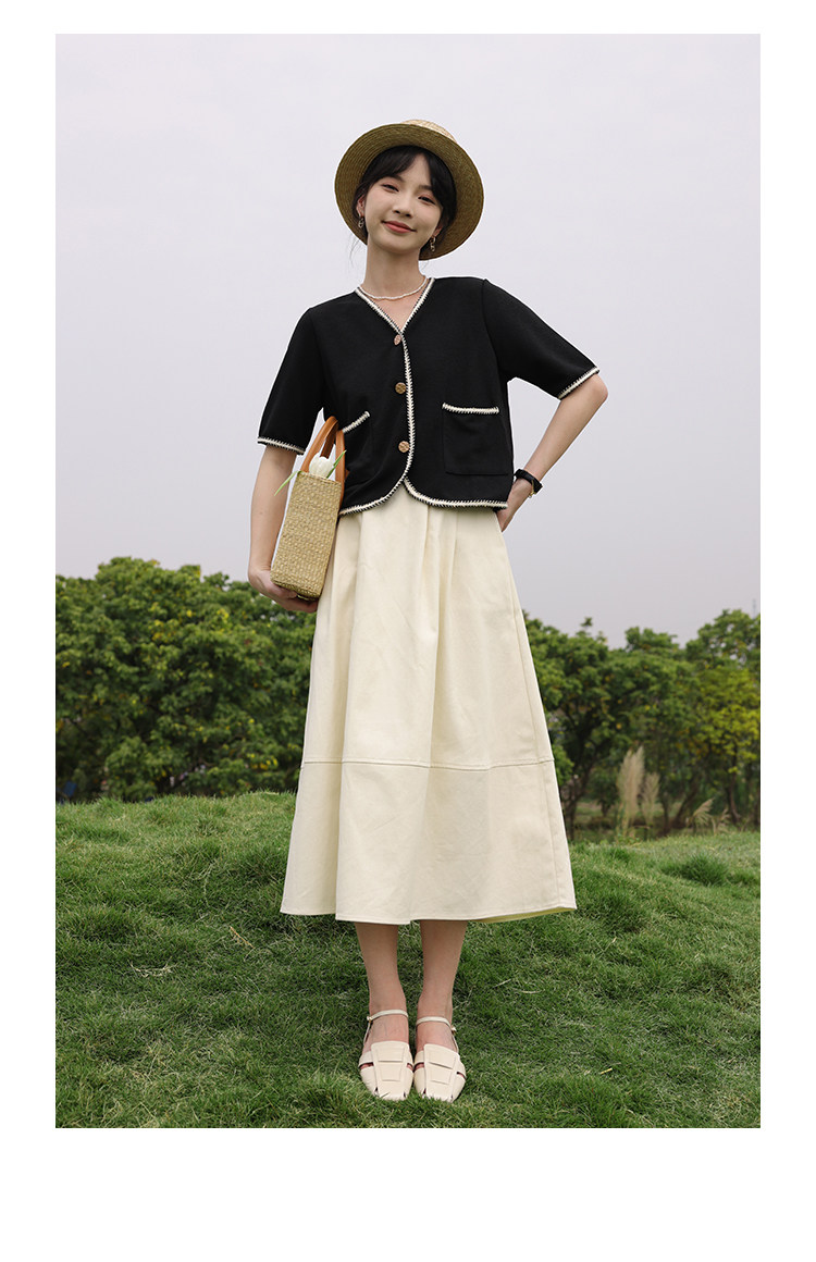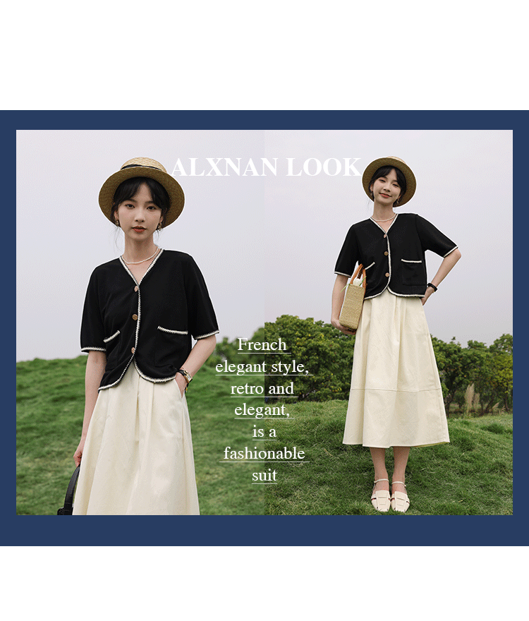 Черный летний модный кардиган, V-образный вырез, коллекция 2022, французский стиль, в стиле Шанель, короткий рукав
