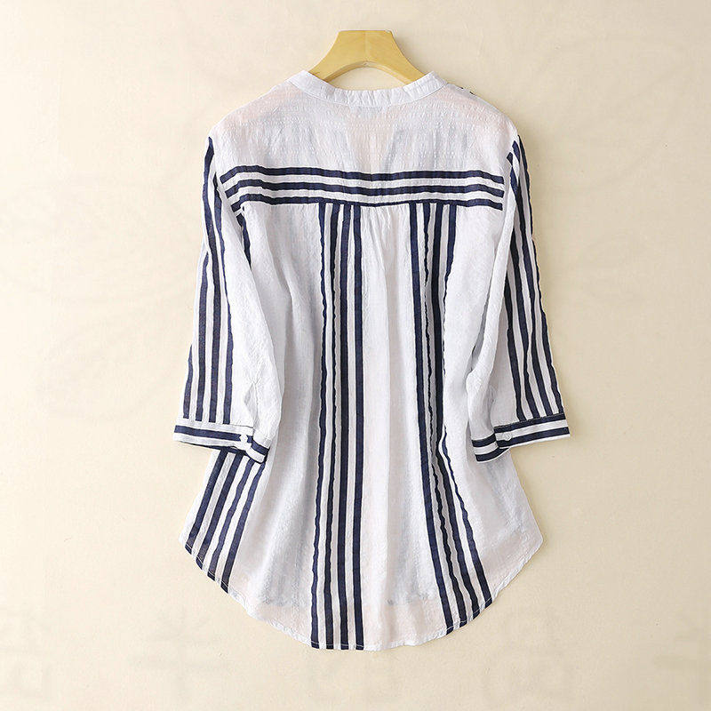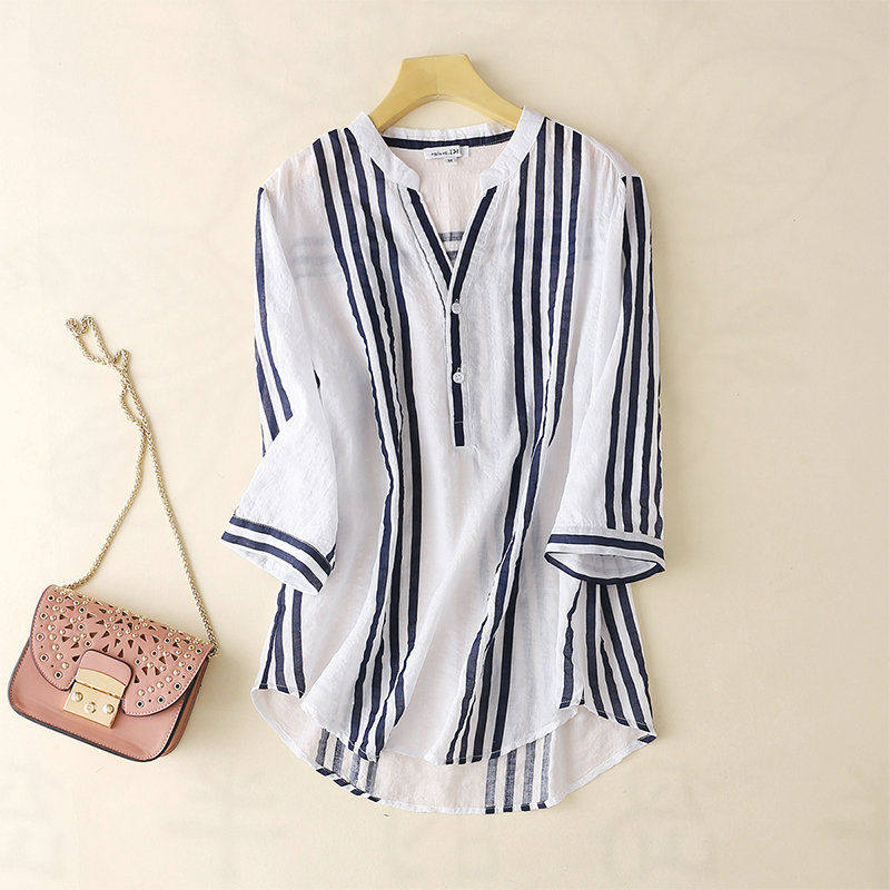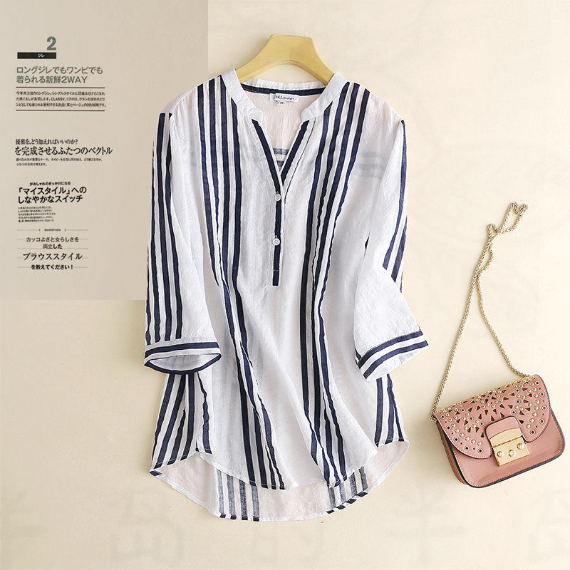 Корейская версия простой полосатой рубашки с семиточной рубашкой маленькой рубашки