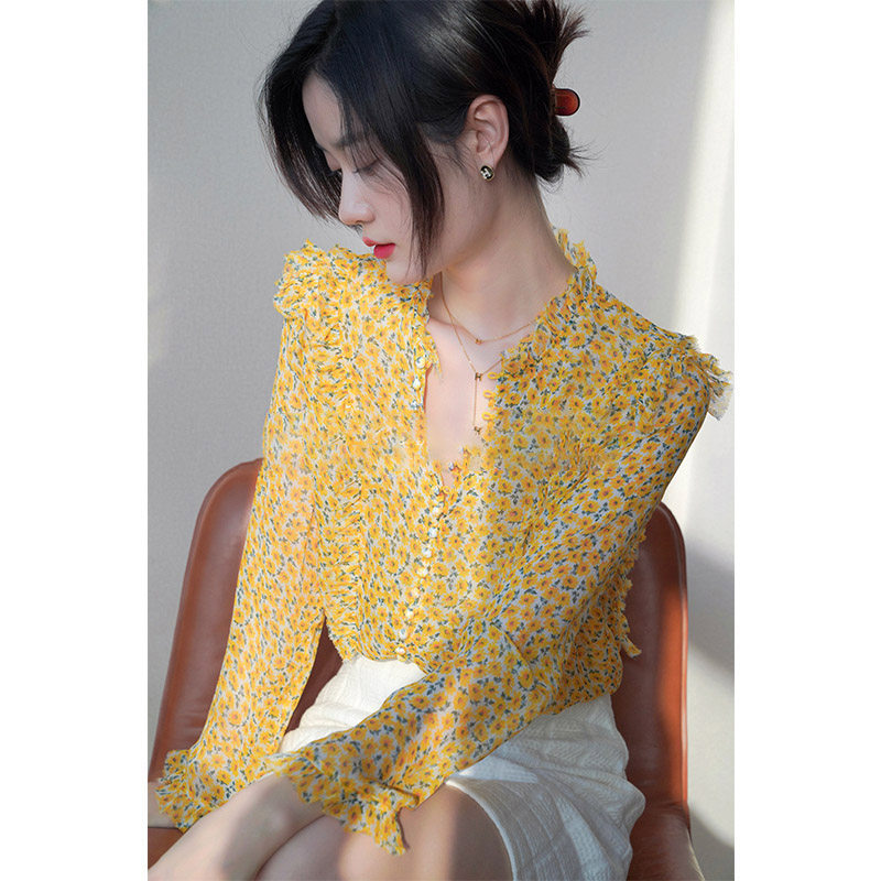 Милый лонгслив, шелковая весенняя рубашка для отдыха, цветочный принт, оверсайз