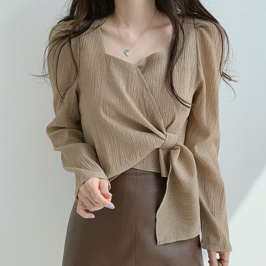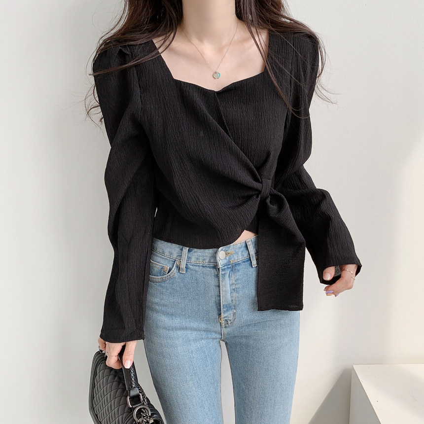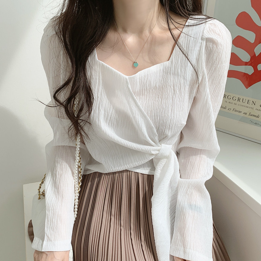 Короткая рубашка, городской стиль, коллекция 2022, французский стиль, изысканный стиль, квадратный вырез