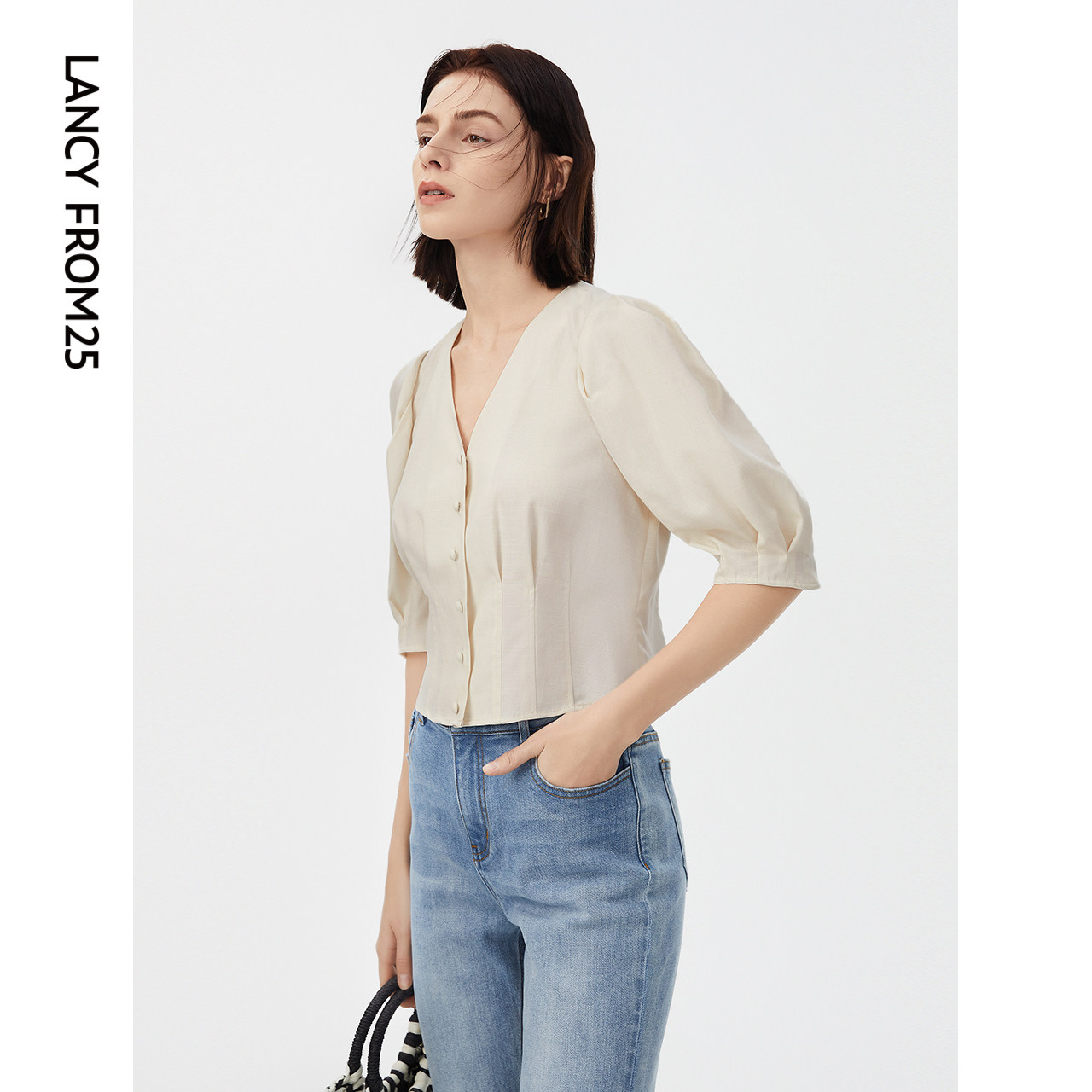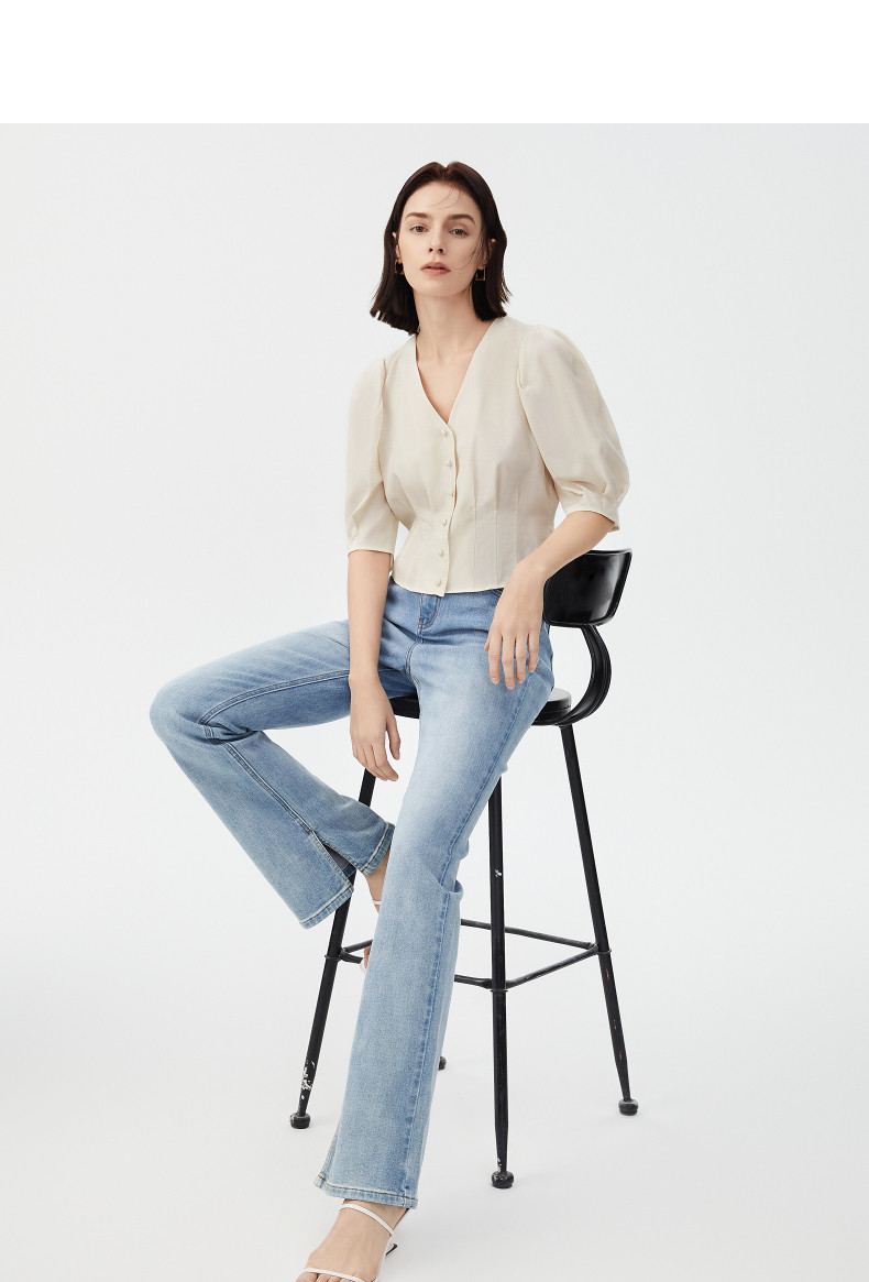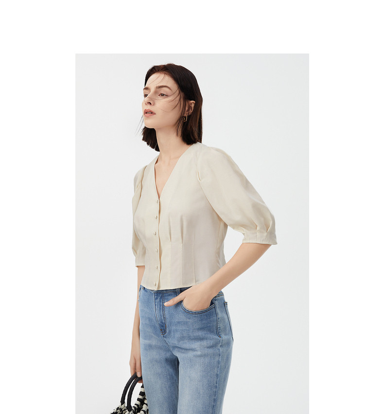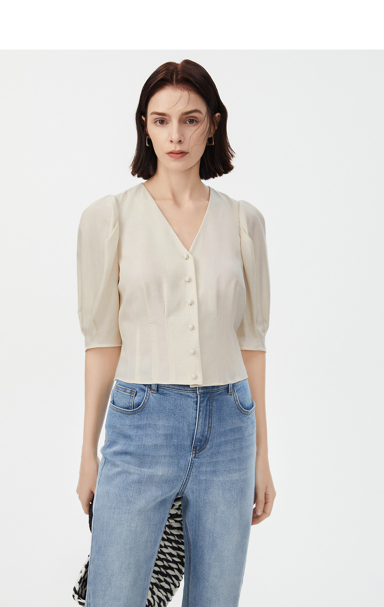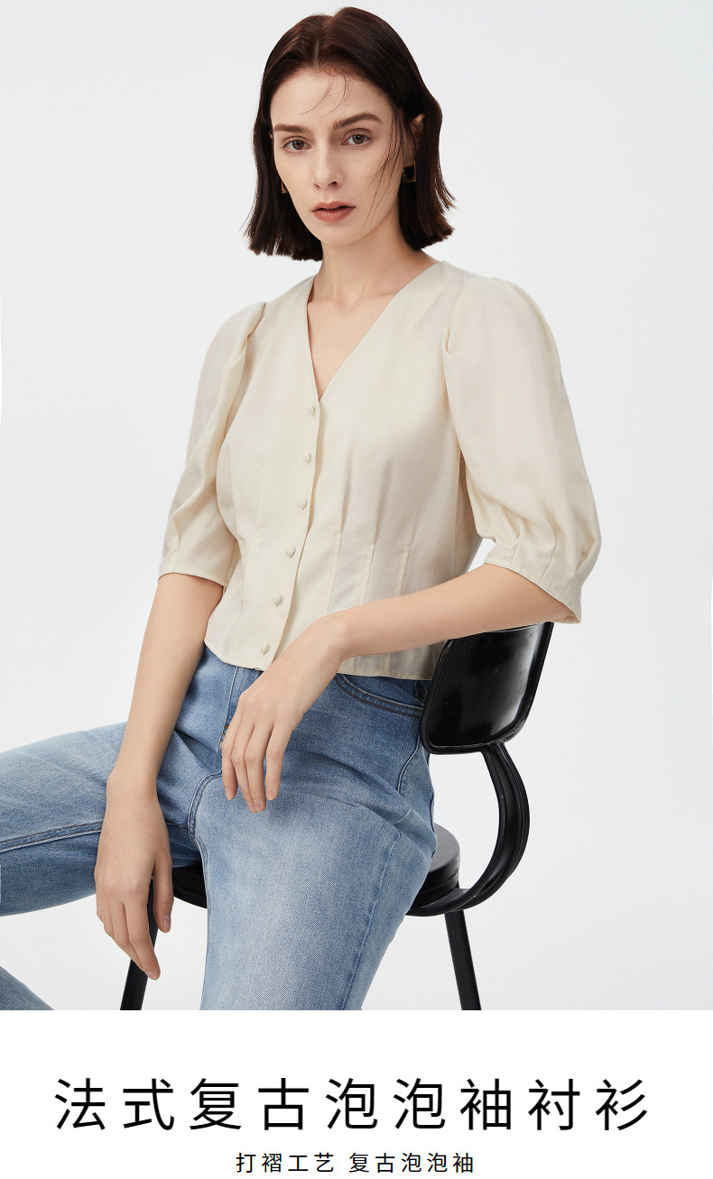 Ретро летняя дизайнерская рубашка, французский стиль, рукава фонарики, тренд сезона