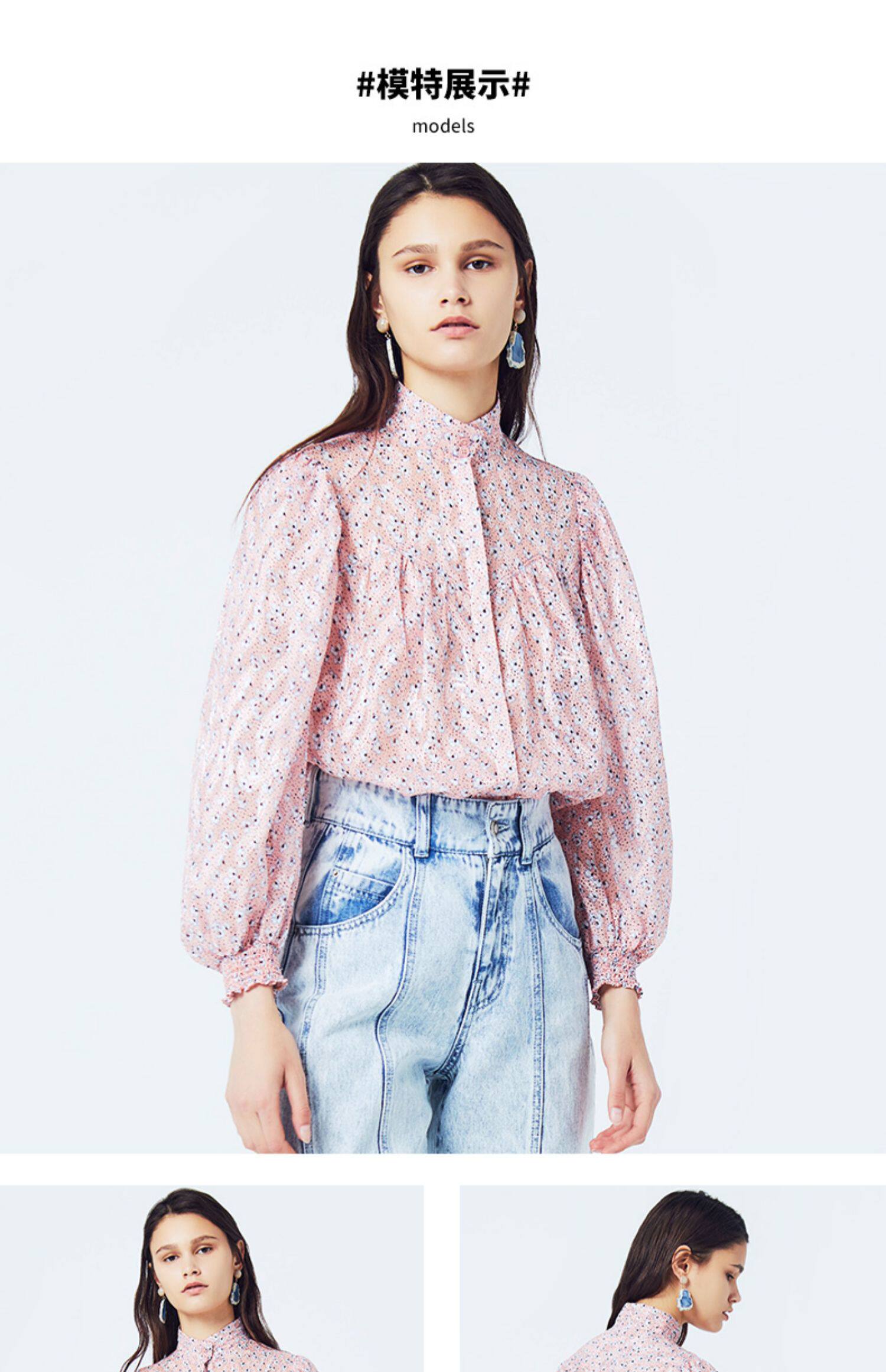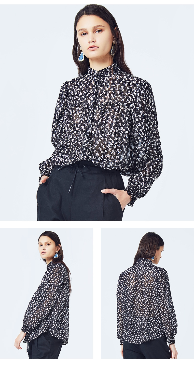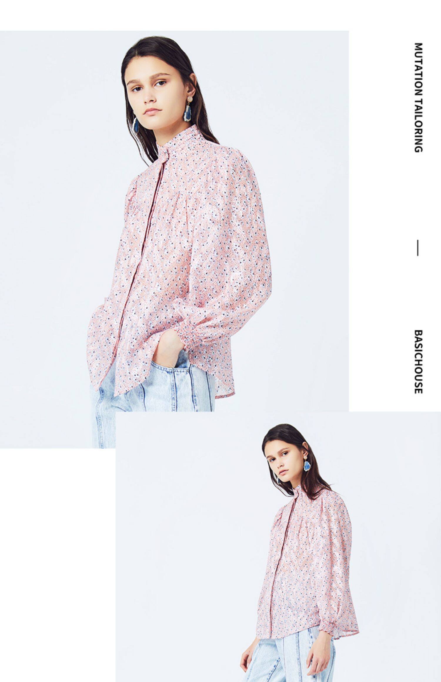 Basic House/百家好 Весна и летняя женщина наполовину высокой шеи цветочная рубашка зазор Hubl320a-498yn