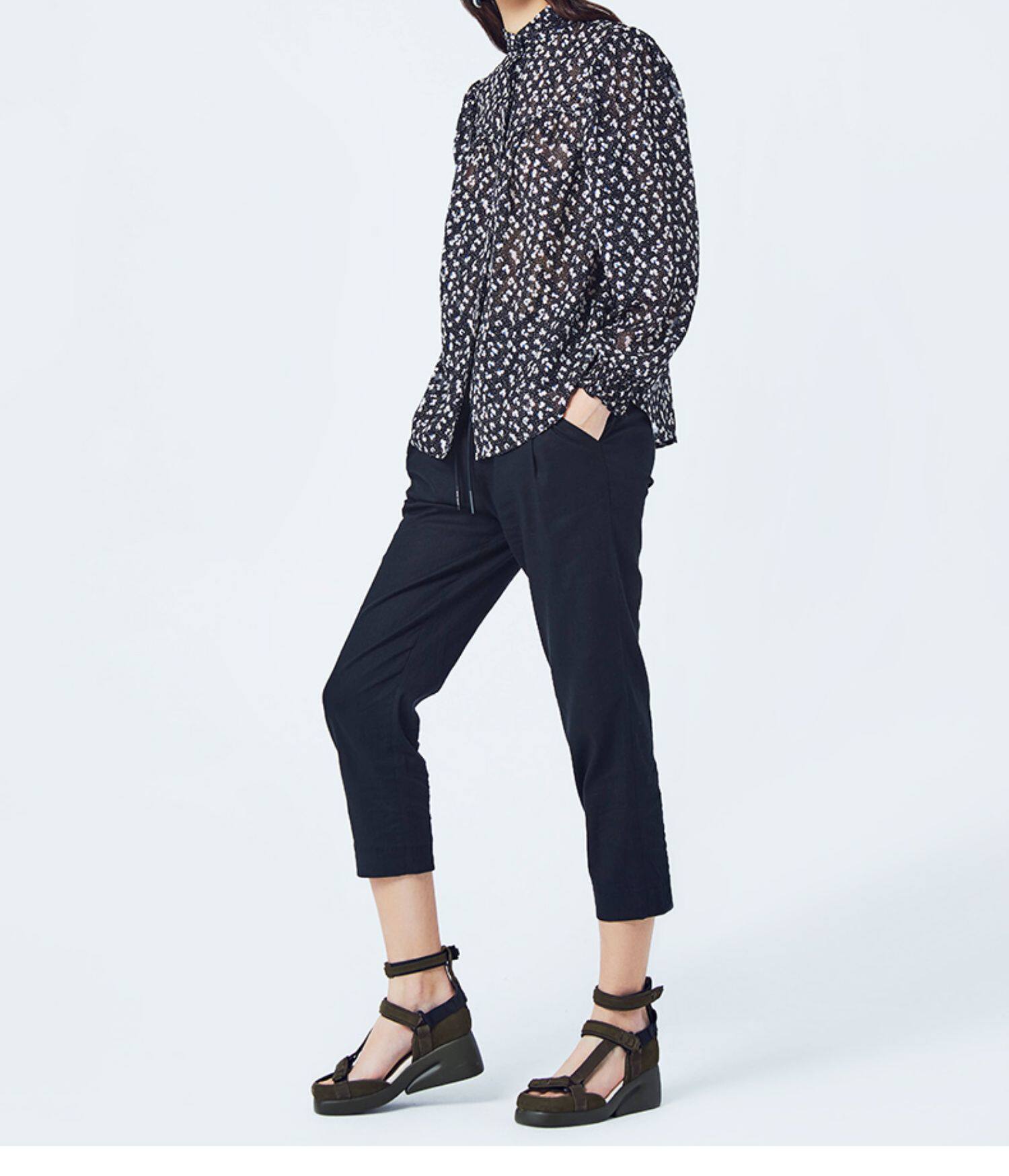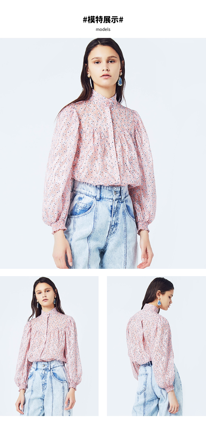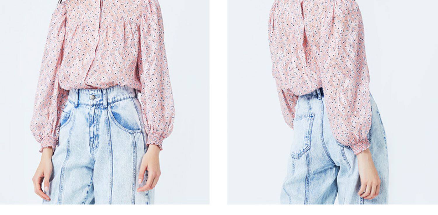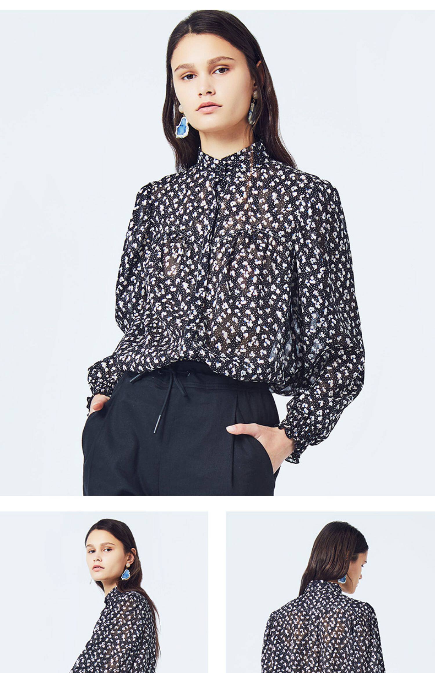 Basic House/百家好 Весна и летняя женщина наполовину высокой шеи цветочная рубашка зазор Hubl320a-498yn