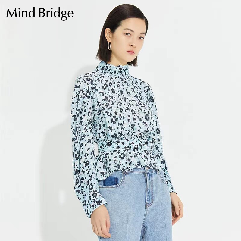Mind Bridge Летняя дизайнерская рубашка, цветочный принт, тренд сезона