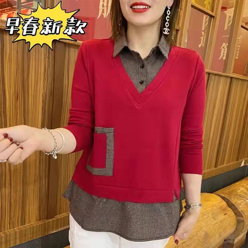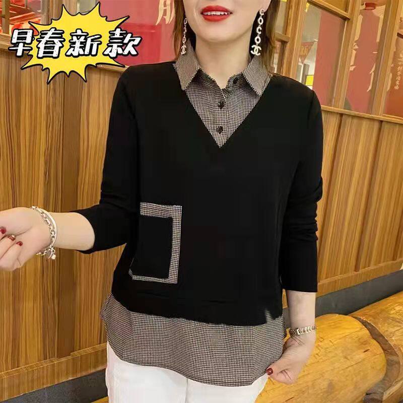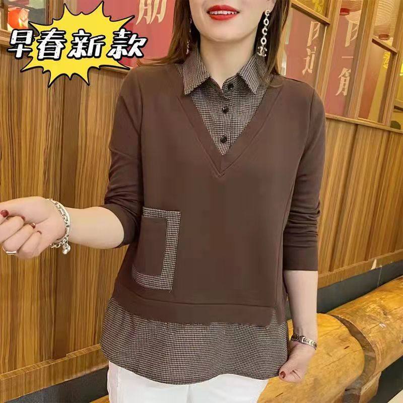 2024 весенняя новая женская клетчатая рубашка из двух предметов с длинными рукавами, женская стильная рубашка среднего возраста с воротником, топ большого размера